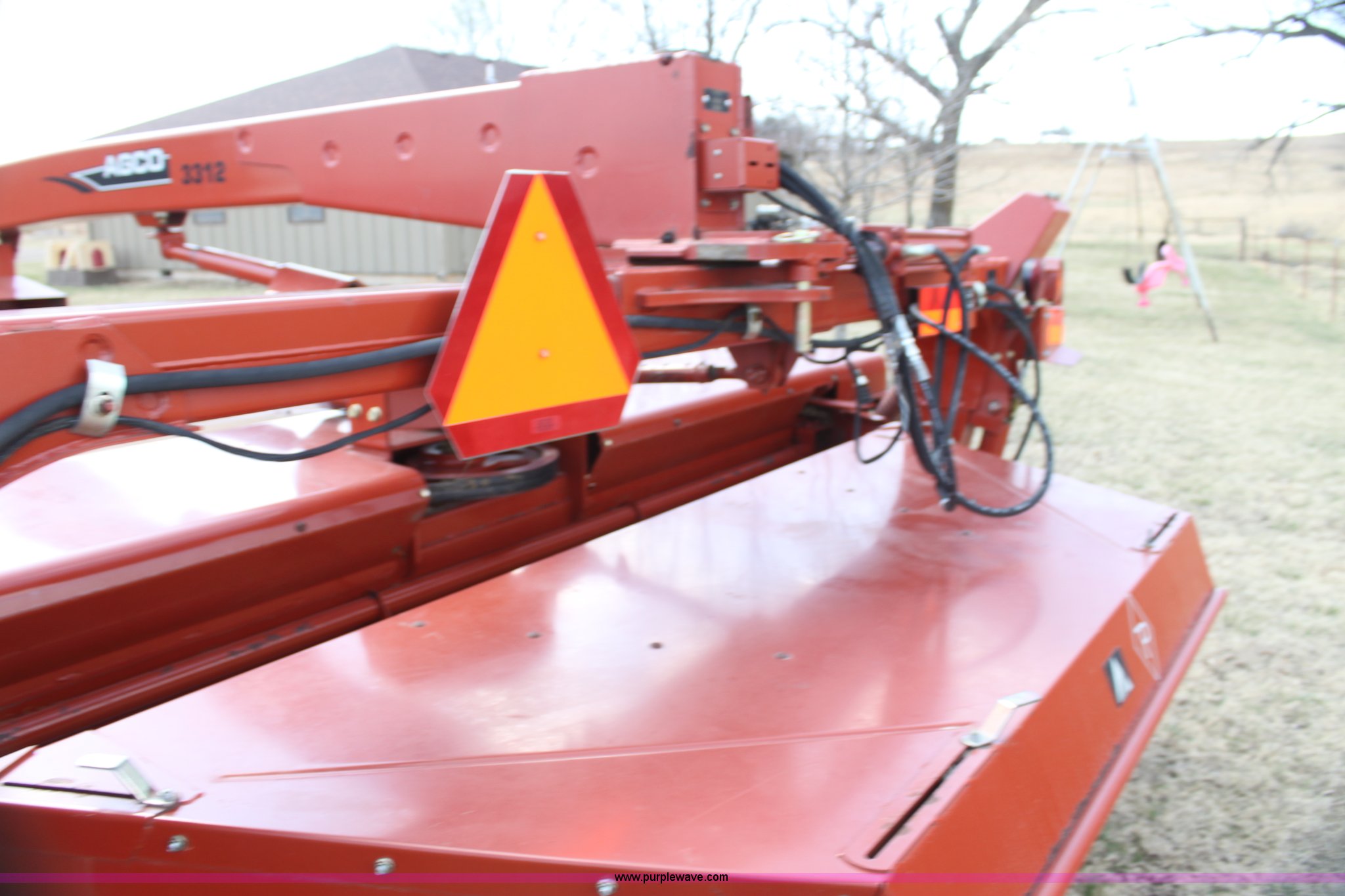 Purple Wave is selling a used Windrower Pull Type in Kansas. This item is a 2008 AGCO 3312 Hydroswing discbine swather with the following: 4,500 acres on swather, 12'W cut, 1000 PTO, Steel conditioner rollers, 11L-15 tires, Serial HT83151