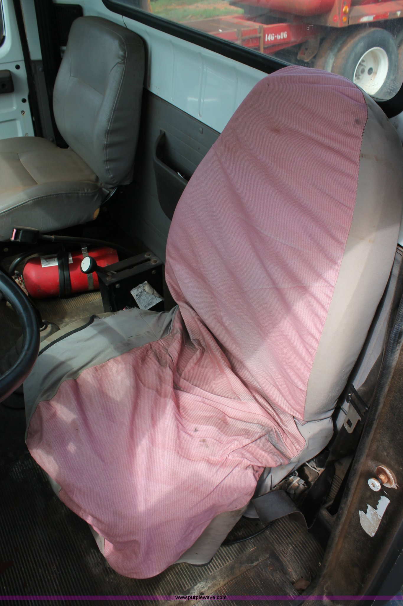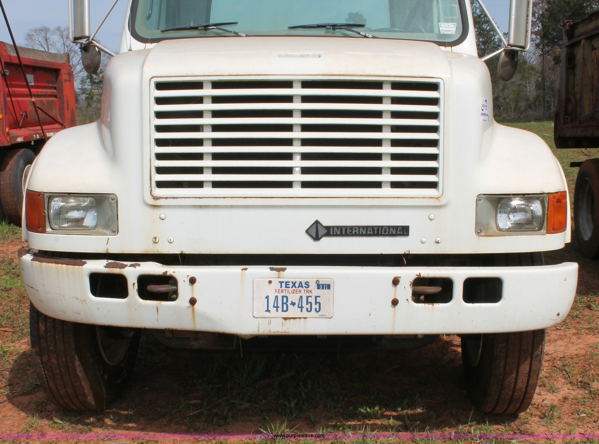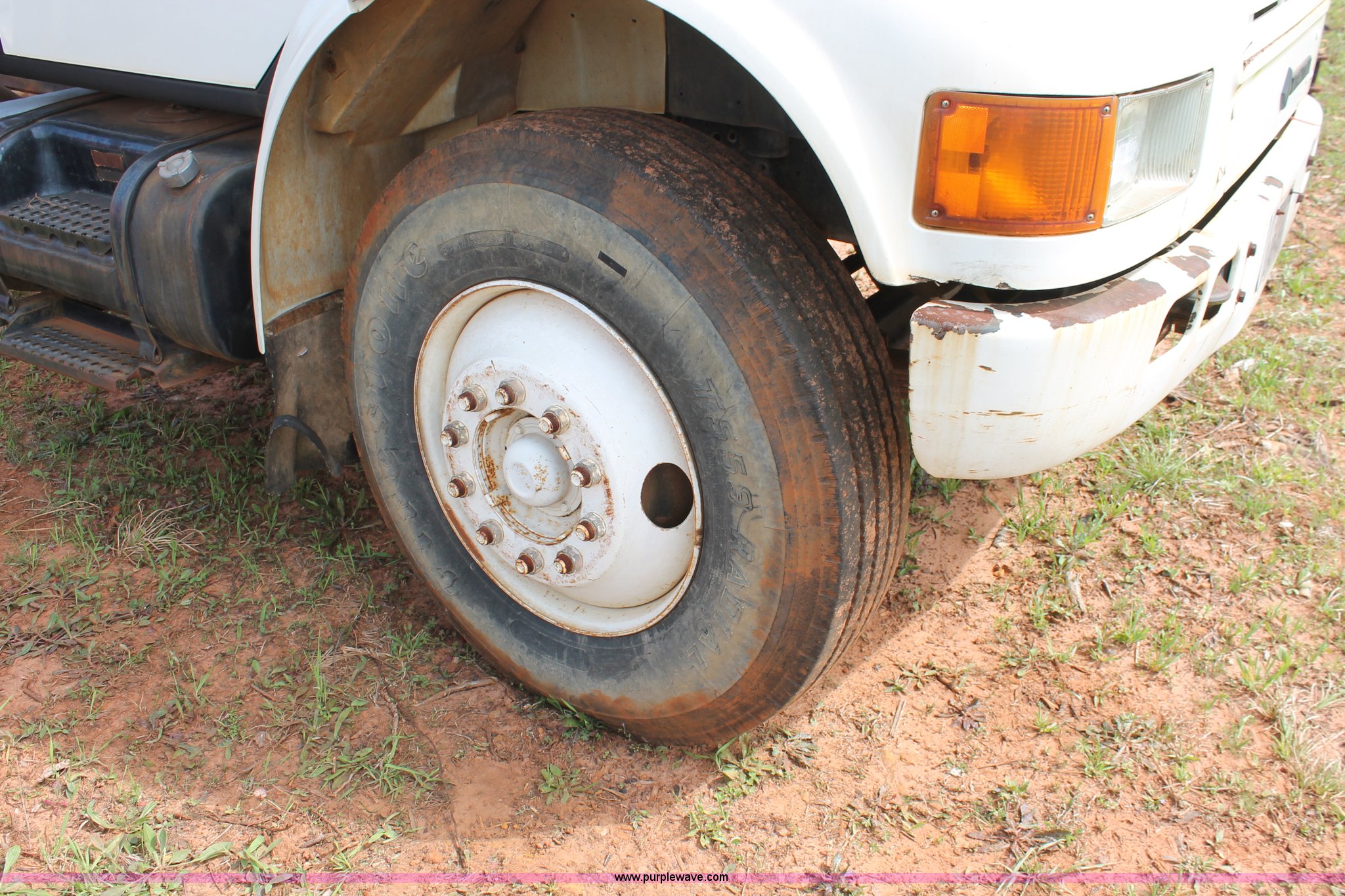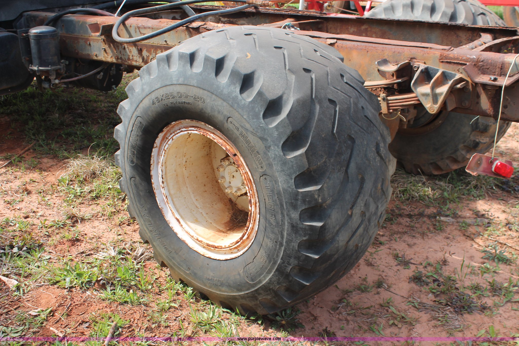 Purple Wave is selling a used Truck Chassis in Texas. This item is a 1999 International 4700 truck cab and chassis with the following: 86,354 miles on odometer, International DT466E 7.6L L6 diesel engine, International six speed plus manual transmission, AC and heat, Cruise, AM/FM, Air suspension seat, Impulse brake controller, Dual fuel tanks, 50 and 35 gallon capacities, Single rear exhaust stack, Spring suspension, Air brakes, 170" wheelbase, Firestone FS507 11R22.5 front tires, Primex Terra Blaster 48x25.00-20 rear tires, Unknown running condition