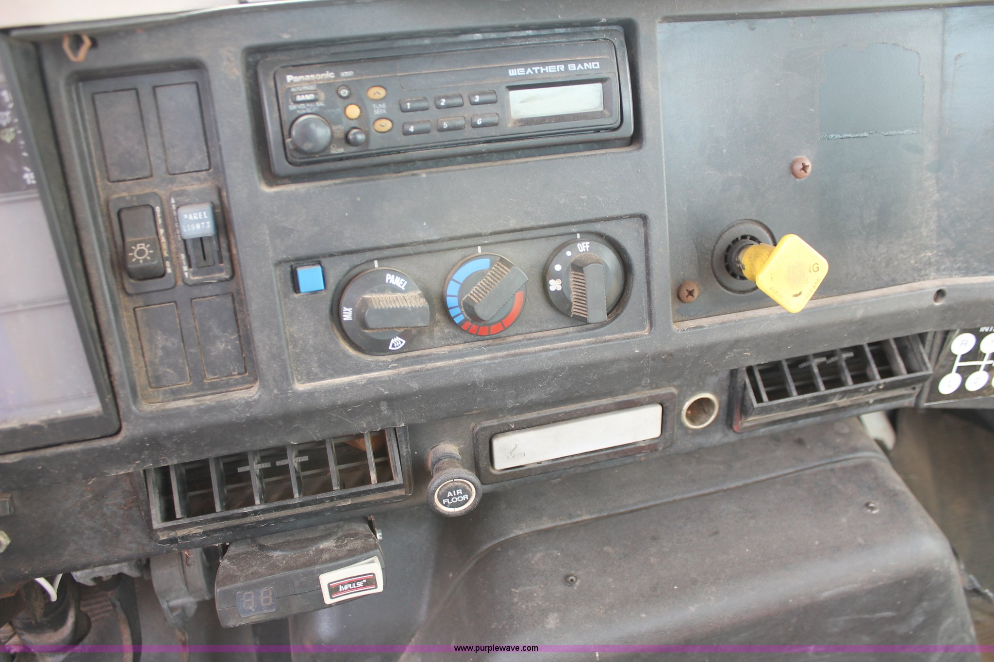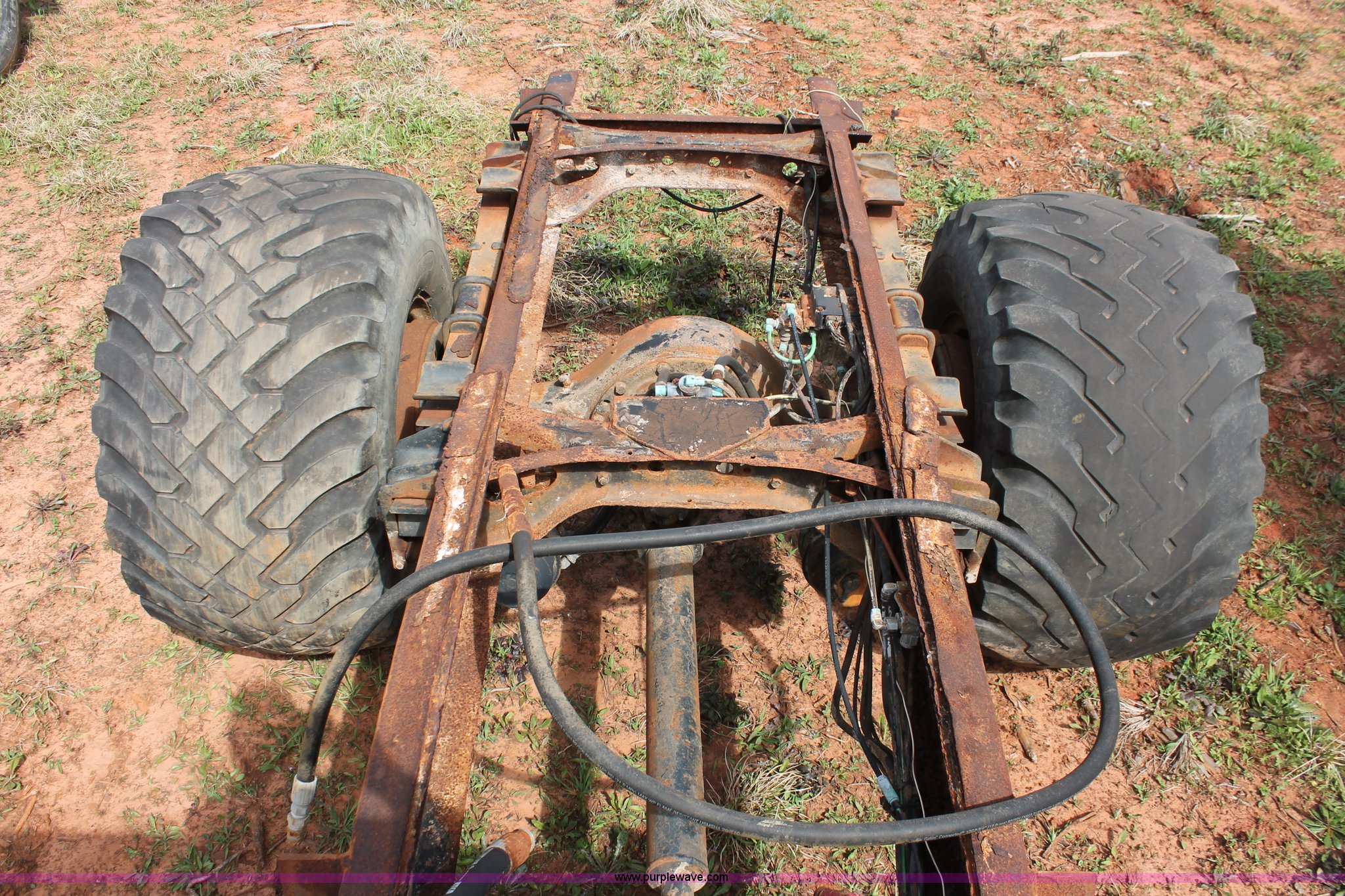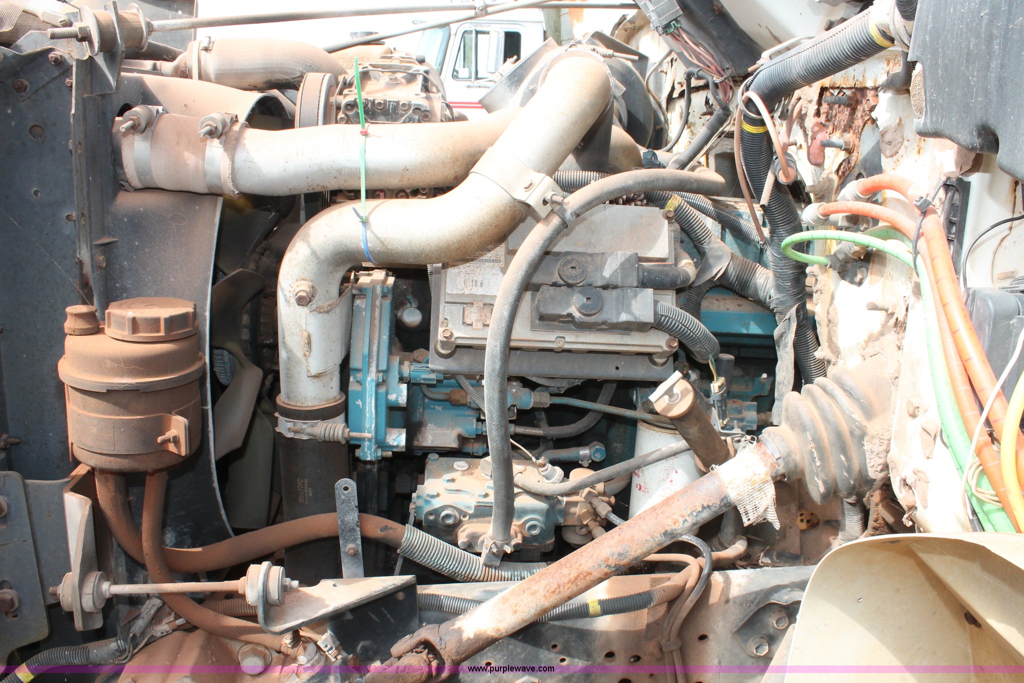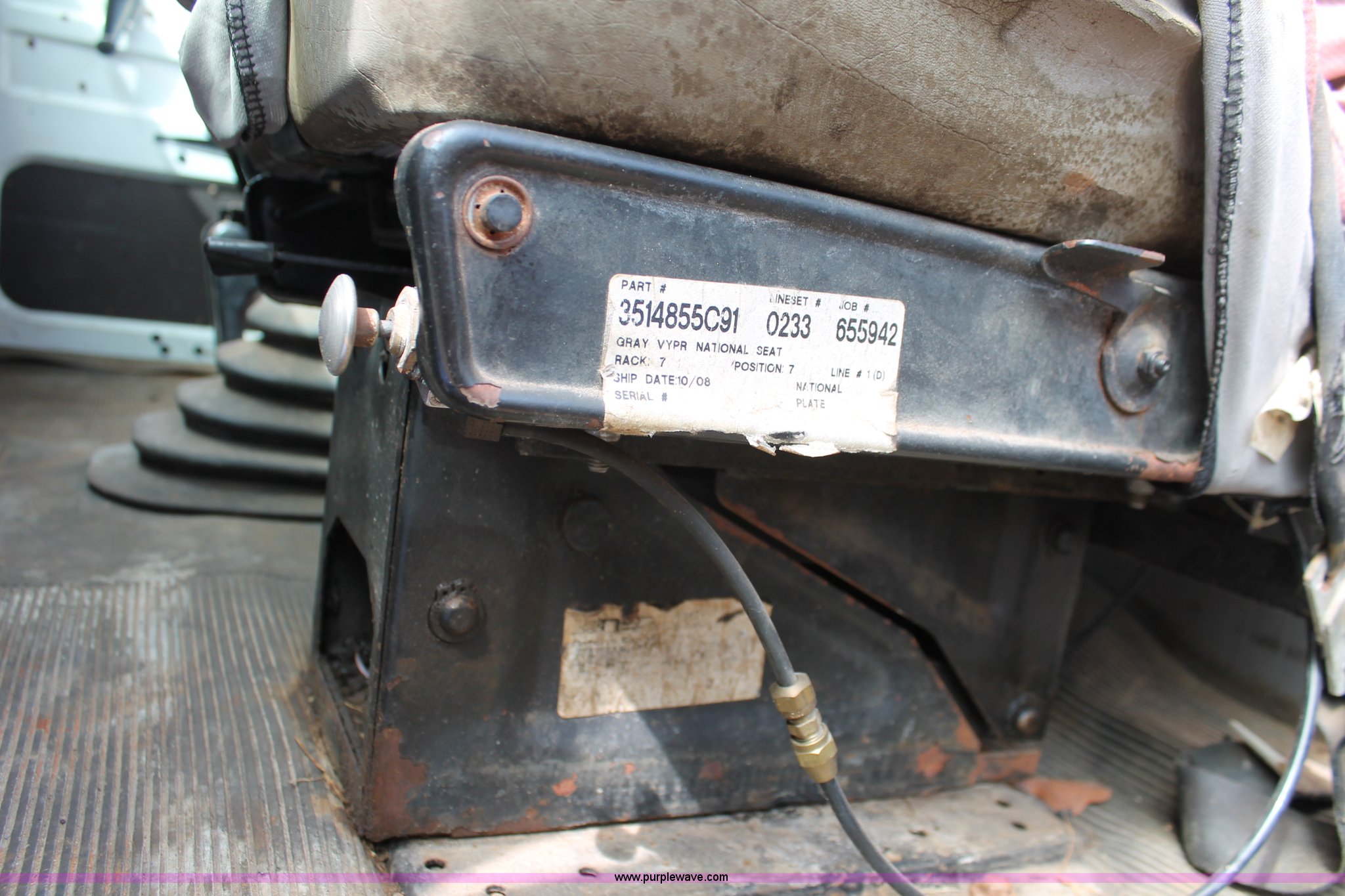 Purple Wave is selling a used Truck Chassis in Texas. This item is a 1999 International 4700 truck cab and chassis with the following: 86,354 miles on odometer, International DT466E 7.6L L6 diesel engine, International six speed plus manual transmission, AC and heat, Cruise, AM/FM, Air suspension seat, Impulse brake controller, Dual fuel tanks, 50 and 35 gallon capacities, Single rear exhaust stack, Spring suspension, Air brakes, 170" wheelbase, Firestone FS507 11R22.5 front tires, Primex Terra Blaster 48x25.00-20 rear tires, Unknown running condition