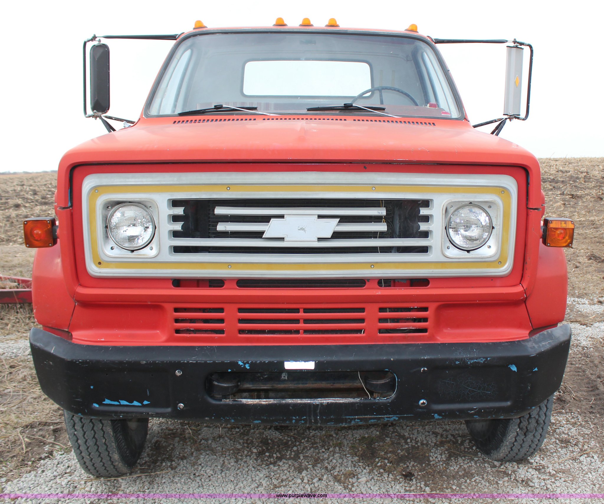 Purple Wave is selling a used Truck Chassis in Kansas. This item is a 1978 Chevrolet C65 truck cab and chassis with the following: 71,406 miles on odometer, 366 C.I.D. V8 gas engine, Four speed manual transmission, Two speed axle, Heat, Vinyl seat, 50 gallon fuel tank, 166" cab to tail, Spring suspension, Hydraulic brakes, 9.00-20 tires, GVWR 24,000 lbs