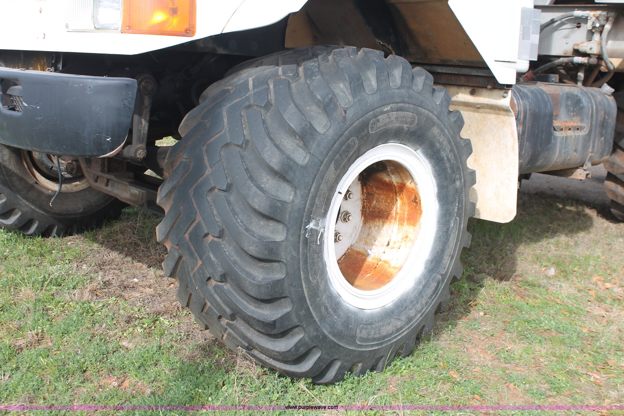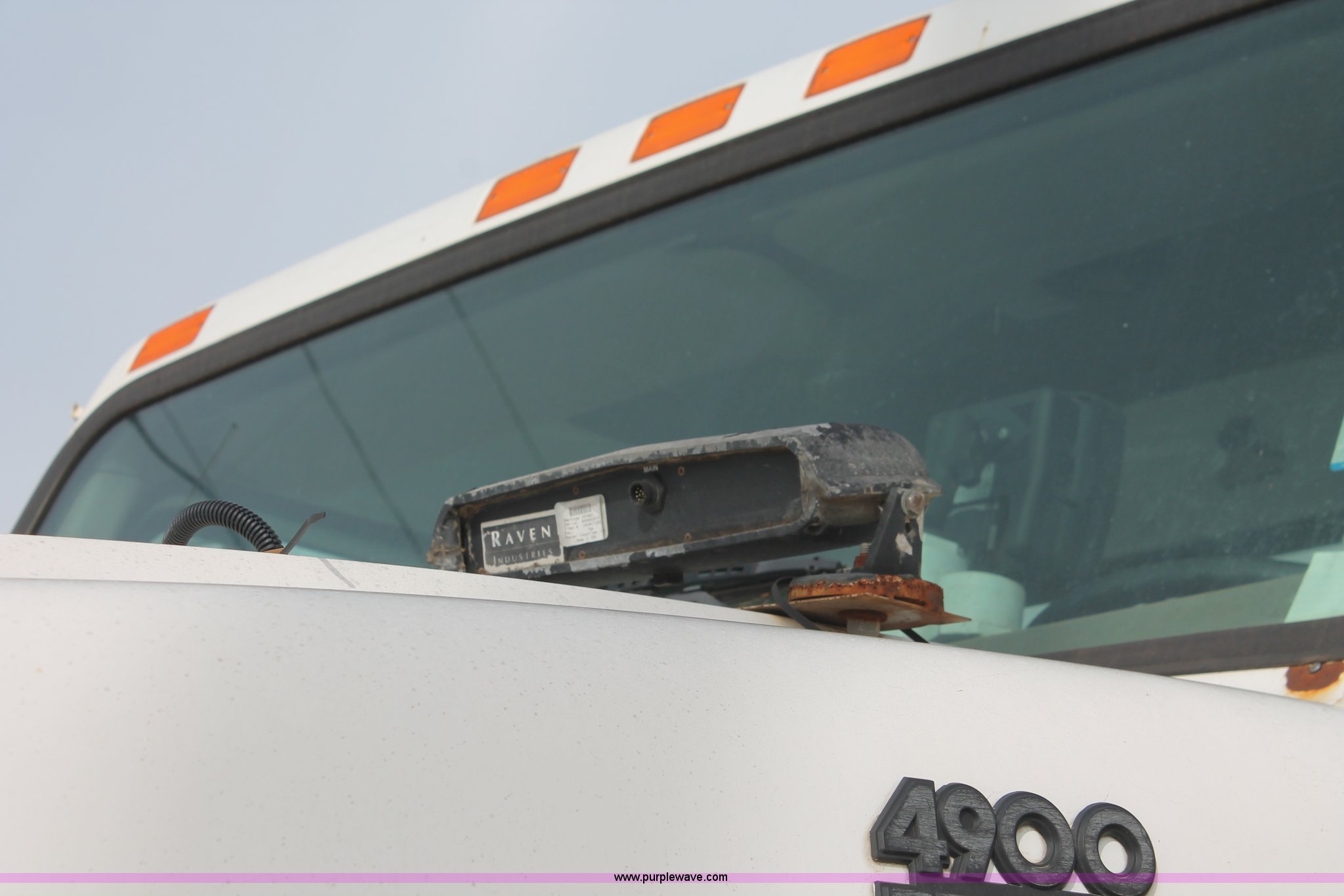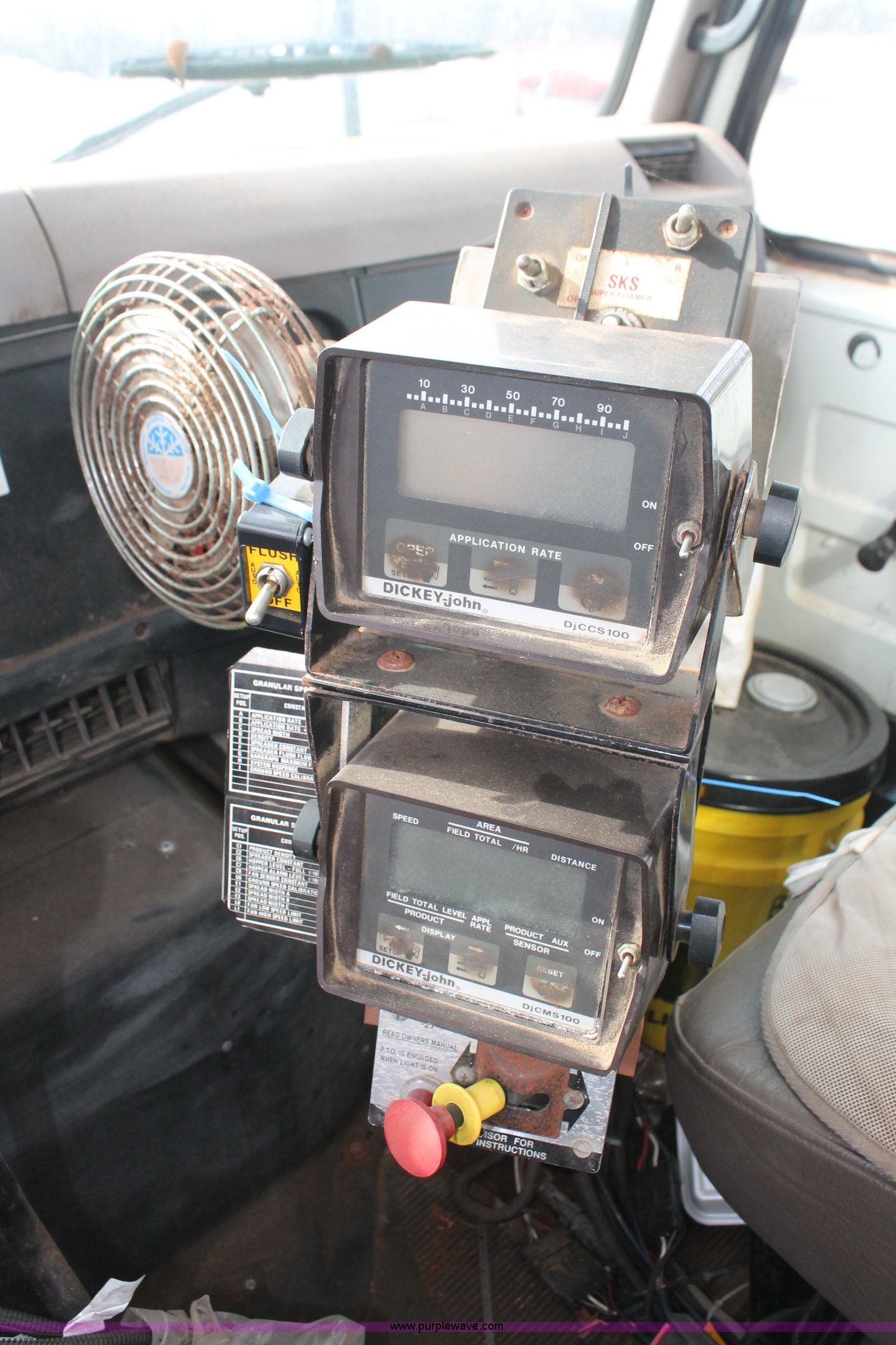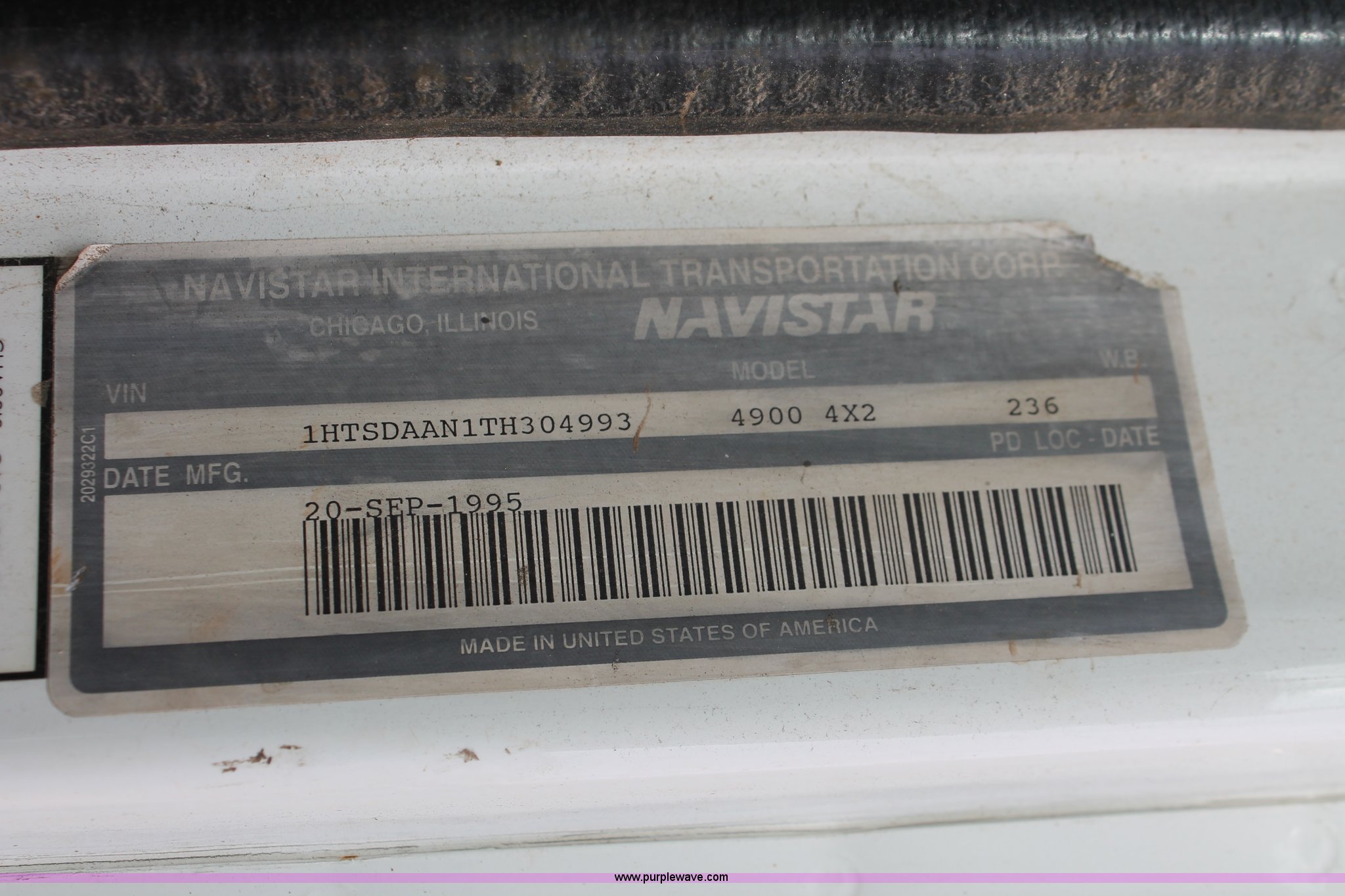 Purple Wave is selling a used Applicator Truck in Texas. This item is a 1996 International 4900 floater spreader truck with the following: 299,673 miles on odometer, International DT466HT 7.6L L6 diesel engine, 210 HP, Eaton Road Ranger six speed manual transmission, AC and heat, Cruise, Pioneer AM/FM/CD, Remote, Air suspension seat, Power windows, Block heater, Cold start, Dickie John application control system, Model DJCSS100, Monitor system, Model DJCMS100, Raven Envizio Plus guidance system, Manual included, Warren stainless steel box, 16"W linked belt, Chain drive, 24" dual spinner spreader, Shur-Lok rollover tarp, Wet kit, Foam applicator, Dual 50 gallon fuel tanks, PTO, Spring suspension, Air brakes, 160" wheelbase, Primex Terra Blaster 48x25.00-20 front tires, Primex Terra Turbo 66x43.00-25 rear tires, Rear tire low, will hold air