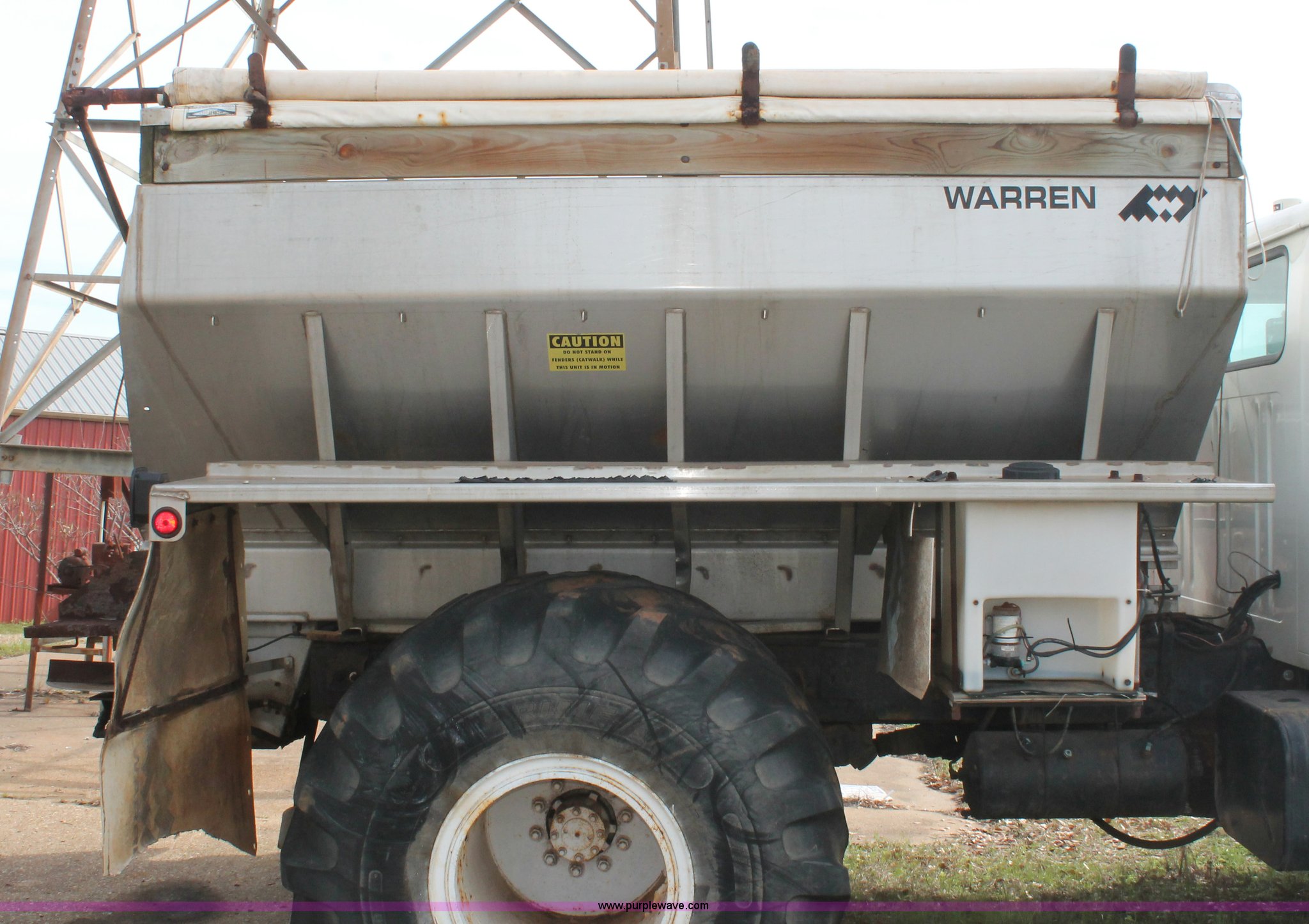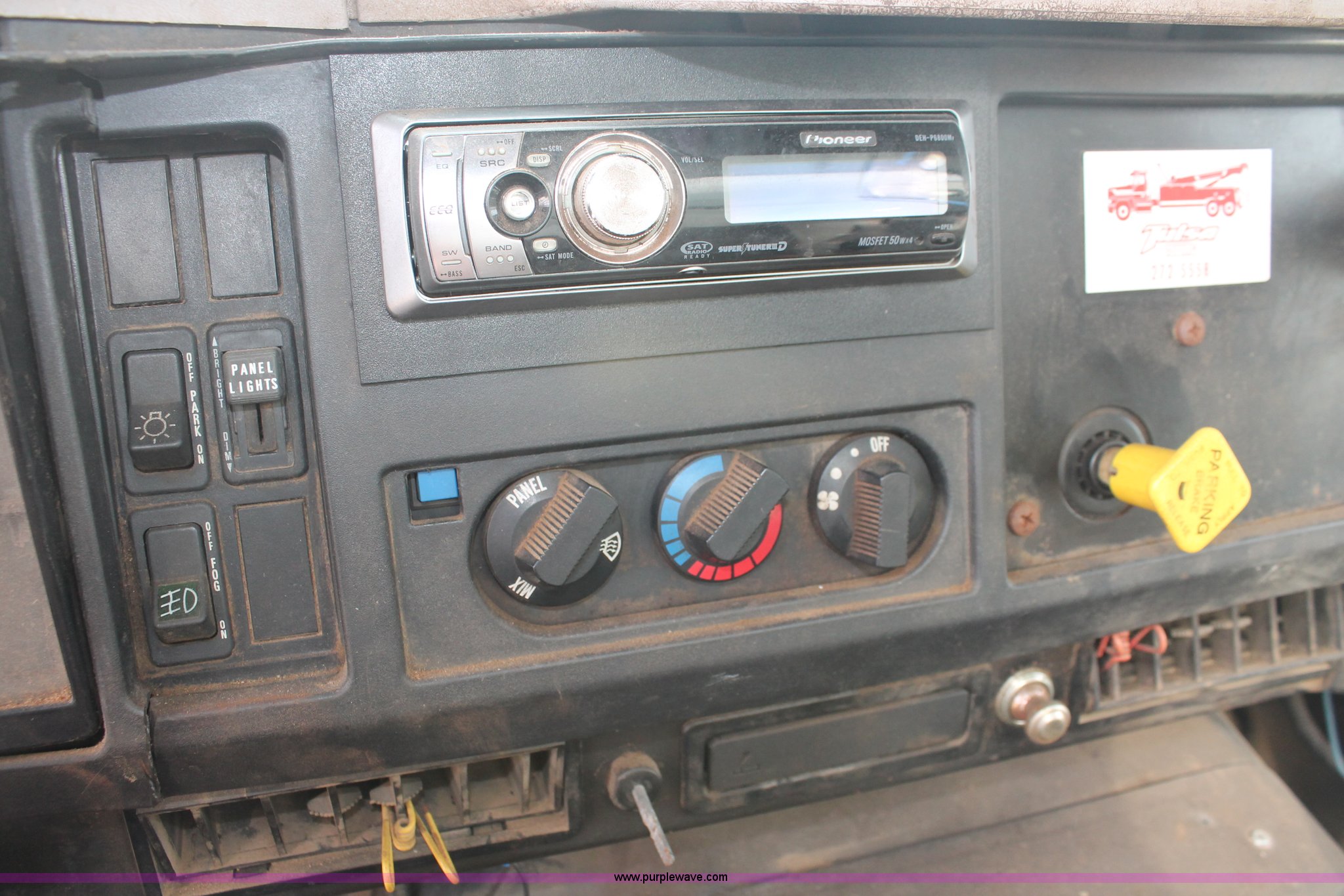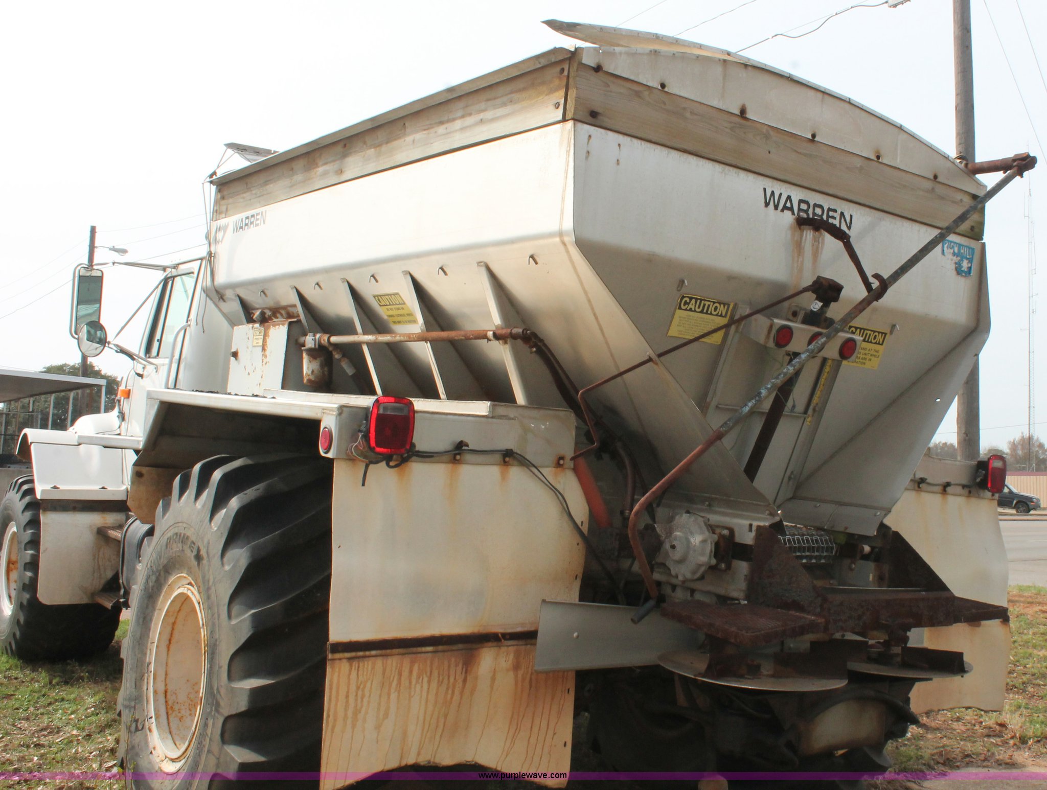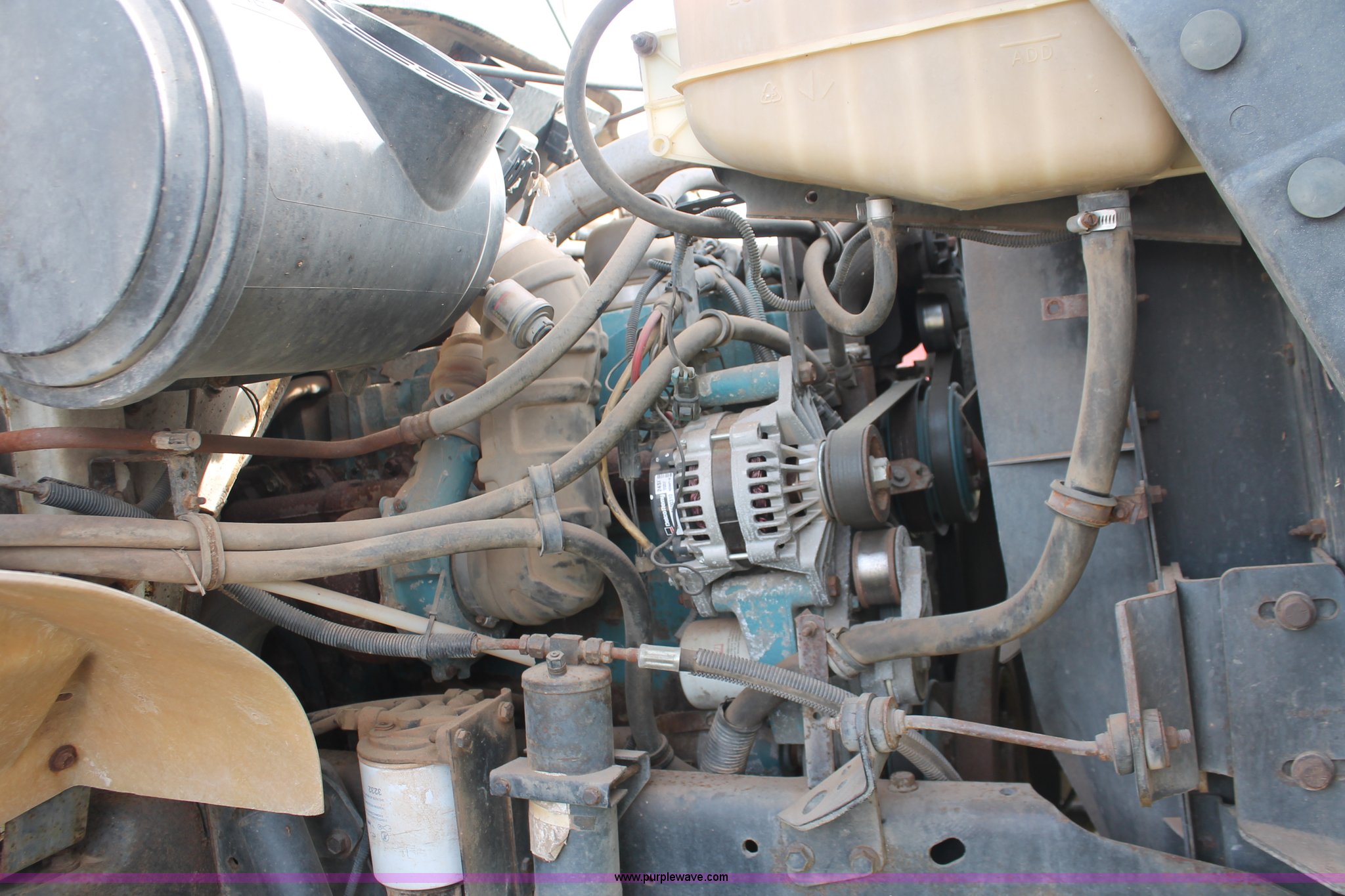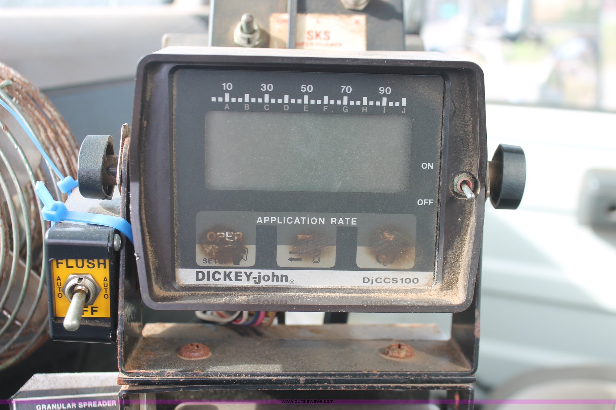 Purple Wave is selling a used Applicator Truck in Texas. This item is a 1996 International 4900 floater spreader truck with the following: 299,673 miles on odometer, International DT466HT 7.6L L6 diesel engine, 210 HP, Eaton Road Ranger six speed manual transmission, AC and heat, Cruise, Pioneer AM/FM/CD, Remote, Air suspension seat, Power windows, Block heater, Cold start, Dickie John application control system, Model DJCSS100, Monitor system, Model DJCMS100, Raven Envizio Plus guidance system, Manual included, Warren stainless steel box, 16"W linked belt, Chain drive, 24" dual spinner spreader, Shur-Lok rollover tarp, Wet kit, Foam applicator, Dual 50 gallon fuel tanks, PTO, Spring suspension, Air brakes, 160" wheelbase, Primex Terra Blaster 48x25.00-20 front tires, Primex Terra Turbo 66x43.00-25 rear tires, Rear tire low, will hold air