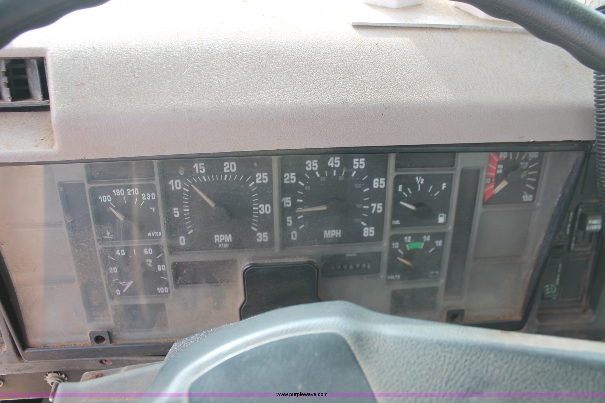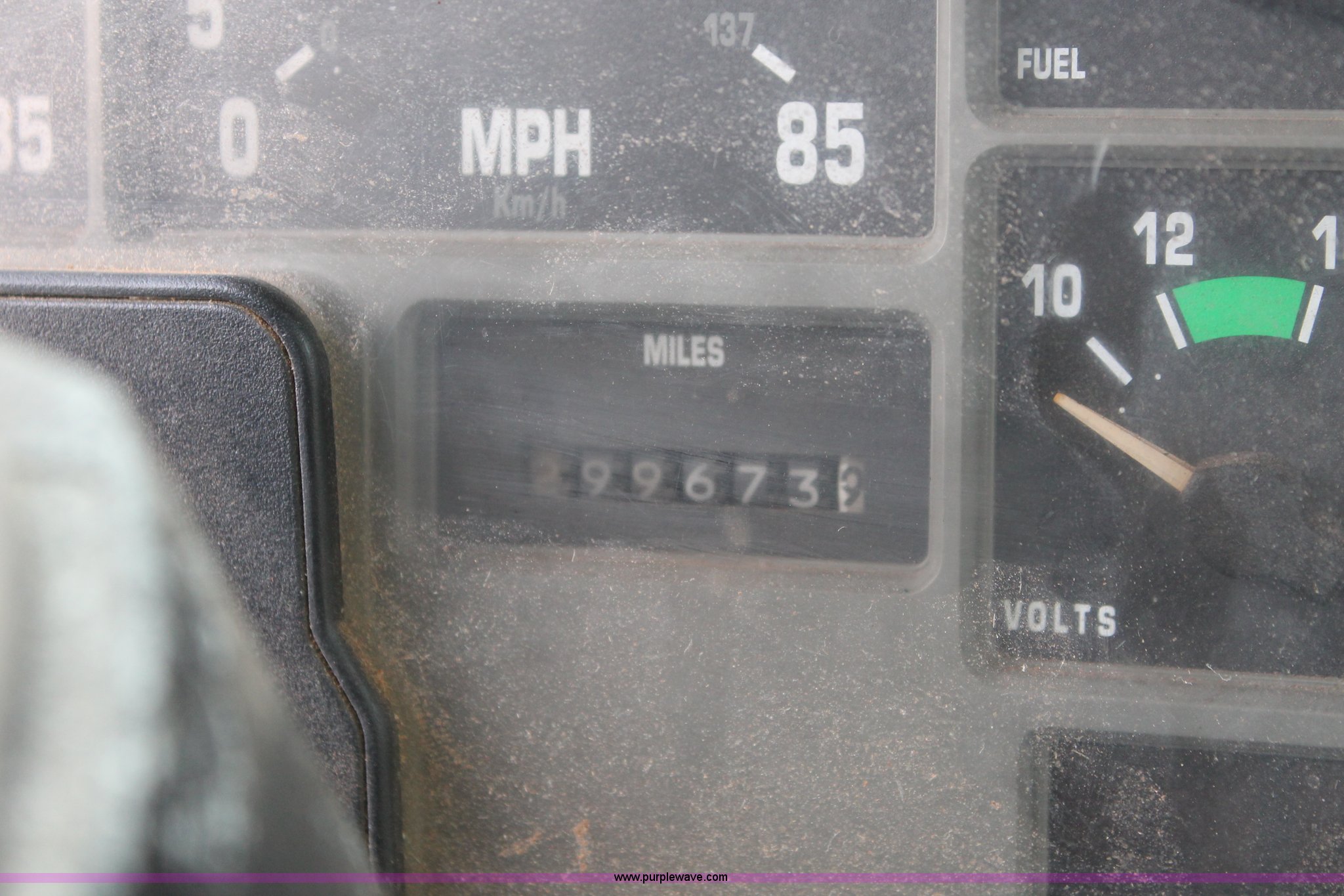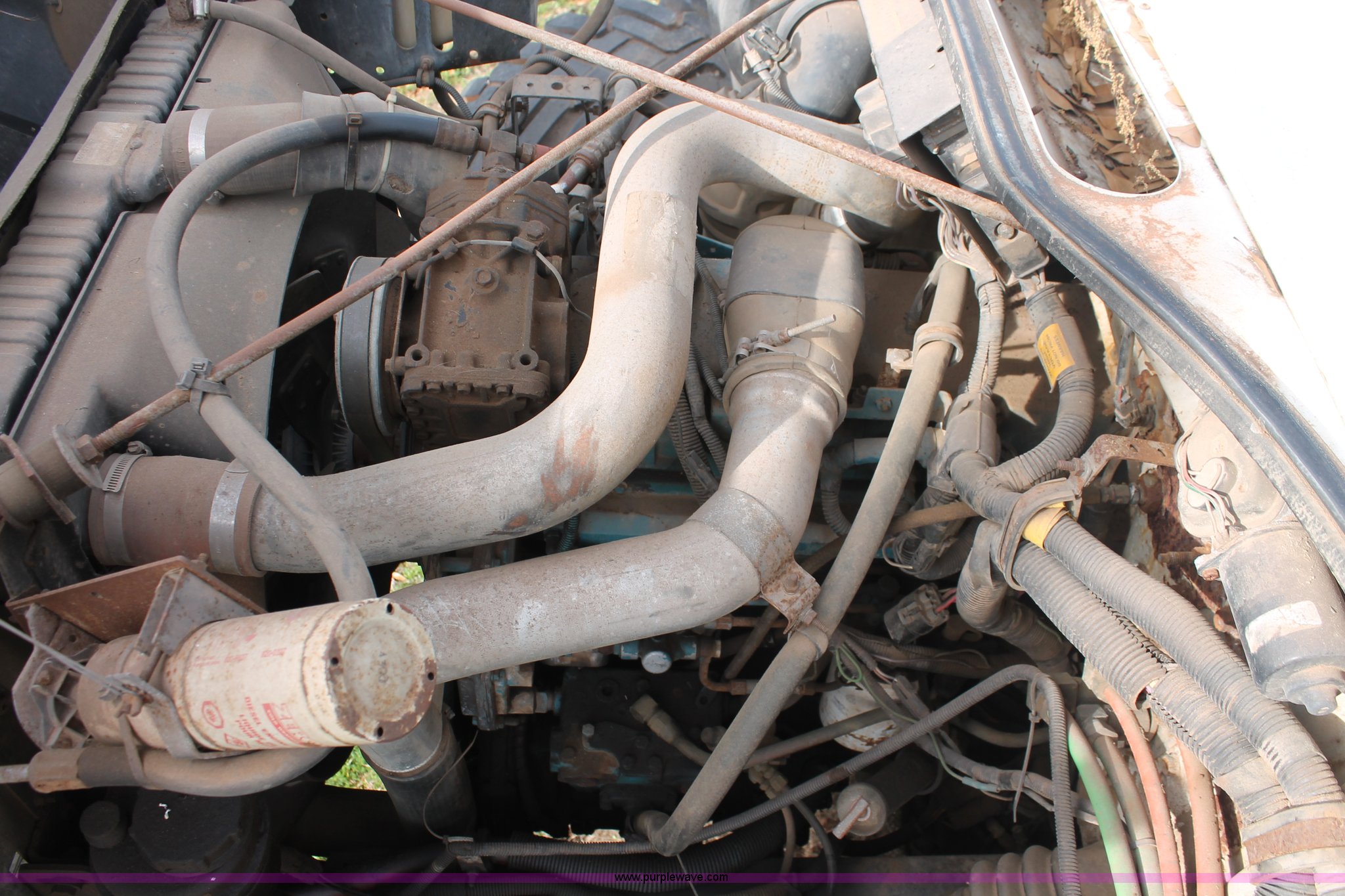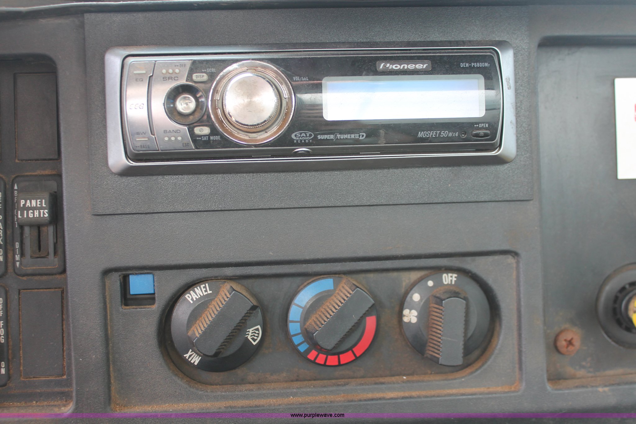 Purple Wave is selling a used Applicator Truck in Texas. This item is a 1996 International 4900 floater spreader truck with the following: 299,673 miles on odometer, International DT466HT 7.6L L6 diesel engine, 210 HP, Eaton Road Ranger six speed manual transmission, AC and heat, Cruise, Pioneer AM/FM/CD, Remote, Air suspension seat, Power windows, Block heater, Cold start, Dickie John application control system, Model DJCSS100, Monitor system, Model DJCMS100, Raven Envizio Plus guidance system, Manual included, Warren stainless steel box, 16"W linked belt, Chain drive, 24" dual spinner spreader, Shur-Lok rollover tarp, Wet kit, Foam applicator, Dual 50 gallon fuel tanks, PTO, Spring suspension, Air brakes, 160" wheelbase, Primex Terra Blaster 48x25.00-20 front tires, Primex Terra Turbo 66x43.00-25 rear tires, Rear tire low, will hold air