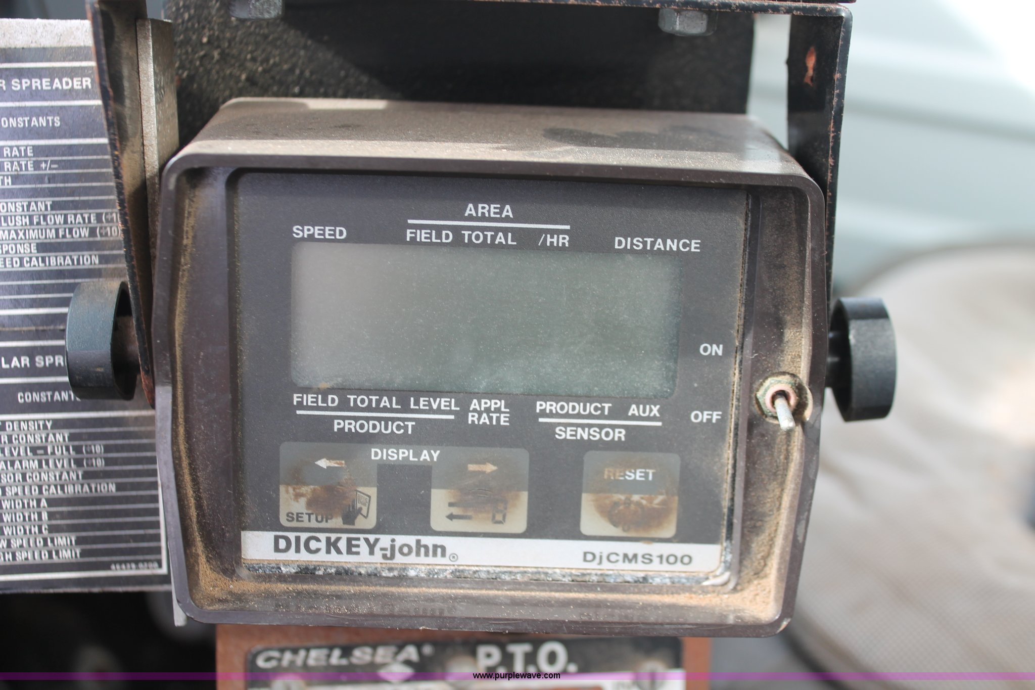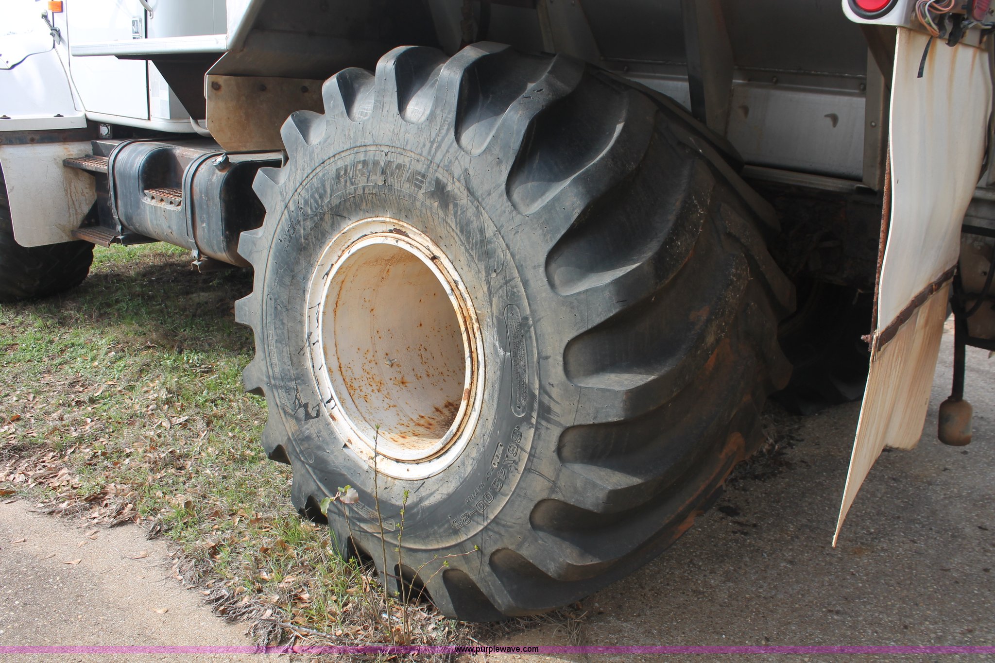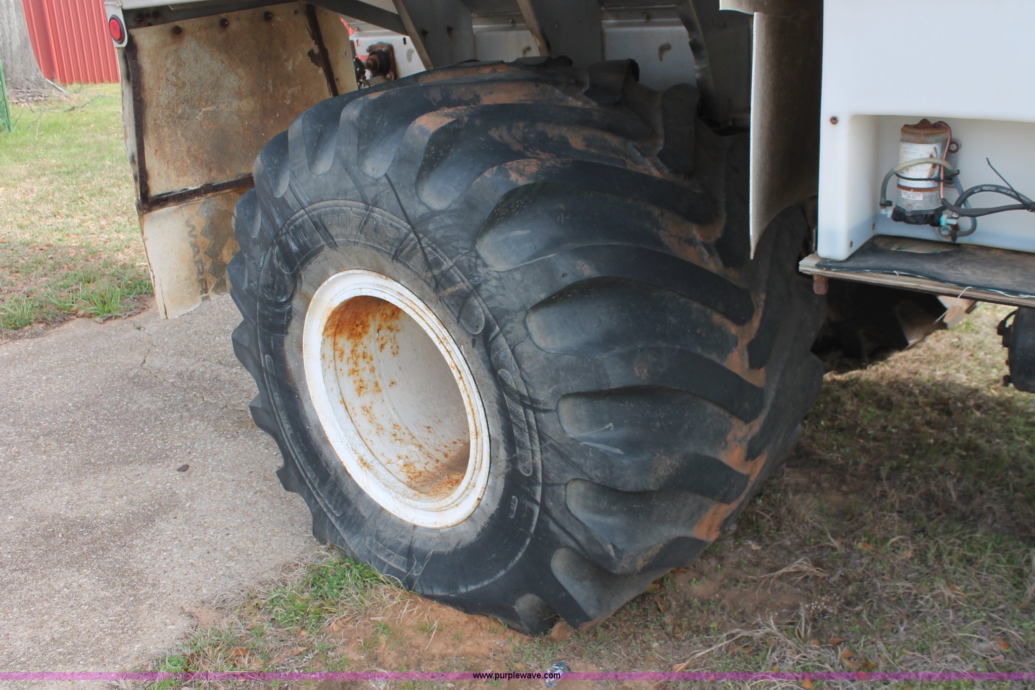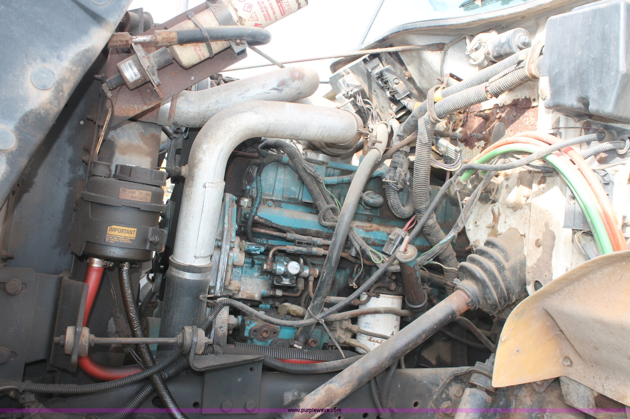 Purple Wave is selling a used Applicator Truck in Texas. This item is a 1996 International 4900 floater spreader truck with the following: 299,673 miles on odometer, International DT466HT 7.6L L6 diesel engine, 210 HP, Eaton Road Ranger six speed manual transmission, AC and heat, Cruise, Pioneer AM/FM/CD, Remote, Air suspension seat, Power windows, Block heater, Cold start, Dickie John application control system, Model DJCSS100, Monitor system, Model DJCMS100, Raven Envizio Plus guidance system, Manual included, Warren stainless steel box, 16"W linked belt, Chain drive, 24" dual spinner spreader, Shur-Lok rollover tarp, Wet kit, Foam applicator, Dual 50 gallon fuel tanks, PTO, Spring suspension, Air brakes, 160" wheelbase, Primex Terra Blaster 48x25.00-20 front tires, Primex Terra Turbo 66x43.00-25 rear tires, Rear tire low, will hold air