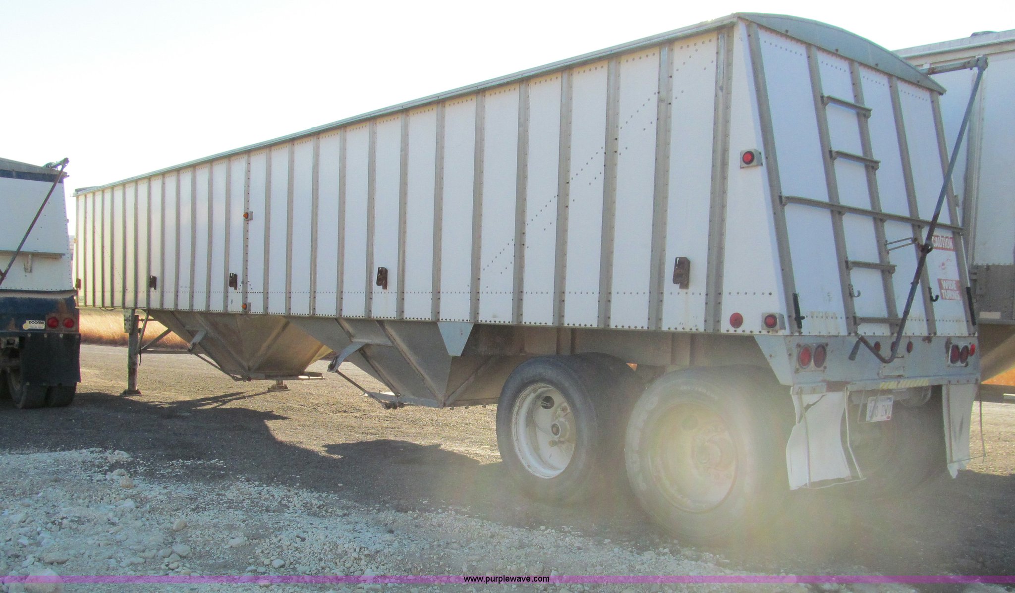 Purple Wave is selling a used Grain or Commodity Trailer in Kansas. This item is a 1985 Meritt 42' tandem axle grain trailer with the following: 8'W, 10'H side boards, Manual dual hopper, Roll-over tarp, Spring suspension, Air brakes, GVWR 60,000 lbs, 285/75R24.5 tires