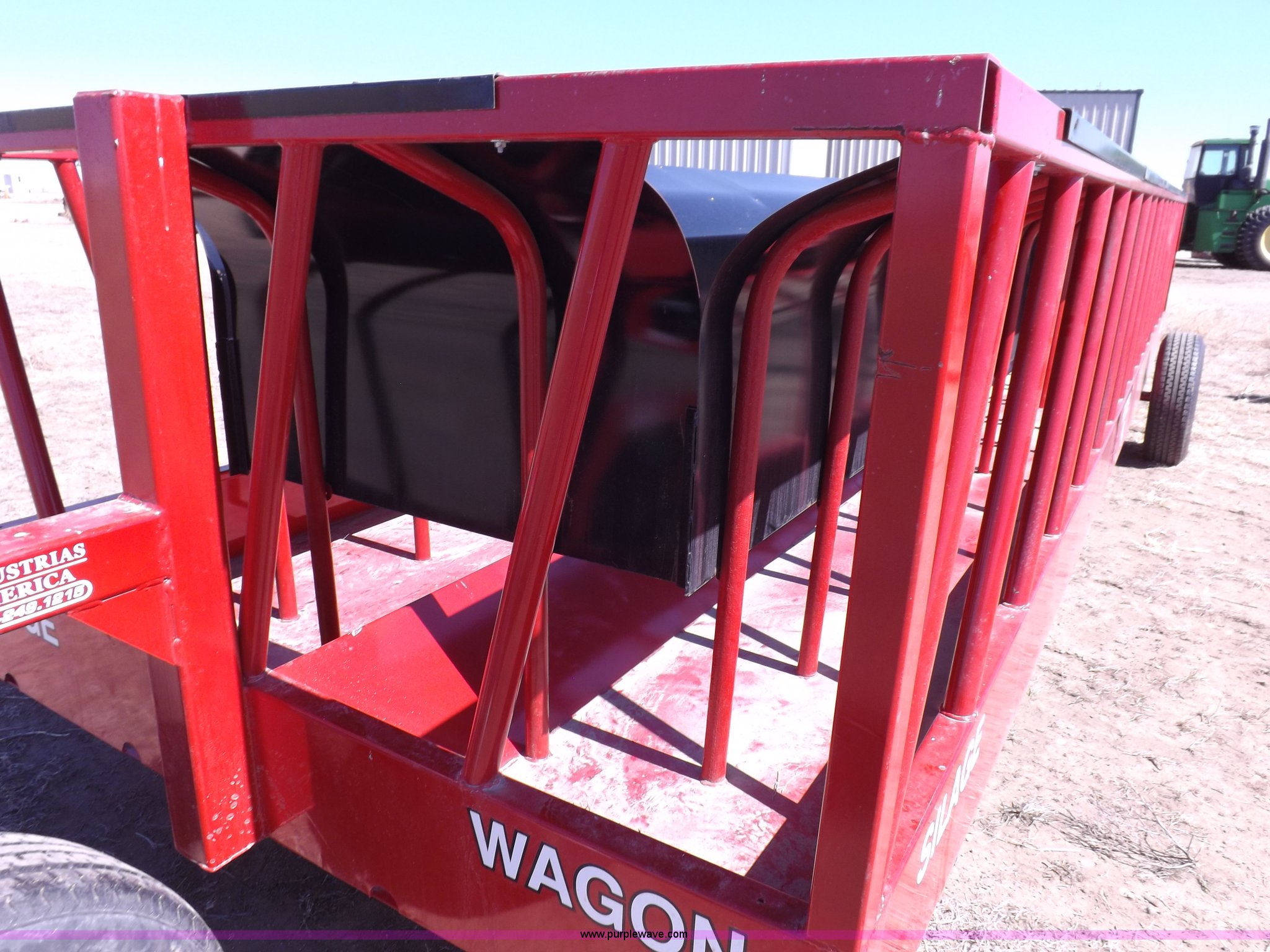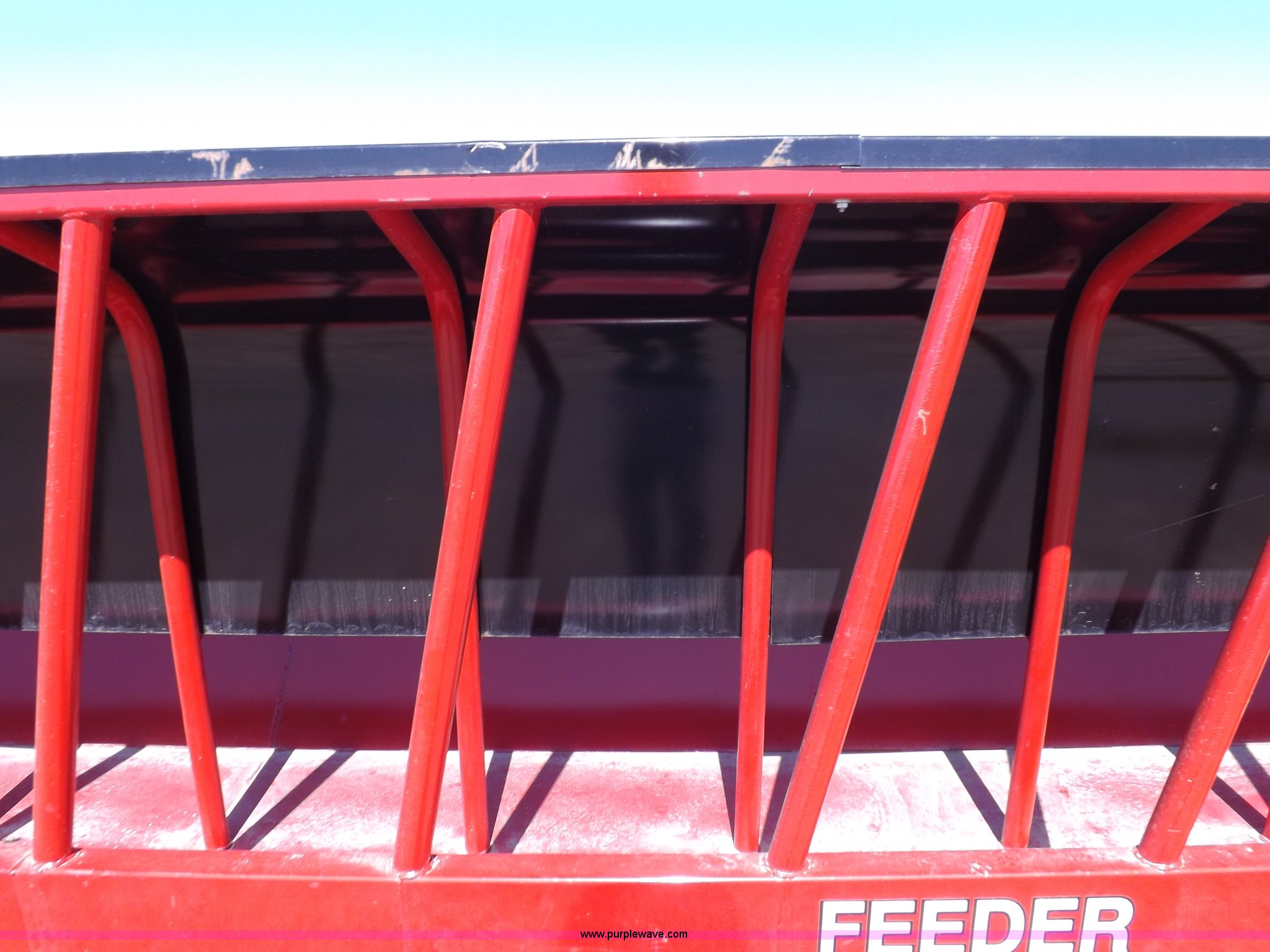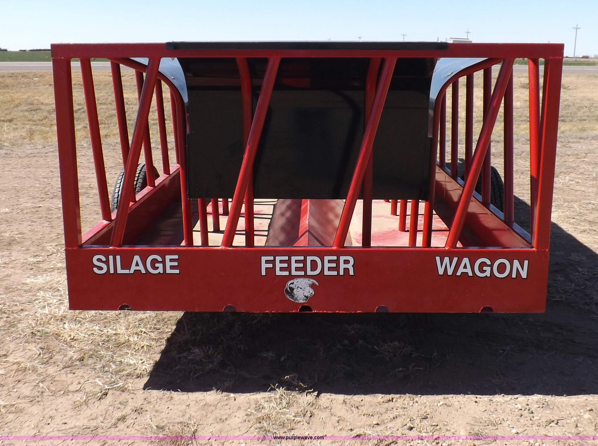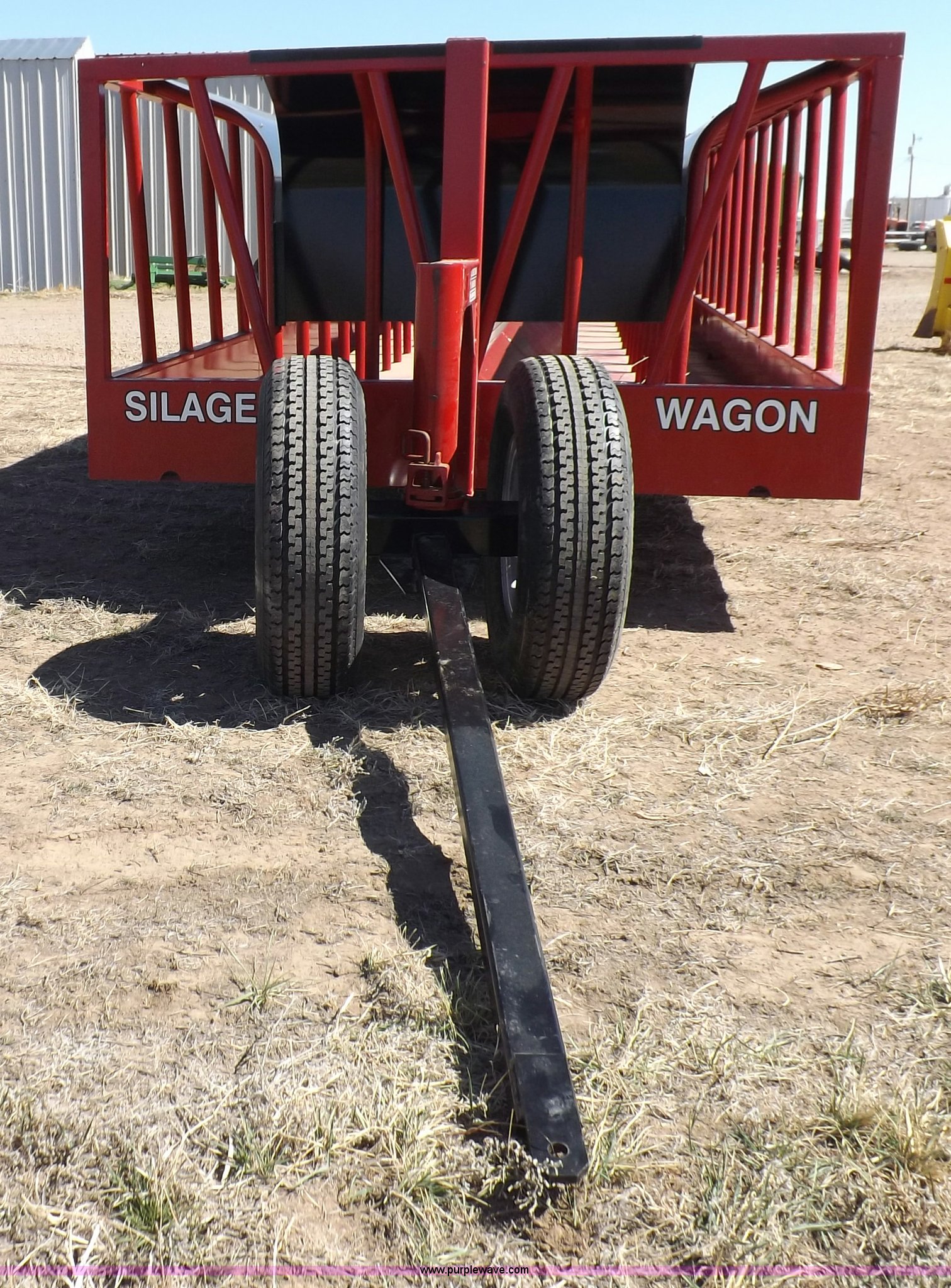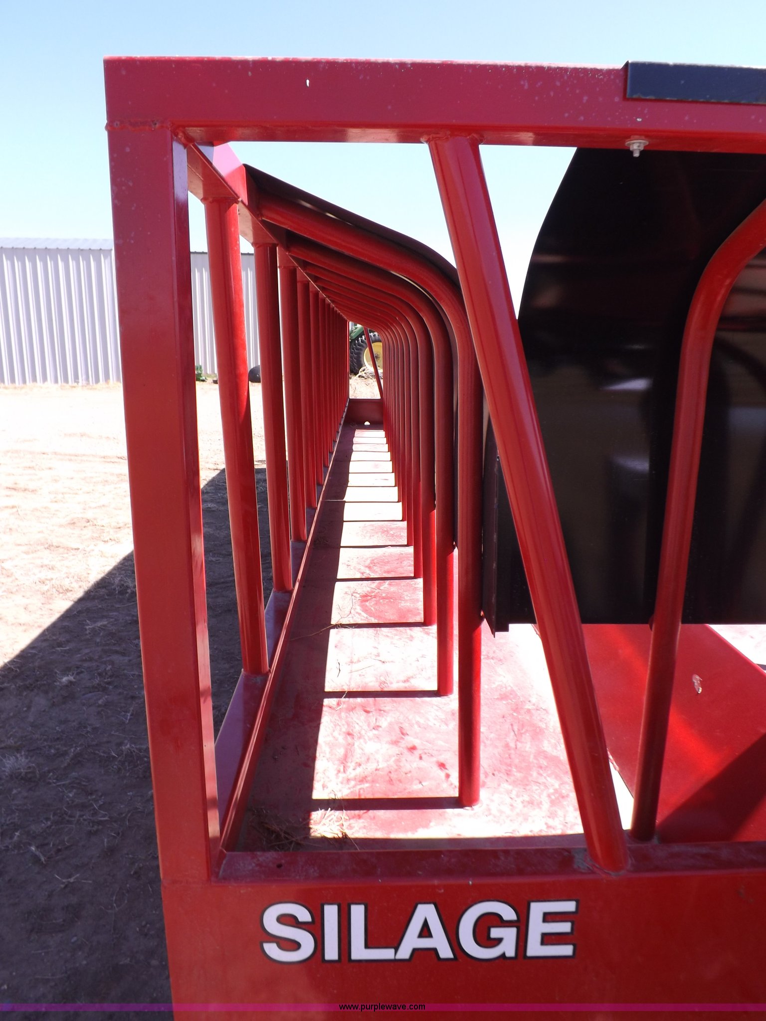 Purple Wave is selling a used Livestock Equip. in Kansas. This item is a Silage feeder wagon with the following: 24'L x 81"W x 5'H, 2.5" x 2.5" tubing and 1.5" pipe construction, 6'4" tongue, 3/4" hitch pin coupling, Gravity fed, Center diverter, 16" head stall spacing, Moisture drains, 235/80R16 tires