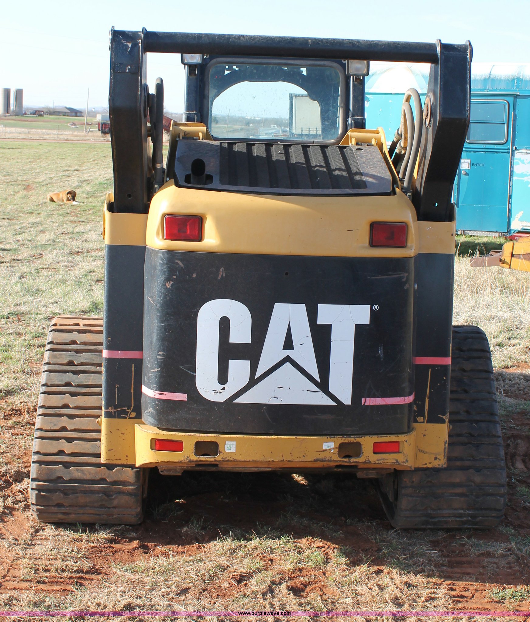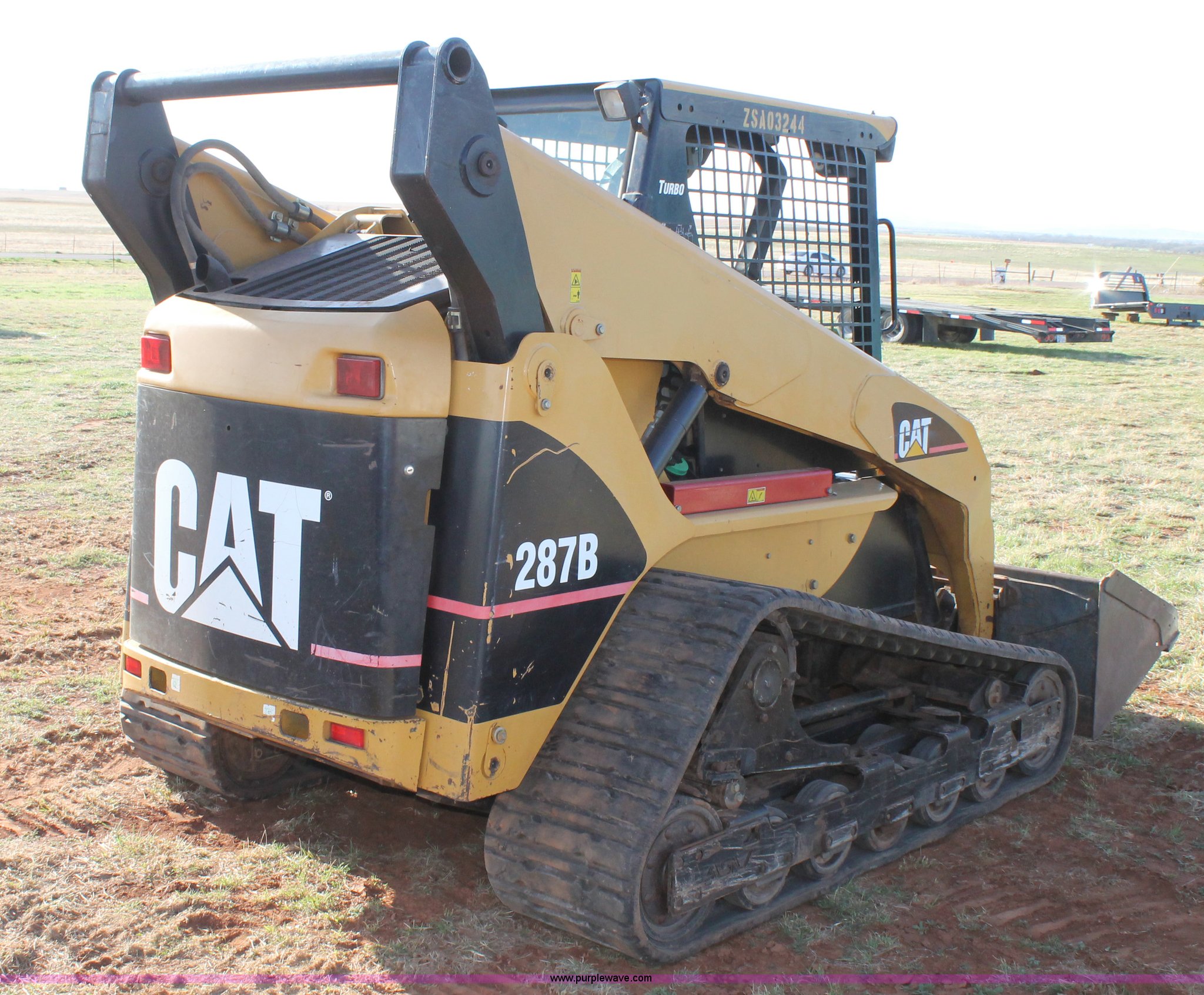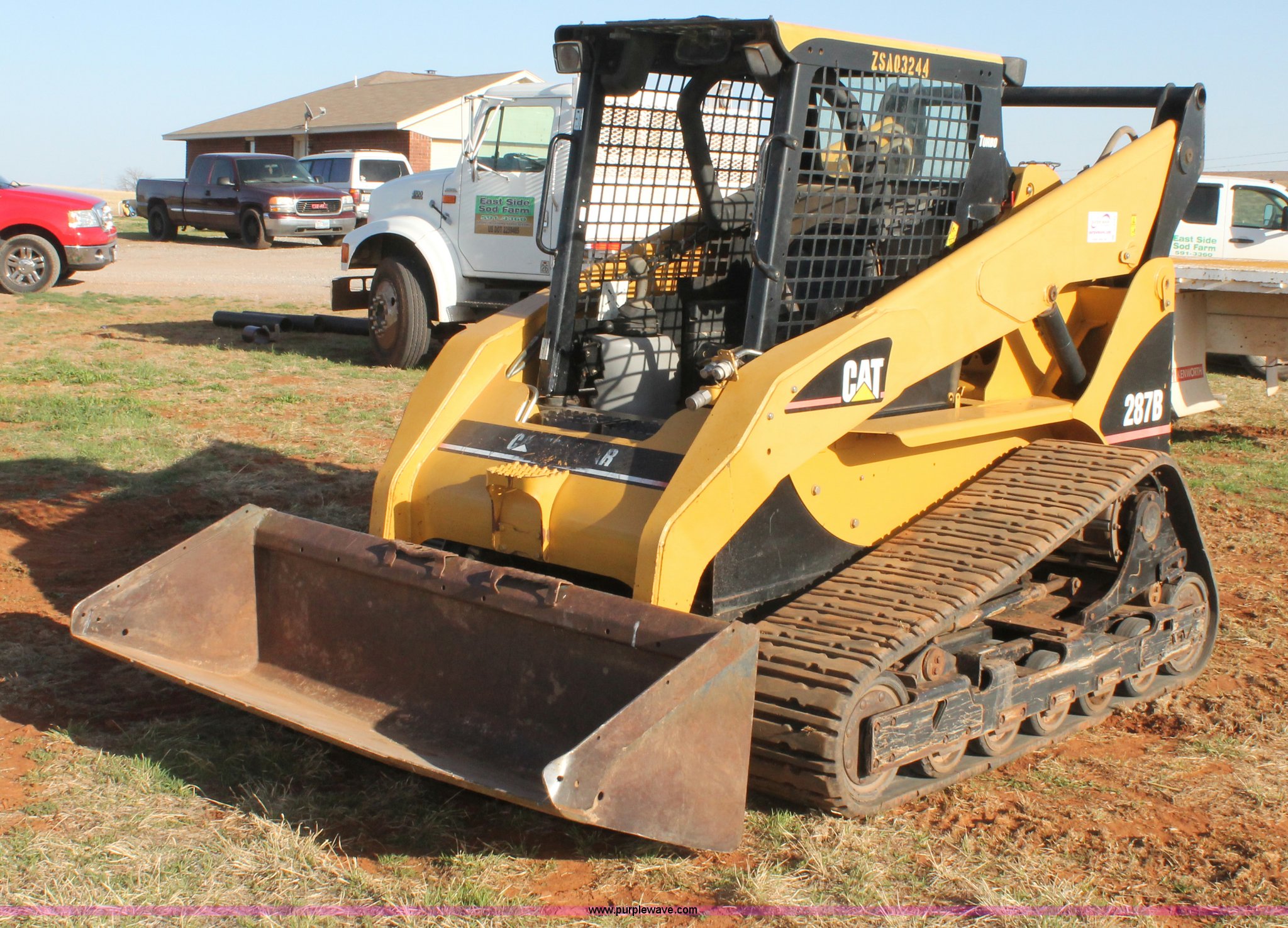Purple Wave is selling a used Tracked Skid Steer Loader in Oklahoma. This item is a 2006 Caterpillar 287B skid steer with the following: 1,722 hours on meter, Caterpillar 3044C DIT3.3L four cylinder turbo diesel engine, 80 HP, Hydrostatic transmission, Spring suspension seat, Backup alarm, Front and rear work lights, Joystick bucket controls, 78" low profile bucket, Bolt-on cutting edge, Manual quick coupler, Auxiliary hydraulics, Eight bottom rollers, Serial CAT0287BJZSA03244