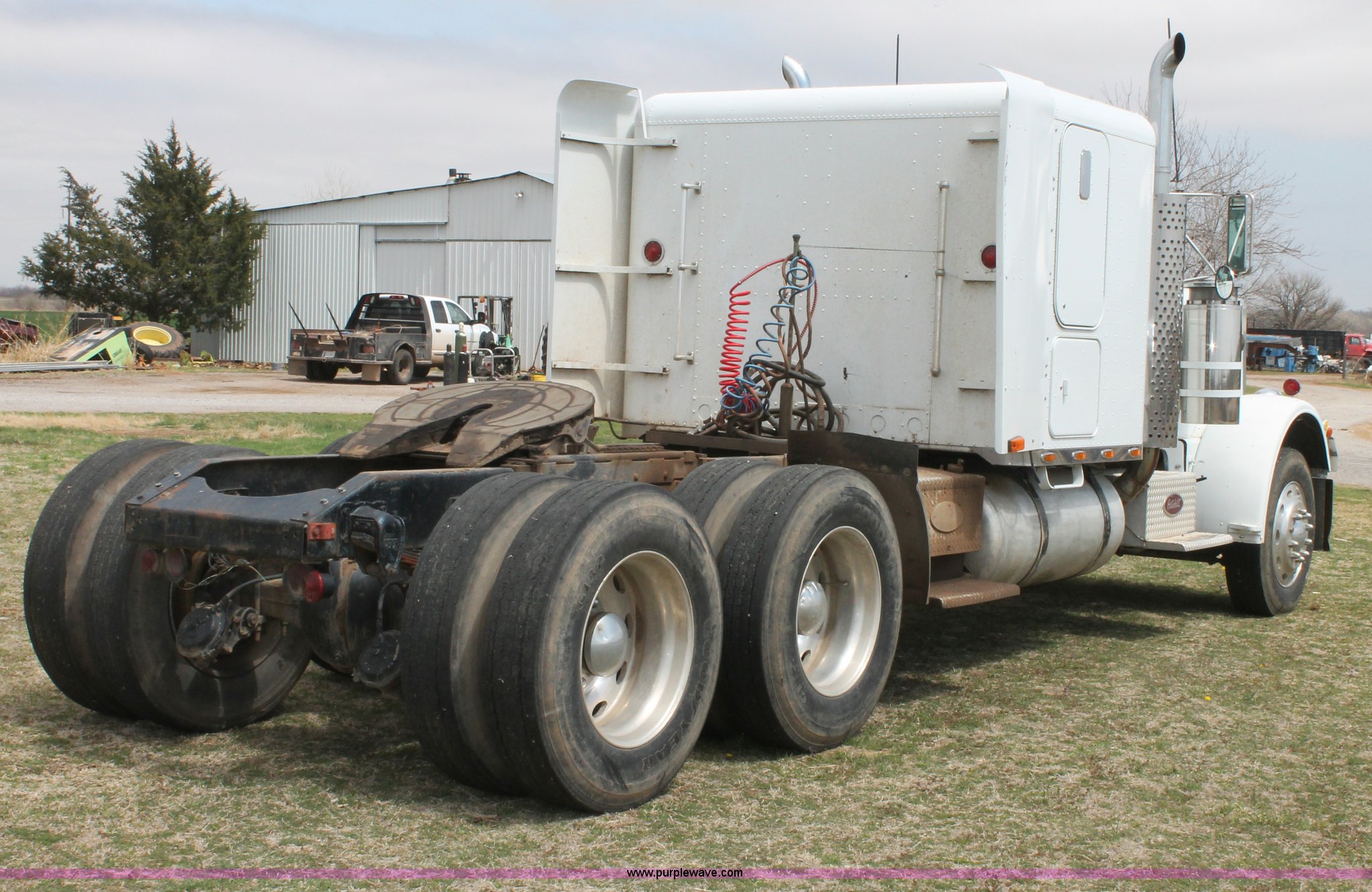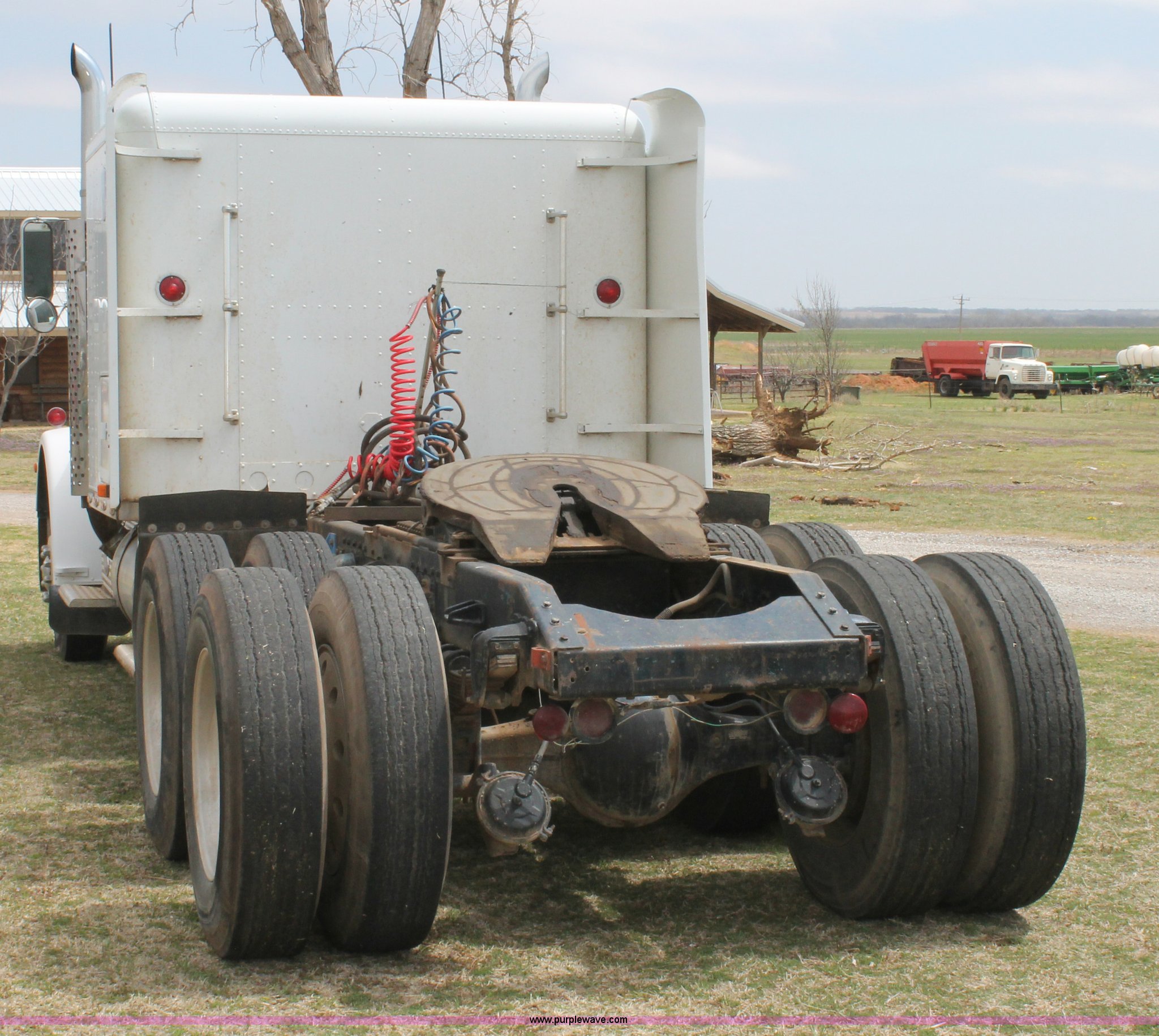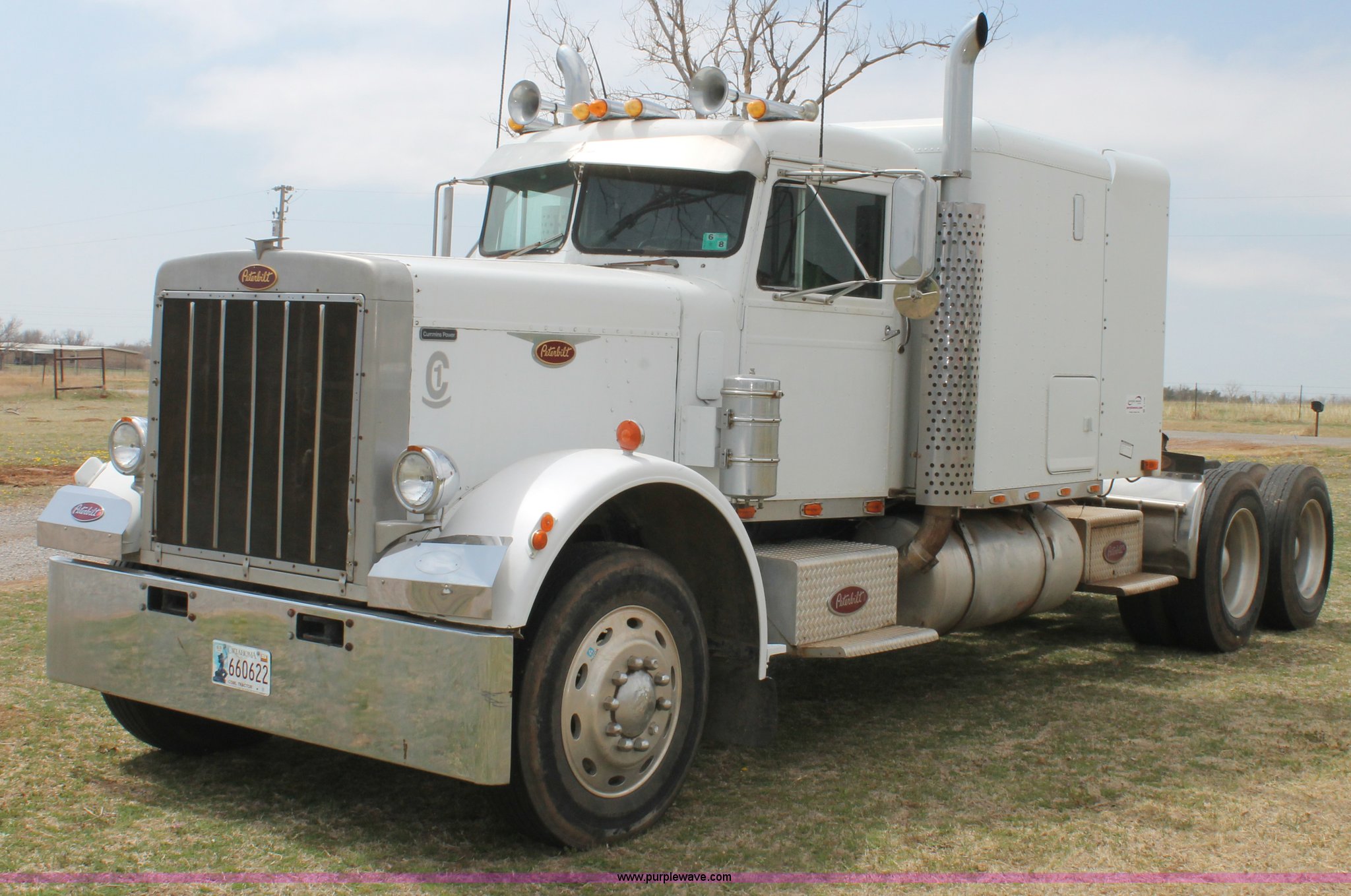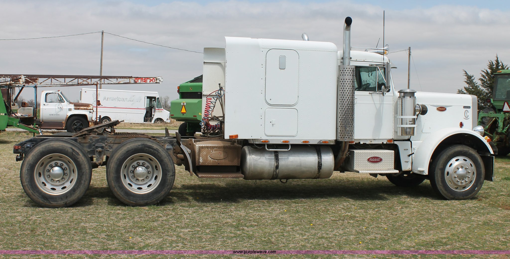 Purple Wave is selling a used Truck Tractor in Oklahoma. This item is a 1972 Peterbilt 359M semi truck with the following: 748,264 miles on odometer, Cummins NTC 400 diesel engine, Thirteen speed manual transmission, Twin screw, AC and heat, AM/FM/CD, Air suspension seat, Full size sleeper, Storage, Exterior visor, Chrome bumper, Dual 110 gallon fuel tanks, Dual rear exhaust stacks, Steel deck plate, Wet kit, Spring suspension, Air brakes, Aluminum wheels, 285/75R24.5 tires, GVWR 54,980 lbs, FAWR 12,580 lbs, IAWR 21,200 lbs, RAWR 21,200 lbs