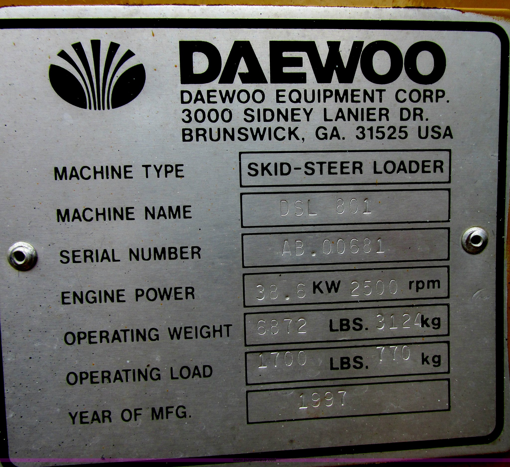 1997 Daewoo DSL8D1 skid steer has sold in Watertown, South Dakota for $8250. Item E5309 sold on April 24th, 2014.