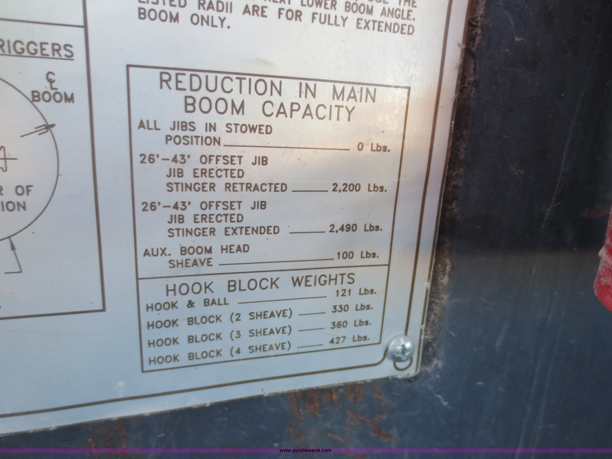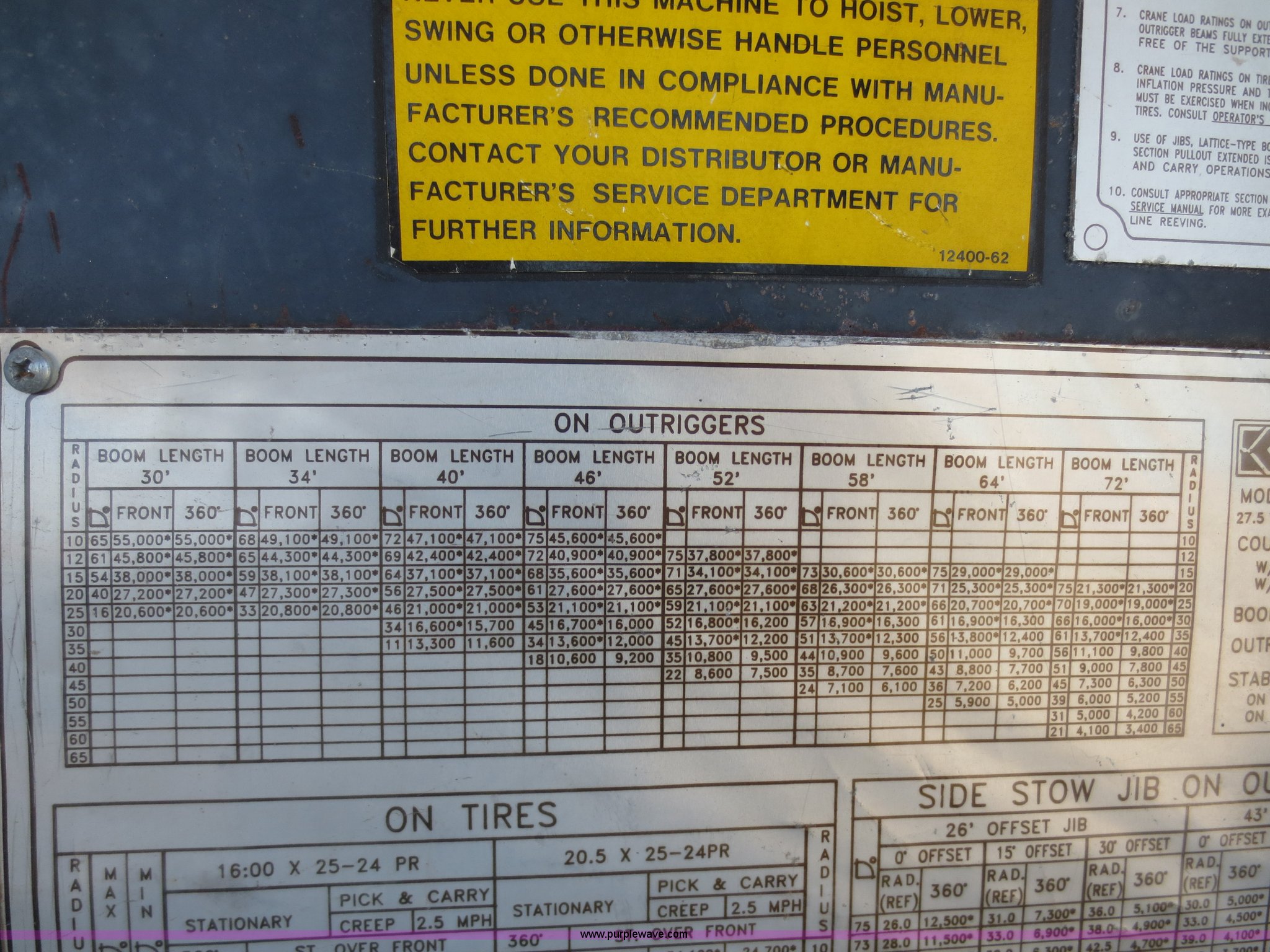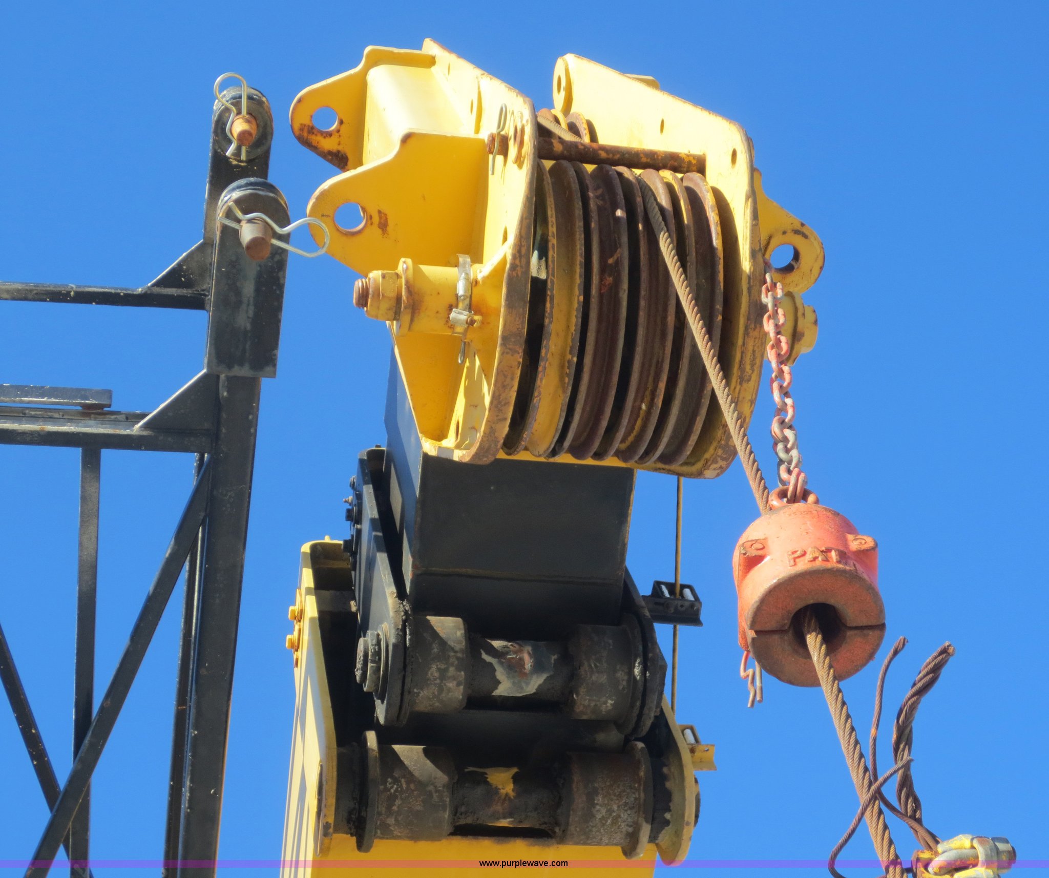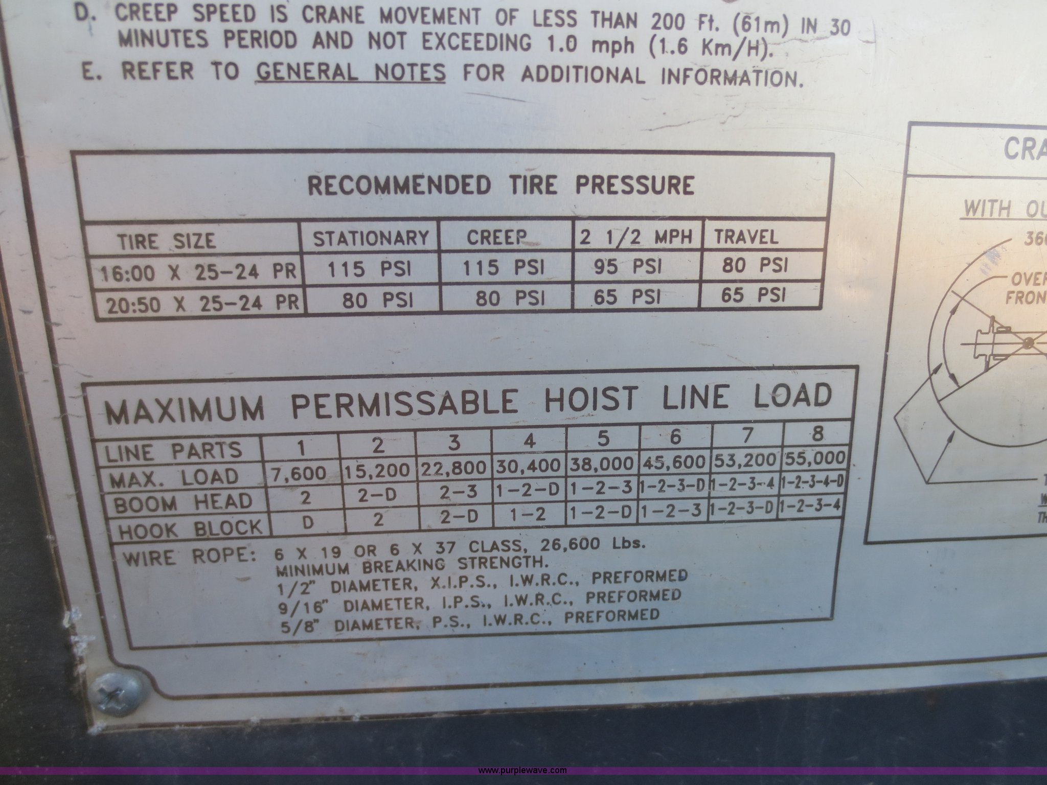 Purple Wave is selling a used Carry Deck Crane in Oklahoma. This item is a 1990 Lorain LRT275D crane with the following: 2,454 hours on meter, Cummins 5.9L turbo diesel engine, Four wheel drive, Two wheel, four wheel, and crab steer, 72' three section full power boom, 26' jib, 27.5 ton maximum capacity, Single winch, Anti-two block, Hook block, Serial 2941, 16.00-25 tires, 24 ply, Inspection completed September 21, 2011, Serial 79875