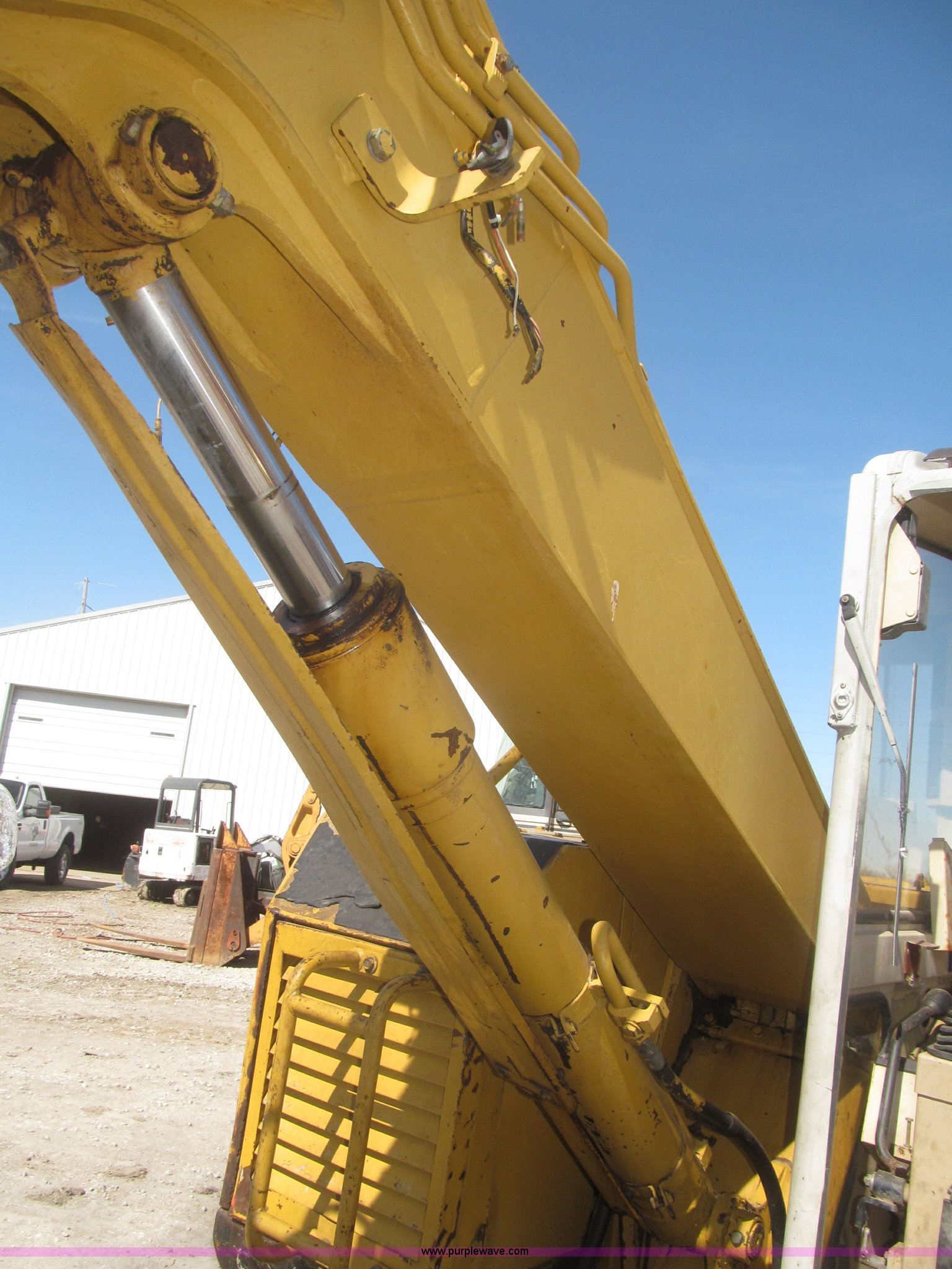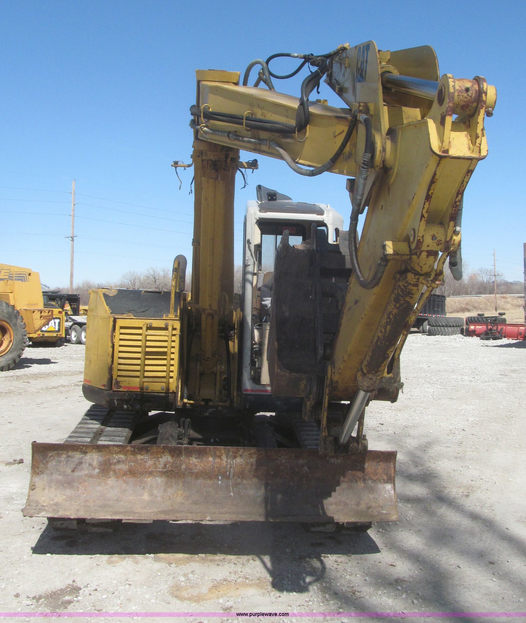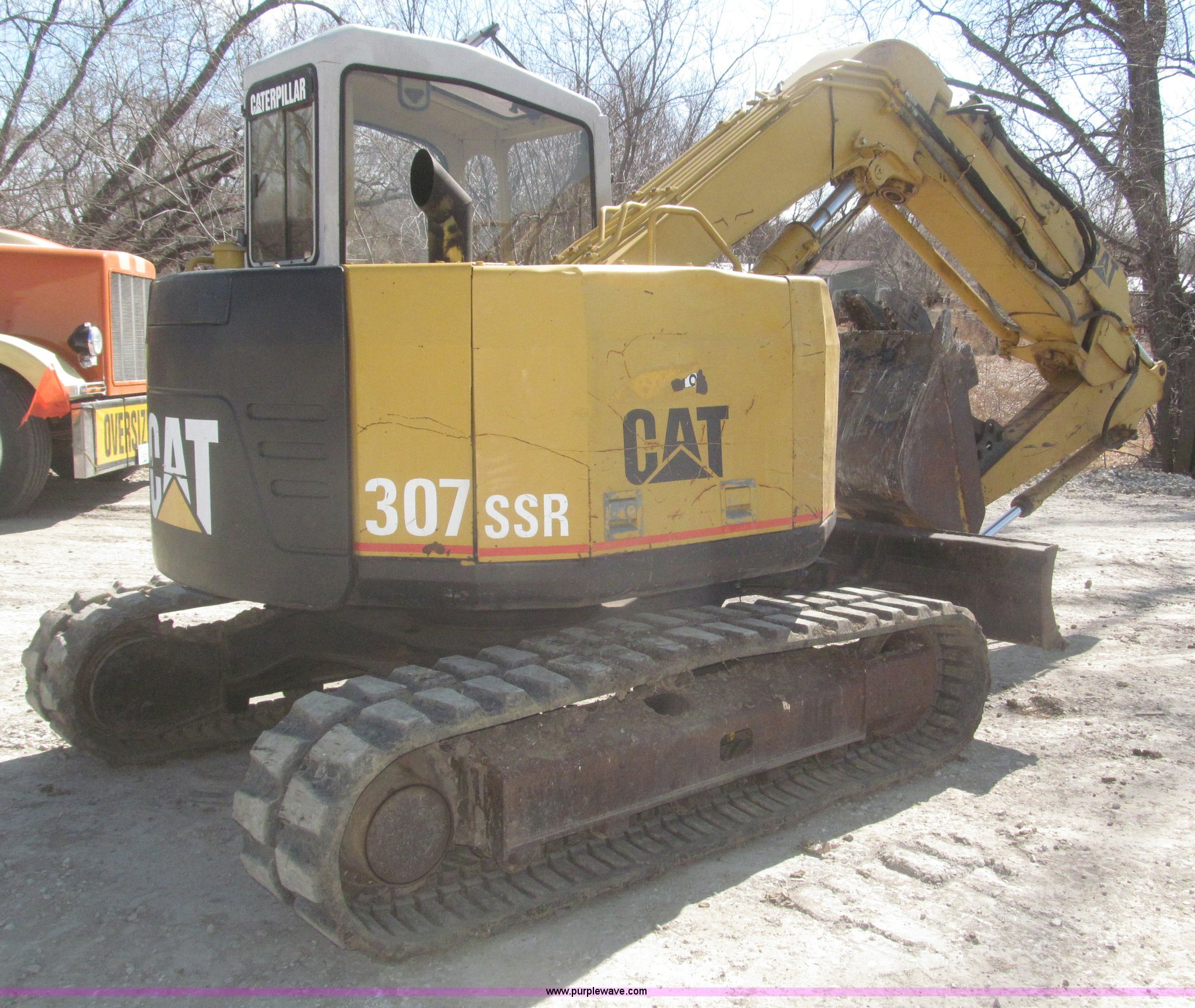 Purple Wave is selling a used Mini Excavator in Iowa. This item is a 1994 Caterpillar 307SSR mini excavator with the following: 4,197 hours on meter, Mitsubishi 4D32 four cylinder diesel engine, 54 HP, Serial CCB644C7, Hydrostatic transmission, Enclosed cab, AM, Spring suspension seat, Engine enclosures, Side articulating boom, 42"L x 10.5"W adjustable manual thumb, 87"L dipper arm, 90"W x 17"H back fill blade, 29.5"W bucket, Three teeth missing, (5) bottom rollers, 17 3/4"W tracks, 16,760 lbs. base operating weight, Cab door missing, Work lights missing, Top cab roof plexiglass broken, Back fill blade cable to cab is broken, Back fill blade cracked, Seat torn, Compartment panel missing below turret, No tail swing, Serial 2FLC1463