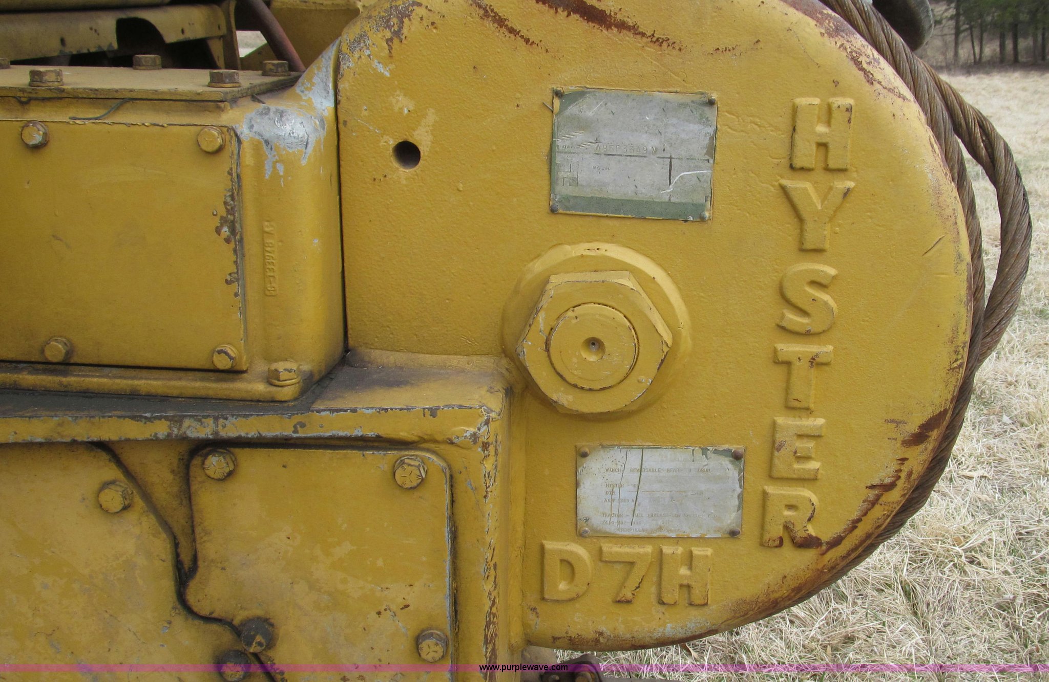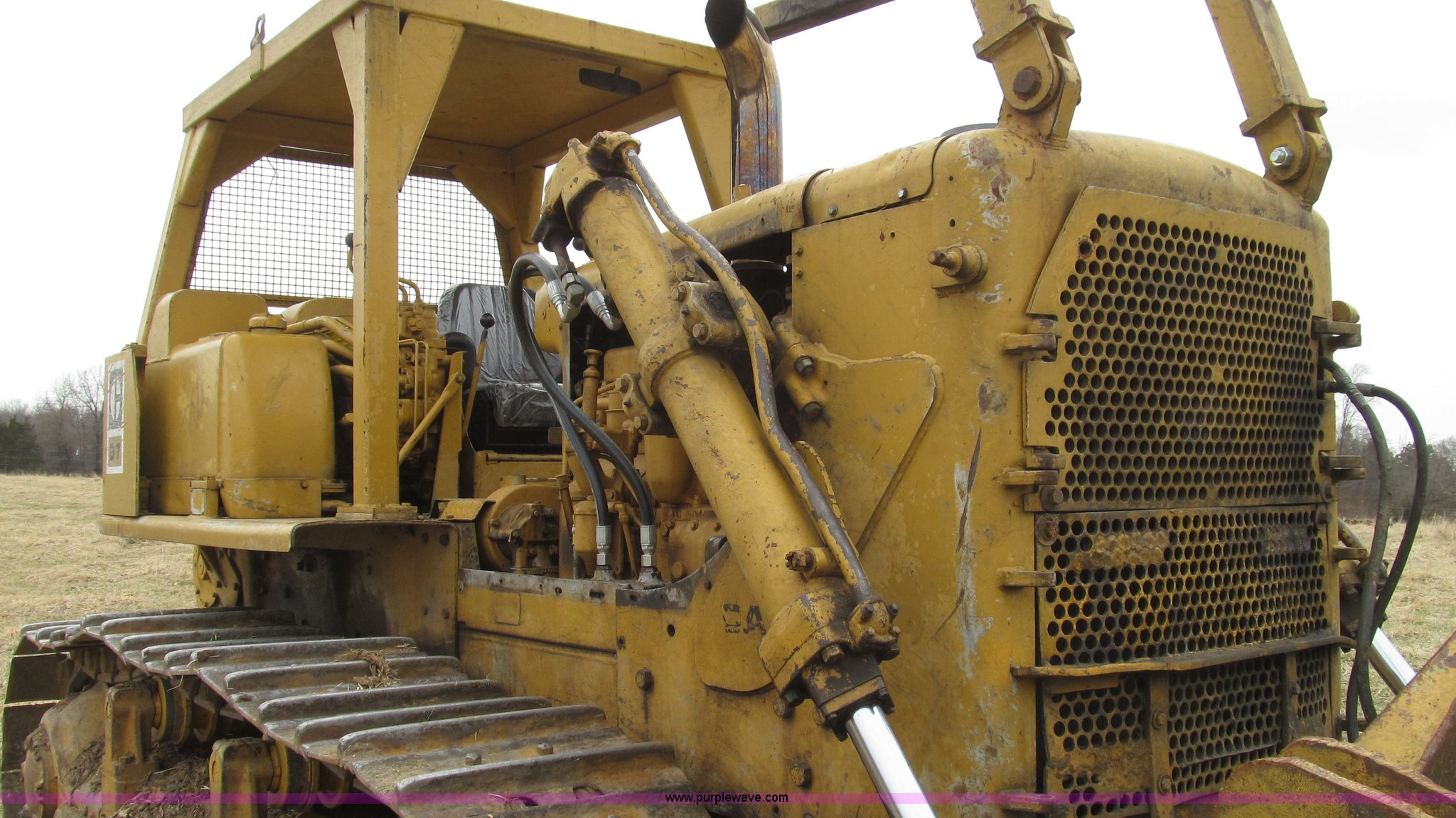 Purple Wave is selling a used Crawler Dozer in Missouri. This item is a 1969 Caterpillar D7E dozer with the following: 9,199 hours on meter, Caterpillar four cylinder diesel engine, 180 HP, Serial 75E2043, Powershift transmission, 3F-3R gears, Recently replaced spring suspension seat, Rear screen guard, Unattached engine enclosures included, Brush risers, 11'W dozers, Rear draw bar, Hyster D7H rear winch, Serial A85P3349N, (6) rear auxiliary hydraulic outlets, Four tooth/shank backup ripper blade mount, (8) Solesbee's shank blade mounted root rake, (6) bottom rollers, 22"W tracks, 42,060 lbs. base operating weight, (6) parts, service, and operators manuals included, Serial 75E2319
