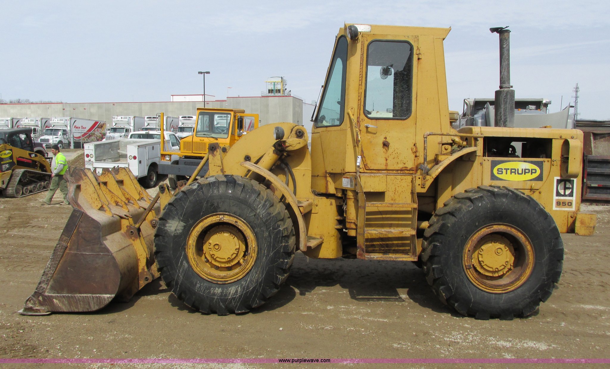 1965 Caterpillar 950 wheel loader. Caterpillar 3304 diesel engine, Powershift transmission 4F-4R gears, Dual stick loader controls, Front wipers, Three cubic yard bucket Bolt-on cutting edge, Air brakes, 20.5-25 tires, Serial 8LJ3280. View equipment video. Strupp Trucking. N3567 Shiftar Road. LaCrosse, WI 54603