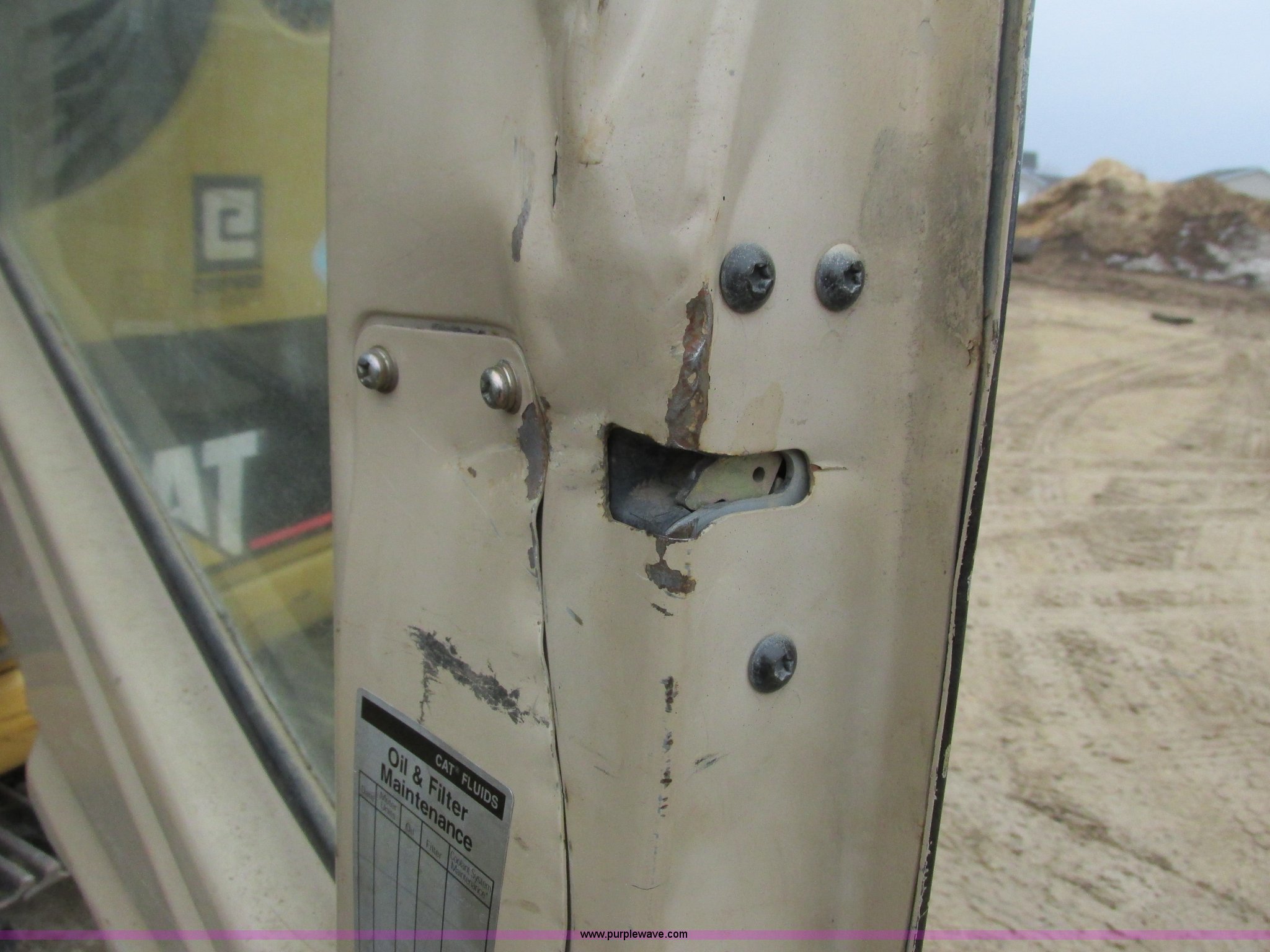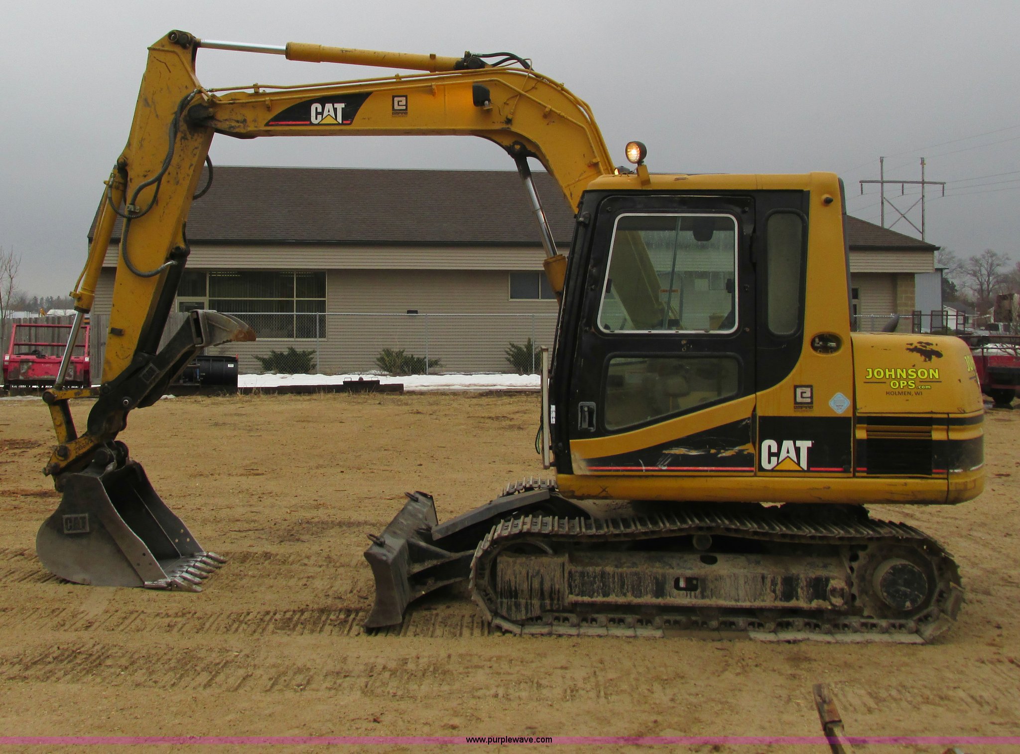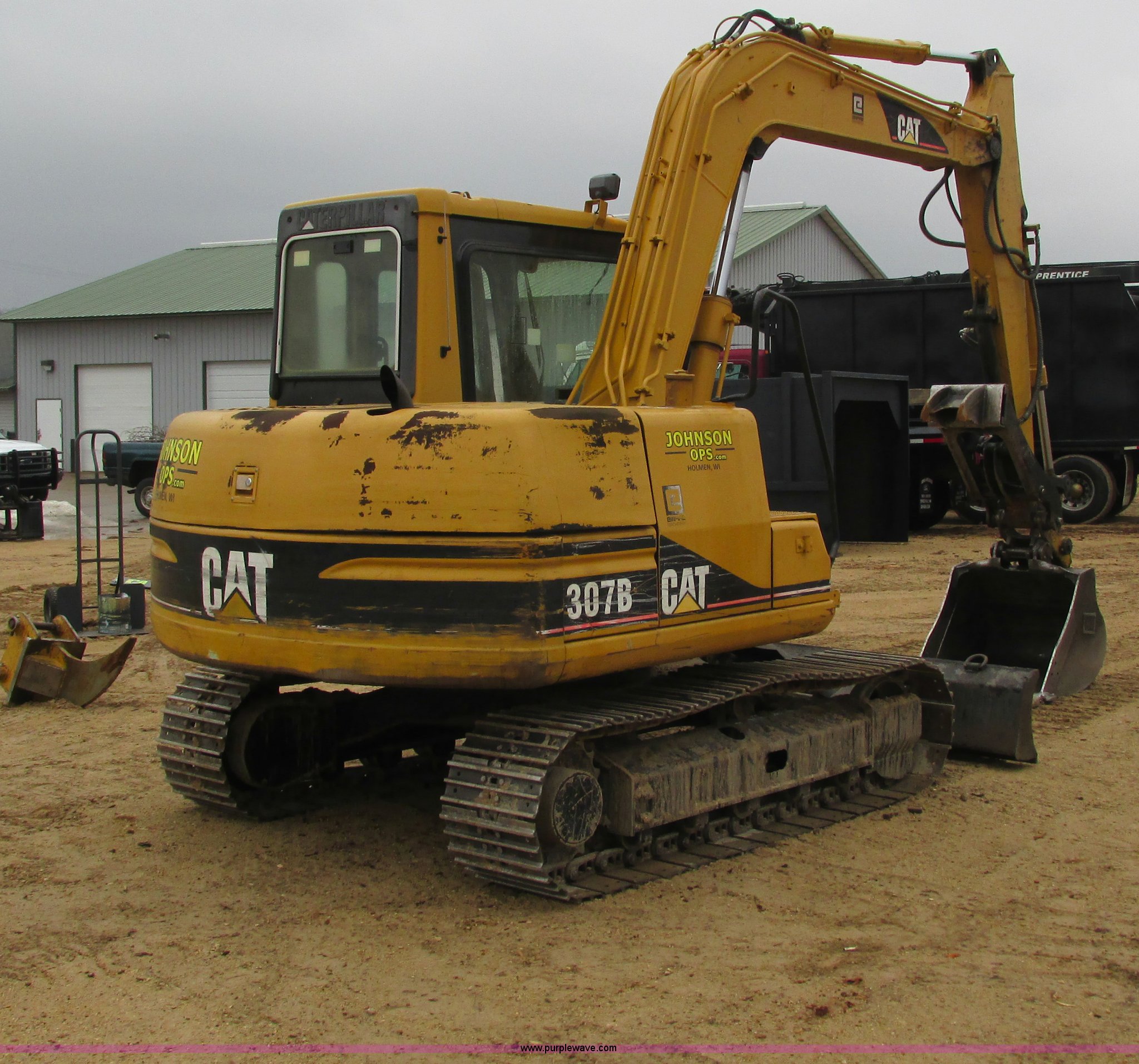 Purple Wave is selling a used Mini Excavator in Wisconsin. This item is a 1999 Caterpillar 307B excavator with the following: 2,947 actual hours, Mitsubishi four cylinder diesel engine, AC and heat, AC needs charged, AM/FM, Spring suspension seat, Work lights, 89" stick, 33"W bucket, Six replaceable teeth, Caterpillar hydraulic thumb, Full rotation, 94.5"W back fill blade, Ripper tooth, Manual quick attach, 17.5" triple grouser track pads, Shop built track ice picks, Doors do not latch, Serial 5CW00283
