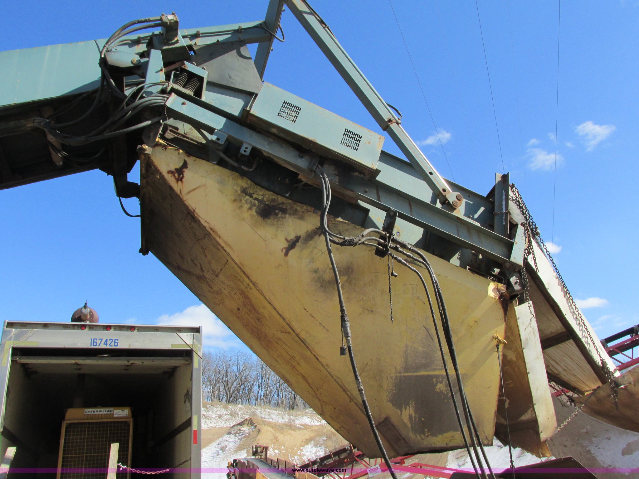 Purple Wave is selling a used Pug Mill in Wisconsin. This item is a Powerscreen Commander sand screen with the following: 75 HP three phase electric motor, 5' x 10' dual screen deck, 1.5" and 3/8" screens, 5' x 13' feed hopper, 5" grizzly bar spacing, 36"W belt, Auxiliary hydraulics, Hydraulic height adjustment