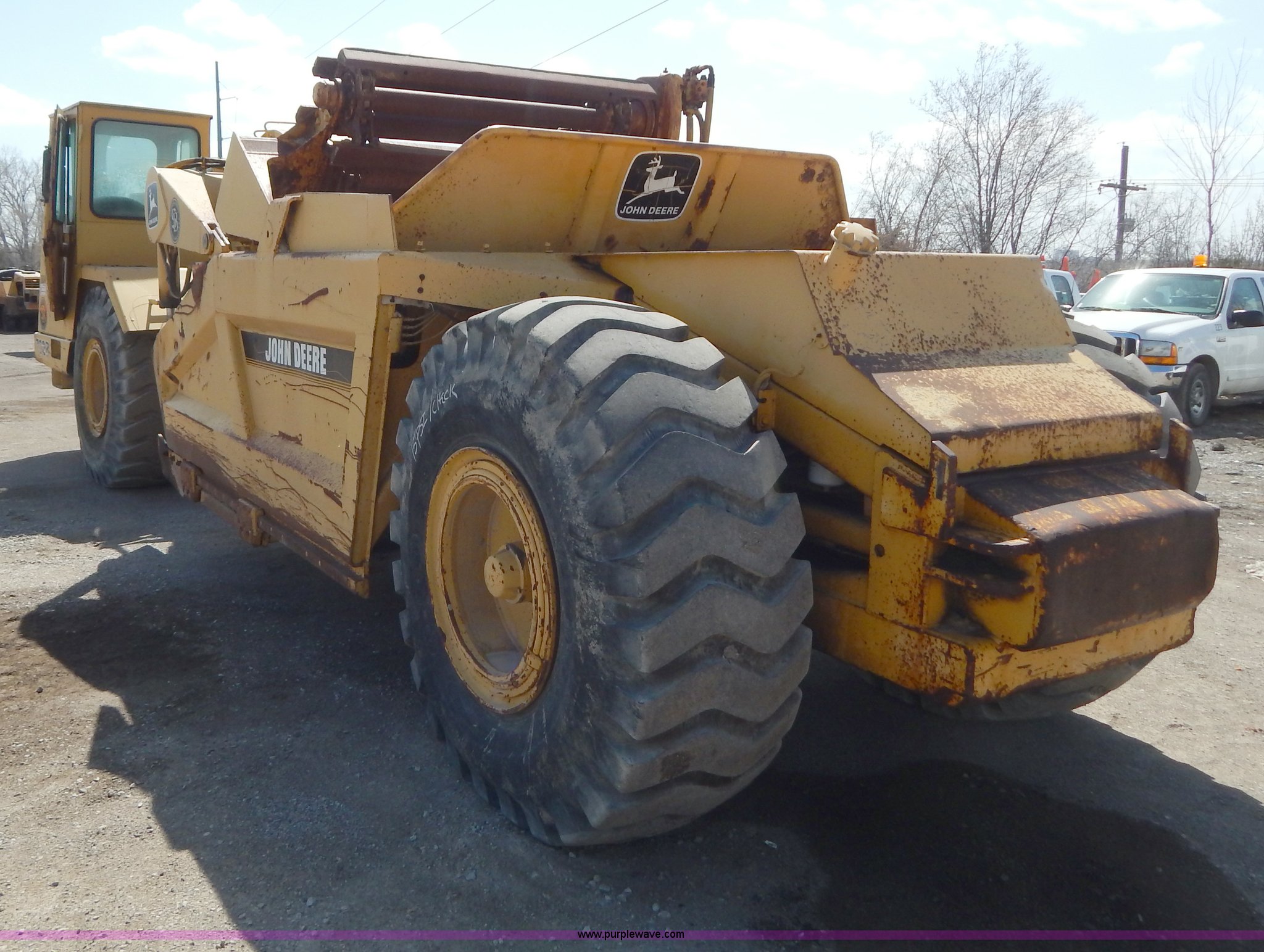 This 1993 John Deere 762B paddle scraper will sell to the highest bidder regardless of price.