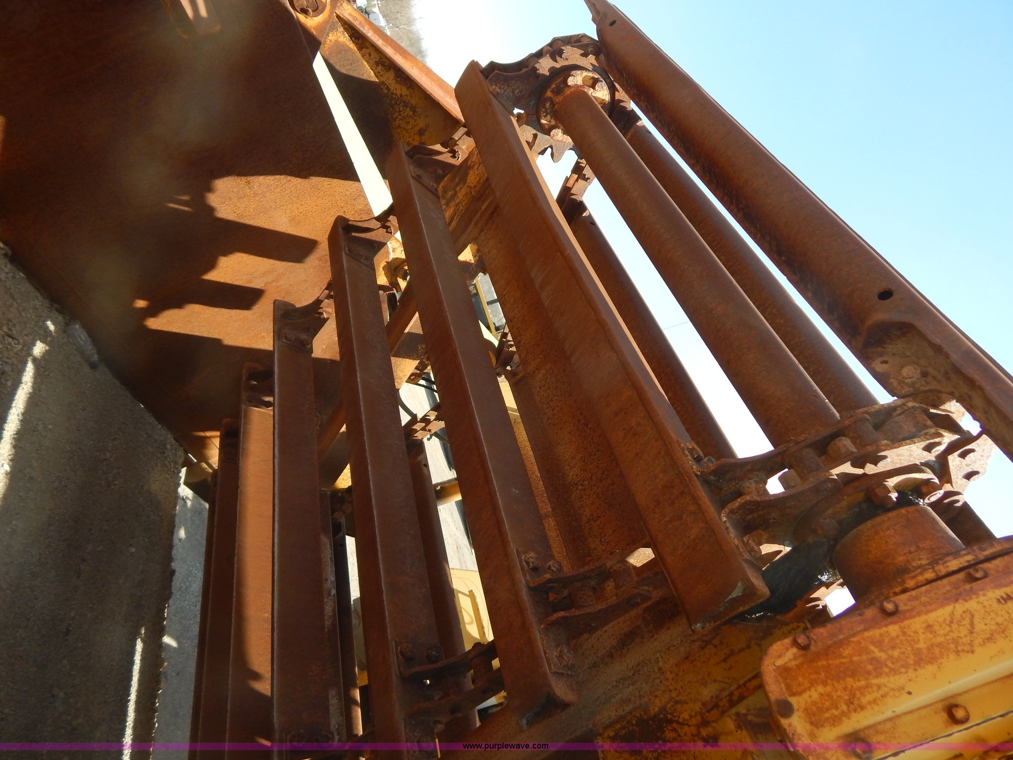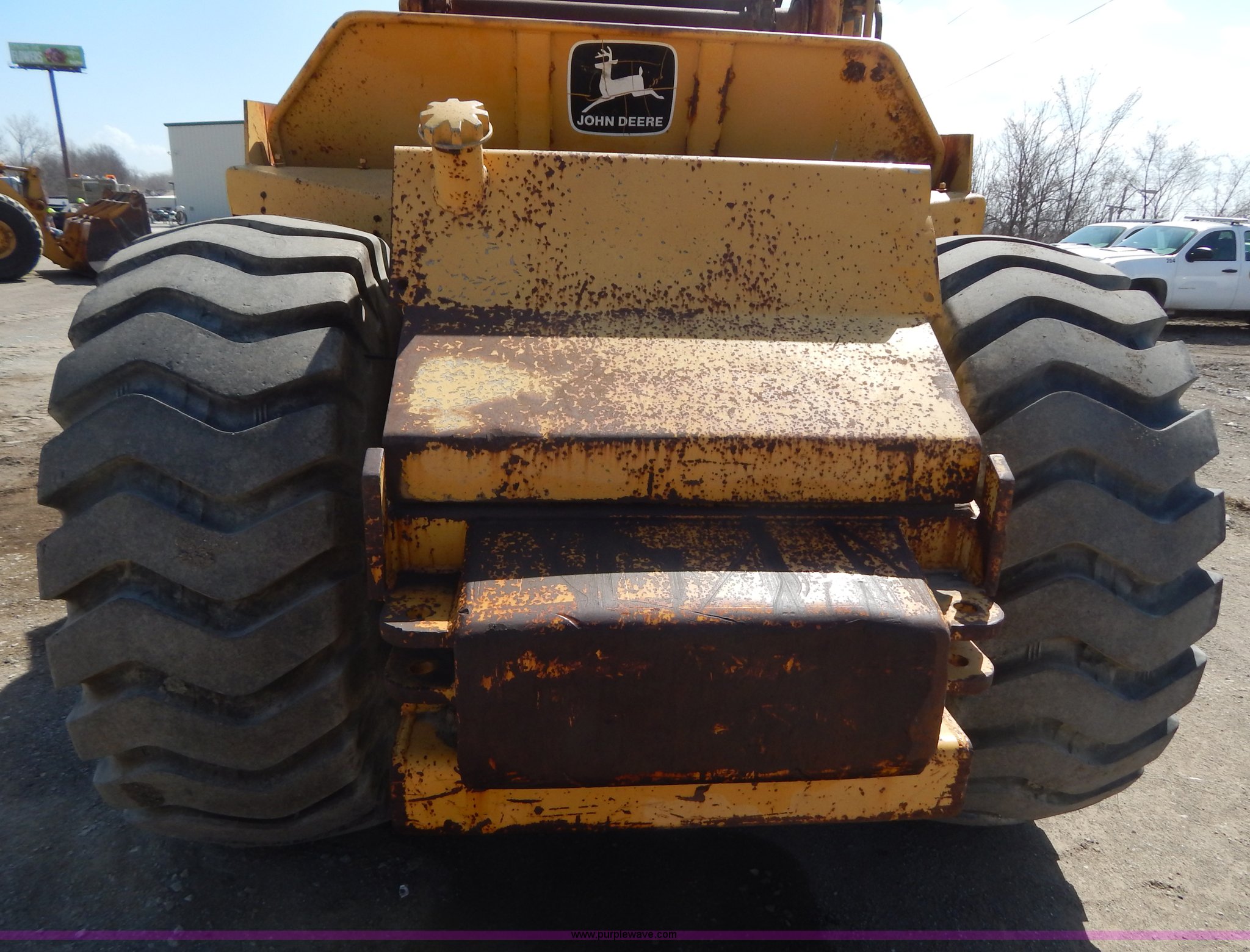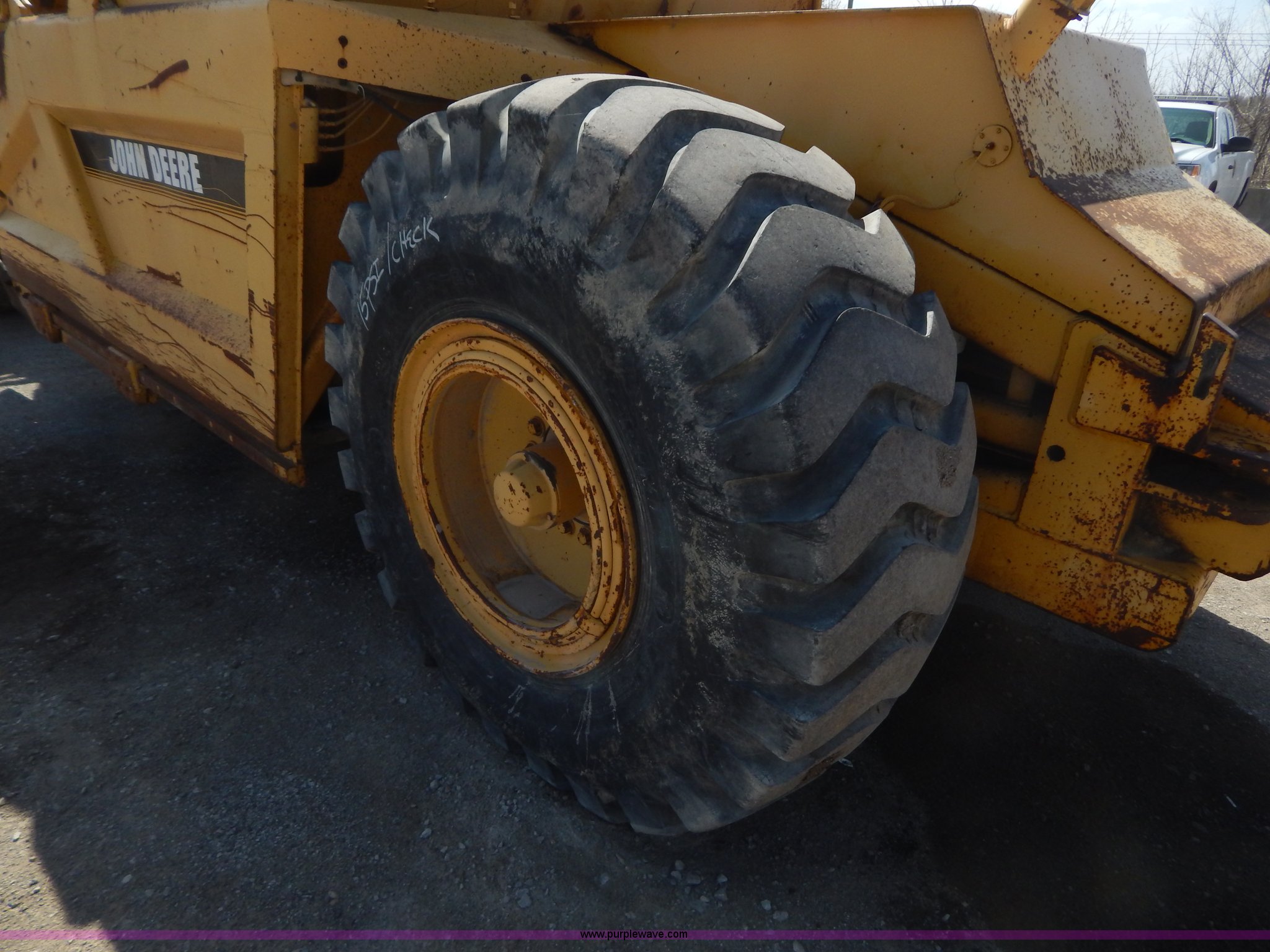 Purple Wave is selling a used Elevating Scraper in Missouri. This item is a 1993 John Deere 762B paddle scraper with the following: 6,448 hours on meter, John Deere six cylinder turbo diesel engine, Serial RG646GA354768, Manual transmission, 6F-1R gears, Locking differential, Enclosed cab, Work lights, 23.5-25 tires, Windshield cracked, Left bowl lift cylinder leaks, Battery dead, Serial T0762BX765325, Unit# 7004