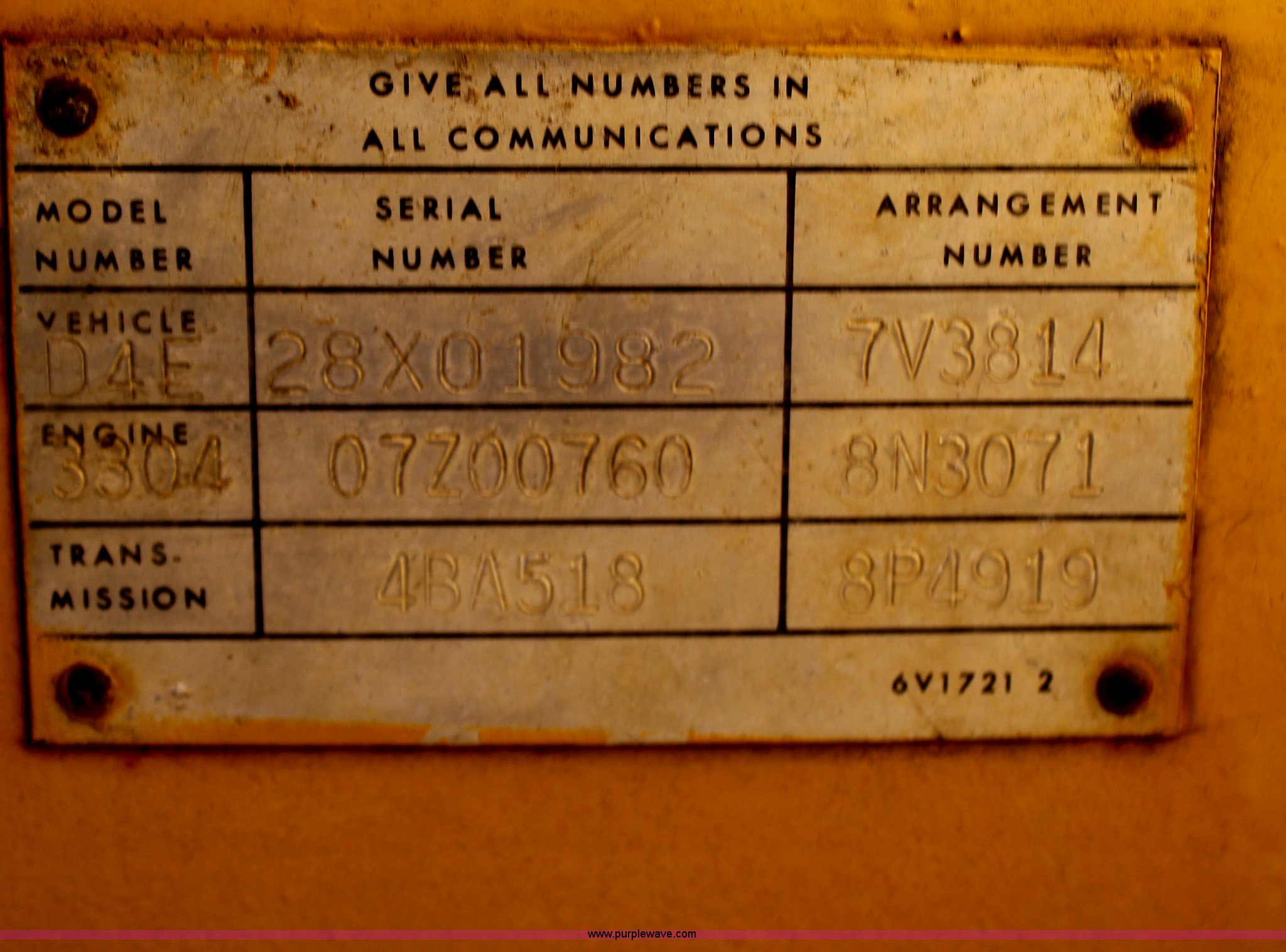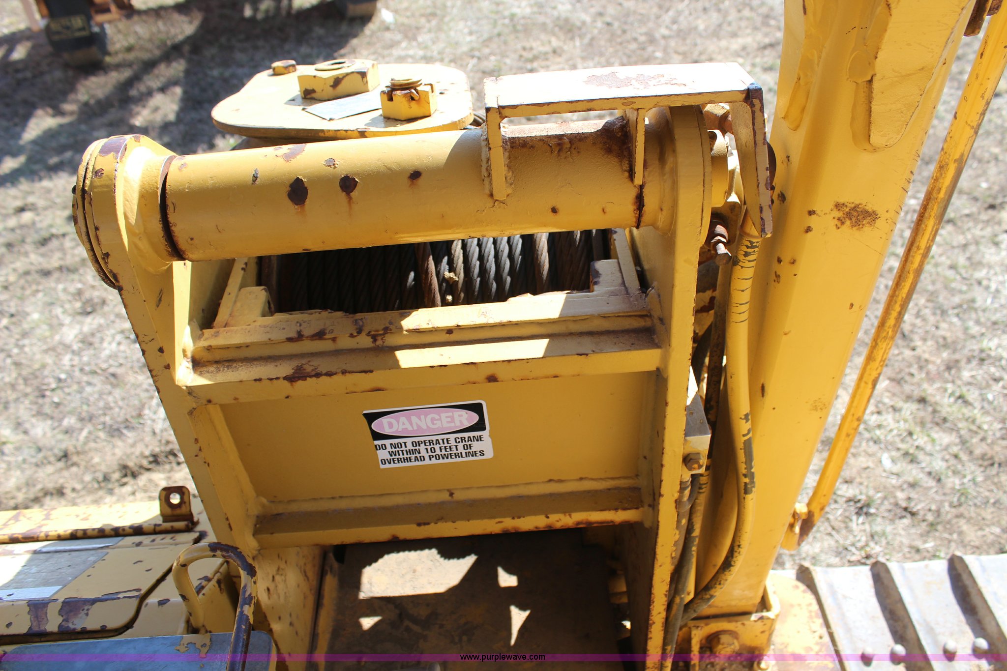 Purple Wave is selling a used Crawler Pipelayer in Missouri. This item is a 1981 Caterpillar D4E Pipelayer dozer with the following: 5,891 hours on meter, Caterpillar 3304 four cylinder diesel engine, 75 HP, Serial 07200760, Powershift transmission, 3F-3R gears, Canopy, Clutch brake steering, 14.5'W boom, Hydraulic winches, Mckissick blocks, 5/8" cable, Five bottom rollers, 20"W track pads, Serial 28X01982