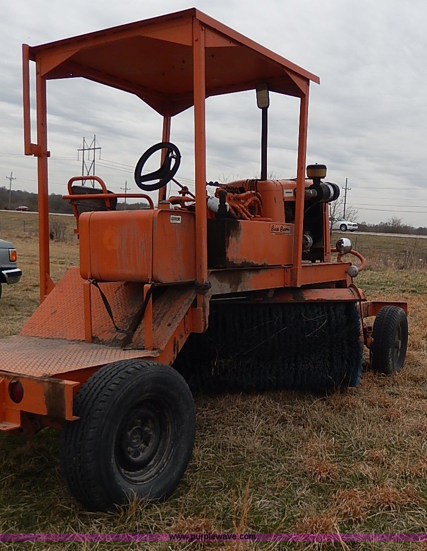 Purple Wave is selling a used Broom in Kansas. This item is a 1974 Broce Broom 10 broom with the following: 518 hours on meter, Ford 306 C.I.D. six cylinder gas engine, Engine needs overhaul, Four speed manual transmission, Vinyl interior, Exterior work lights, 7'W broom, 235/75R15 tires, Recently replaced clutch, fuel pump, and carburetor, Oil leaks, Serial 2439
