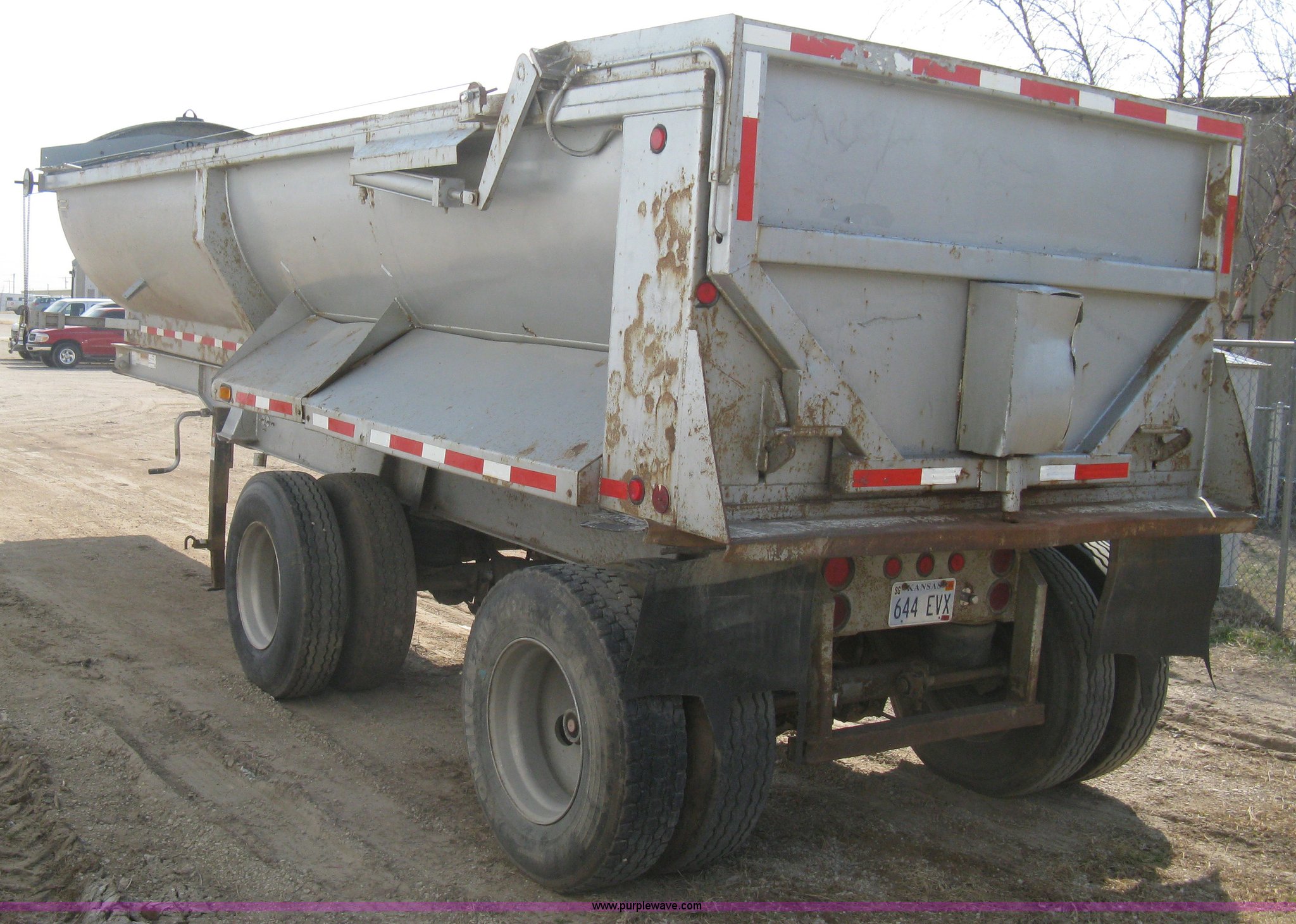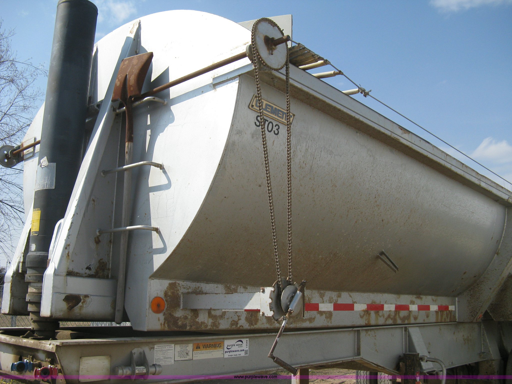 Purple Wave is selling a used End Dump Rock Trailer in Kansas. This item is a 1995 Clement barrel dump trailer with the following: 28.5'L x 8'W, Single ram hoist, Hydraulic end gate, Full fenders, Roll-over tarp, Two post landing gear, Air suspension, Air brakes, Aluminum wheels, 11R22.5 tires, GVWR 45,000 lbs, GAWR 22,500 lbs, Annual inspection completed May 2013, Unit# ST03