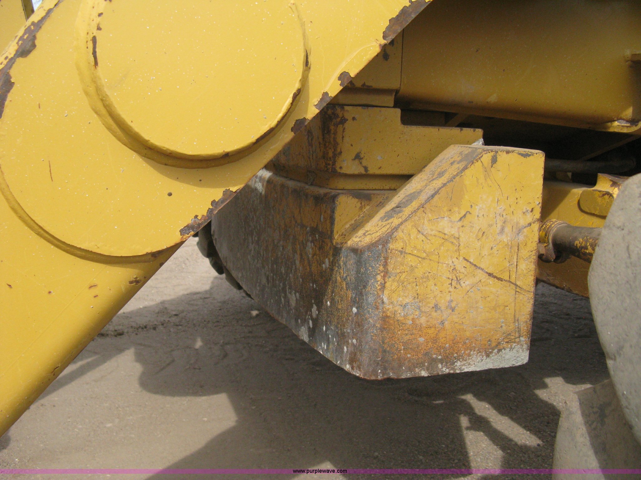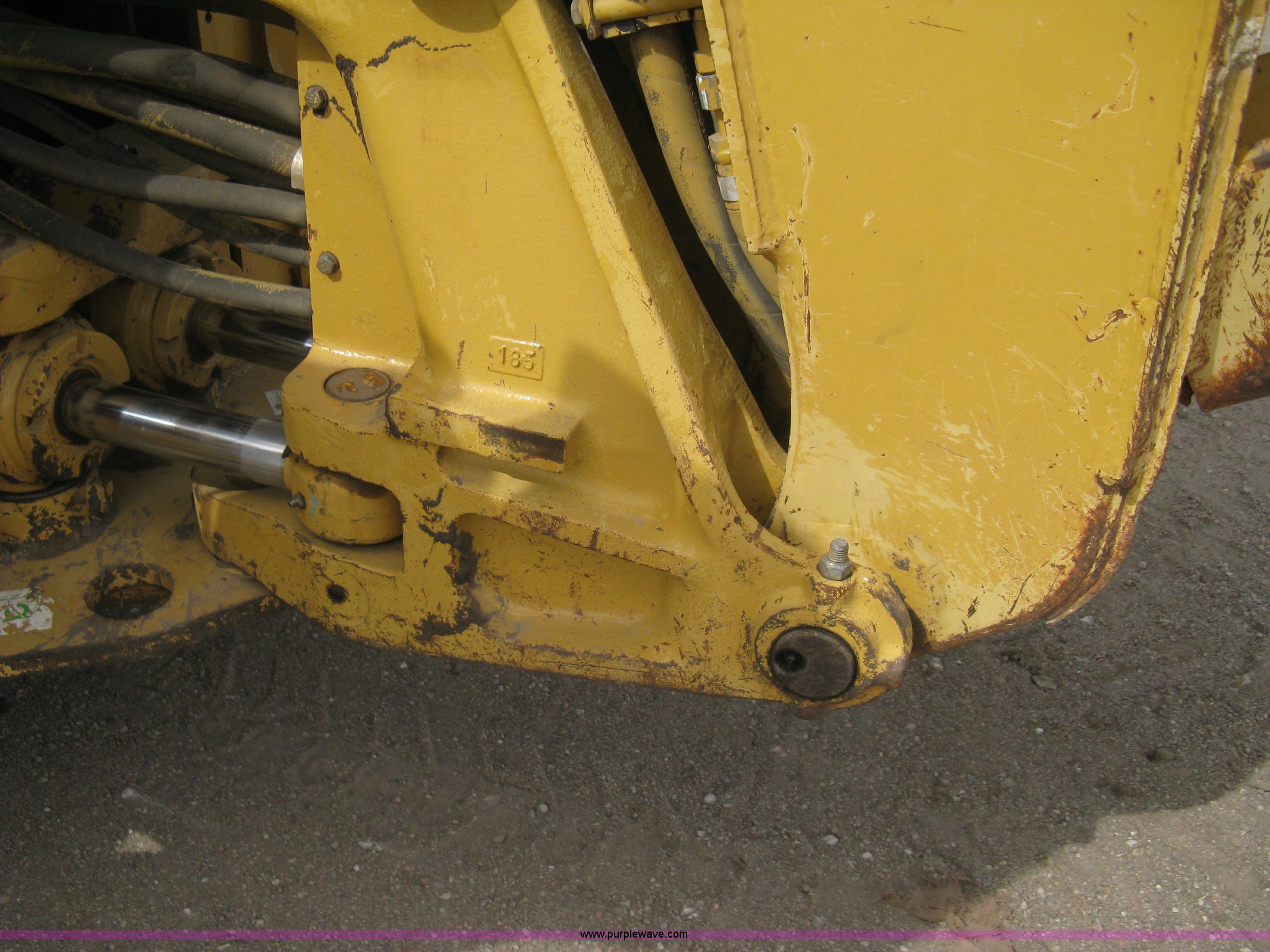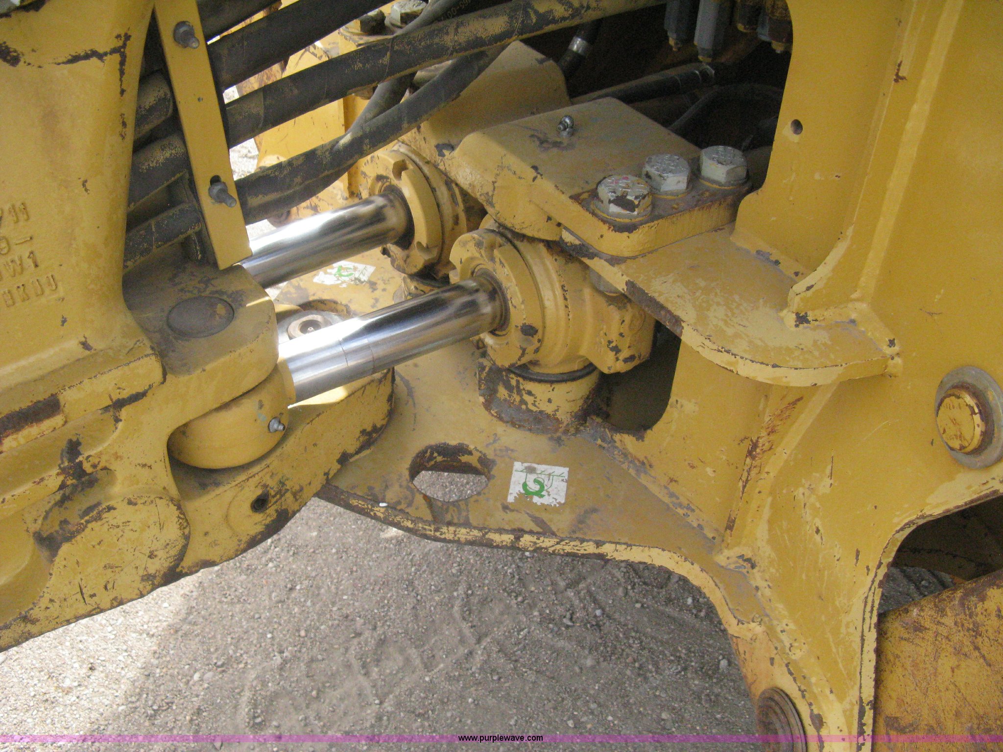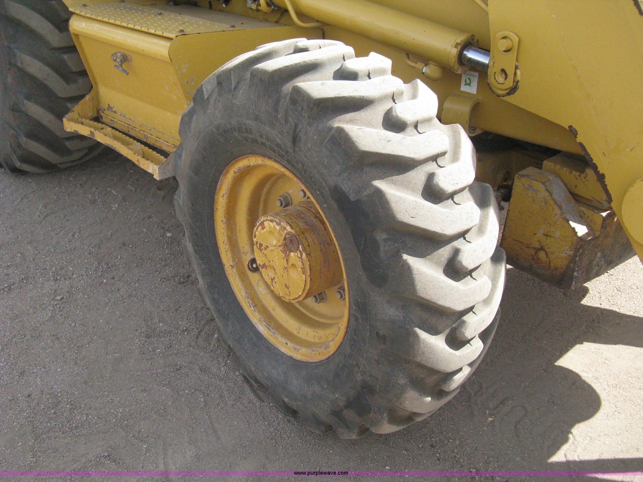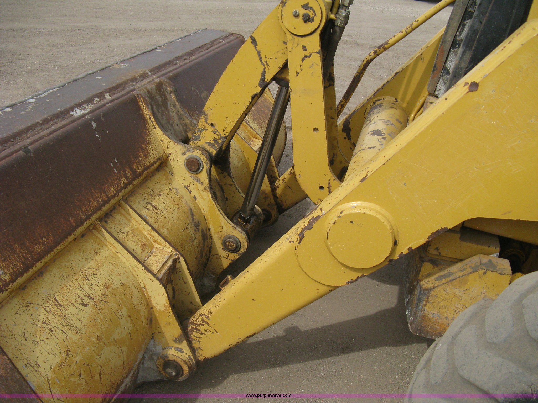 Purple Wave is selling a used Tractor Loader Backhoe in Kansas. This item is a 2002 Caterpillar 416D backhoe with the following: 7,222 hours on meter, Caterpillar diesel engine, Serial 7BJ56286, Four speed shuttle shift transmission, Four wheel drive, Enclosed cab, Heat, Tilt, Suspension seat, Weatherband radio, Joystick loader control, Outriggers, Street pads, Auxiliary hydraulics, Extend-a-hoe, 24"W pin-on backhoe bucket, (5) rock teeth, Welded flat ditch plate, 88"W loader bucket, Bolt-on cutting edge, Drain holes in bucket, Weld repairs, Hard serviced, Work lights, Front counter weights, Firestone 12.5/80-18 front tires, One recently replaced, Recently replaced Firestone 19.5L-24 rear tires, Service records available, One owner, Side and rear glass missing, Serial CAT0416DPBFP03214, Unit# 5363L