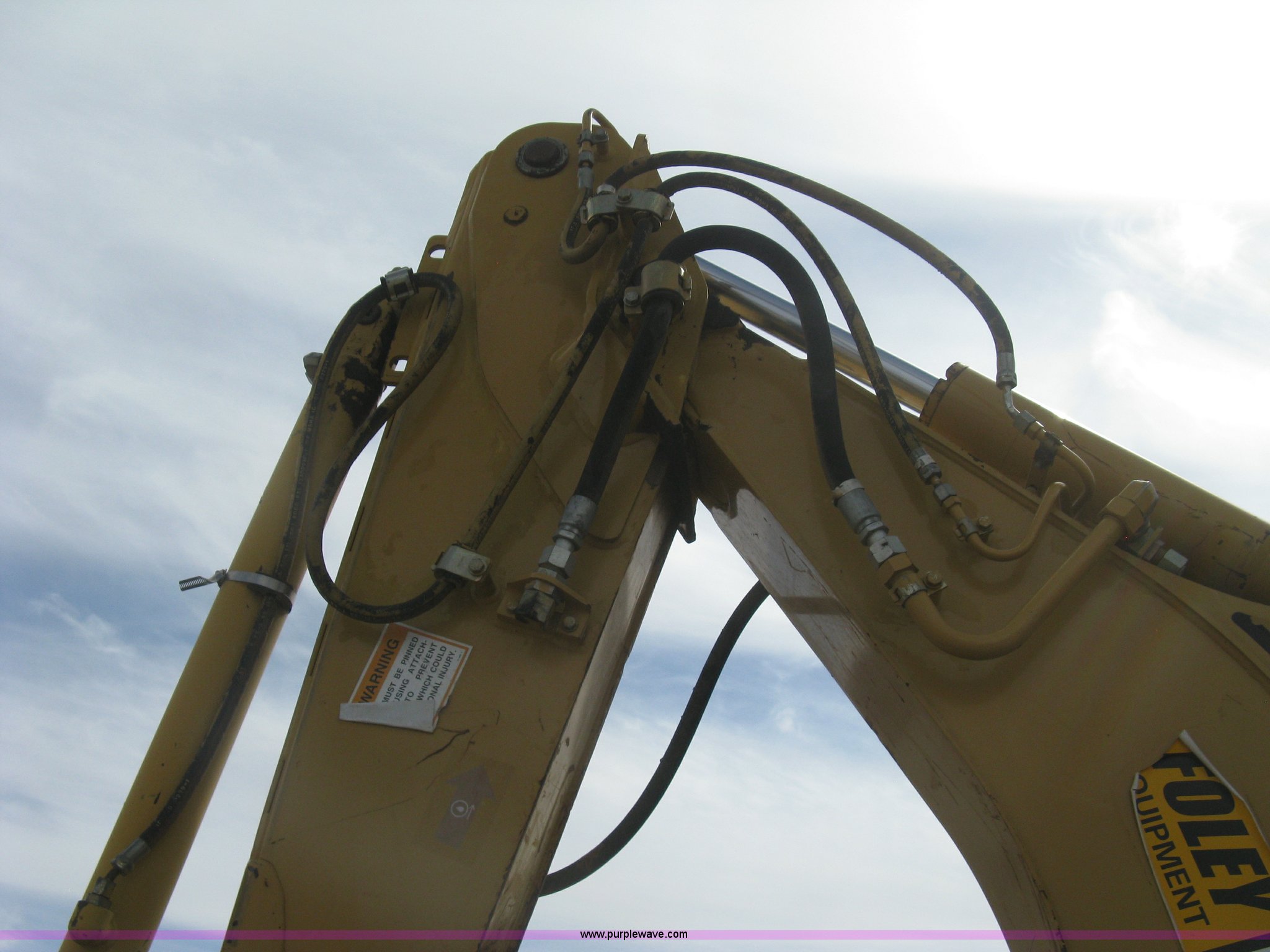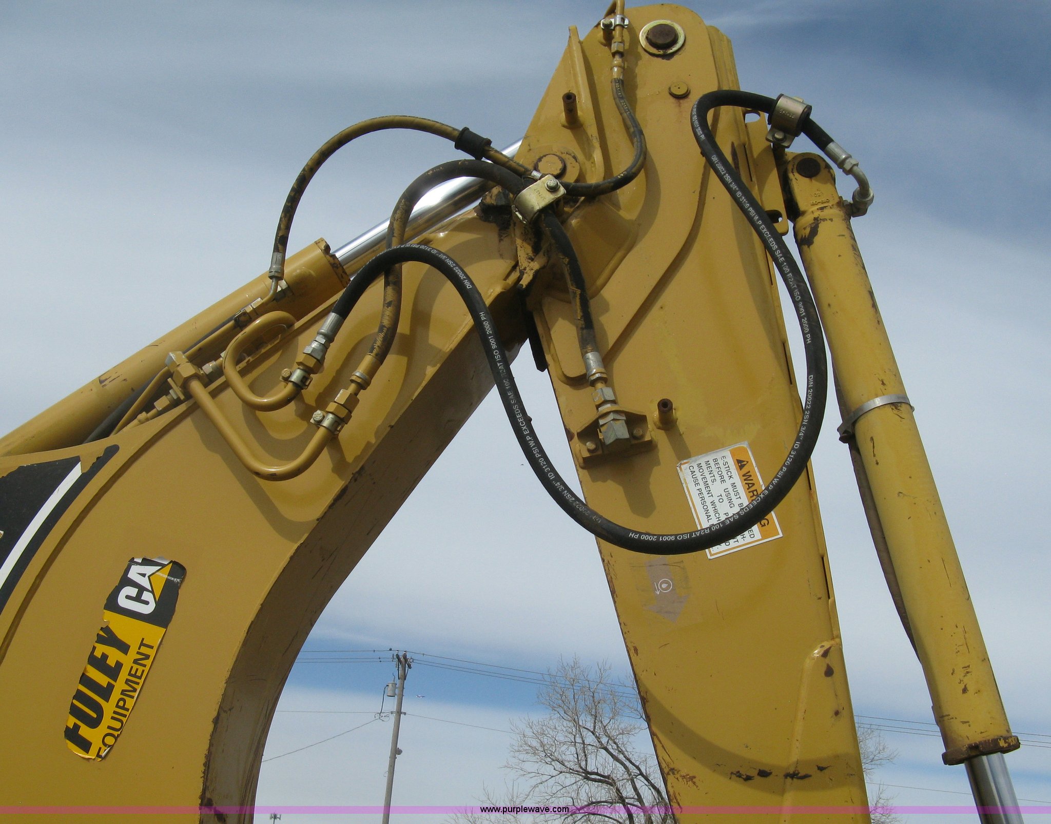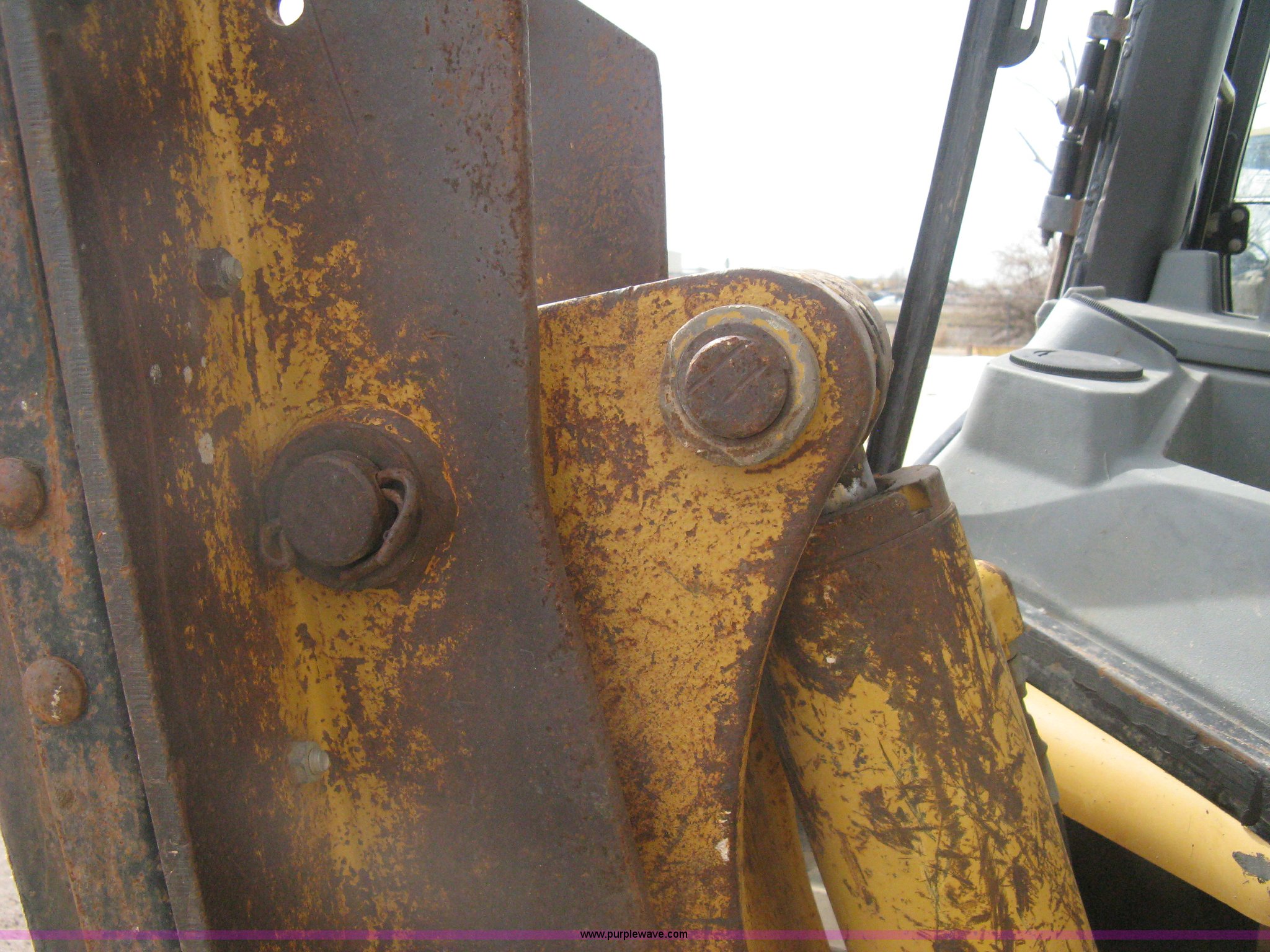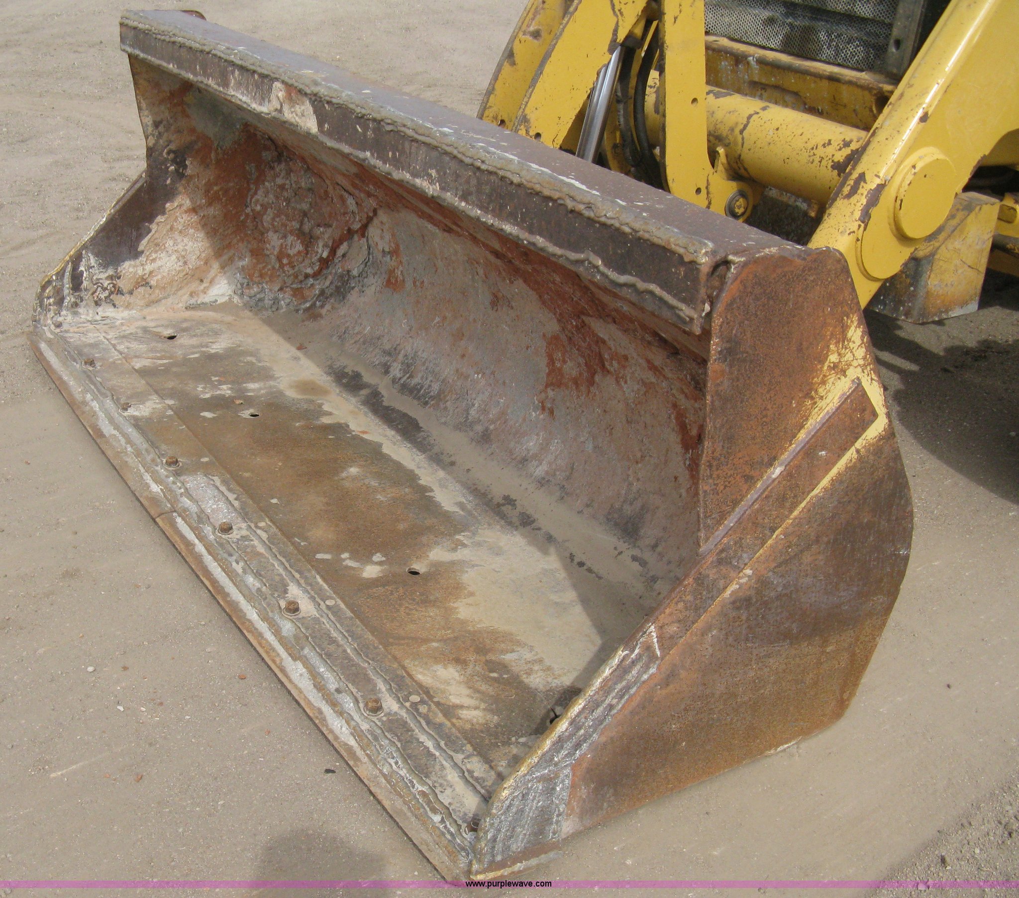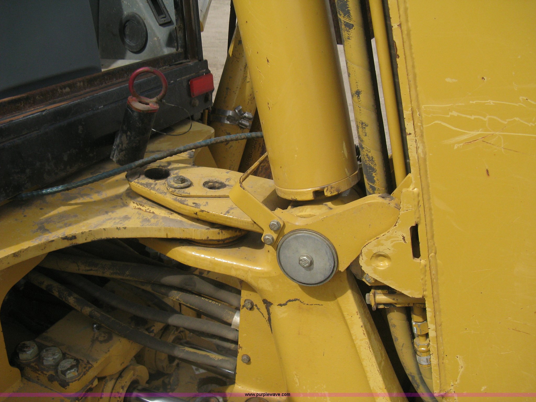 Purple Wave is selling a used Tractor Loader Backhoe in Kansas. This item is a 2002 Caterpillar 416D backhoe with the following: 7,222 hours on meter, Caterpillar diesel engine, Serial 7BJ56286, Four speed shuttle shift transmission, Four wheel drive, Enclosed cab, Heat, Tilt, Suspension seat, Weatherband radio, Joystick loader control, Outriggers, Street pads, Auxiliary hydraulics, Extend-a-hoe, 24"W pin-on backhoe bucket, (5) rock teeth, Welded flat ditch plate, 88"W loader bucket, Bolt-on cutting edge, Drain holes in bucket, Weld repairs, Hard serviced, Work lights, Front counter weights, Firestone 12.5/80-18 front tires, One recently replaced, Recently replaced Firestone 19.5L-24 rear tires, Service records available, One owner, Side and rear glass missing, Serial CAT0416DPBFP03214, Unit# 5363L