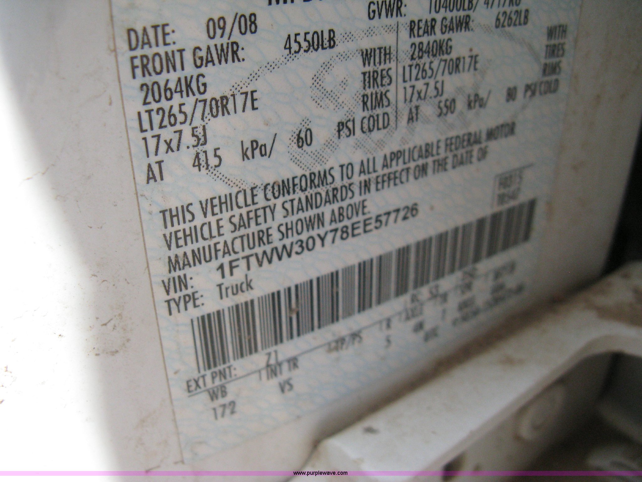 Purple Wave is selling a used 3/4 or 1 Ton Pickup or Van in Kansas. This item is a 2008 Ford F350 Super Duty XL Crew Cab pickup truck with the following: 104,967 miles on odometer, 6.8L V10 SOHC 30V gas engine, Automatic transmission, AC and heat, Tilt, Cruise, AM/FM/CD, Manual windows and locks, Vinyl interior, Factory trailer brake controller, Factory auxiliary switches, B&W turnover gooseneck ball, Long bed, Receiver hitch, Trailer wiring, LT245/75R17 tires, Interior/exterior cosmetic damage, Extensive driver's side lower doors and bed damage, Unit# 02.09K