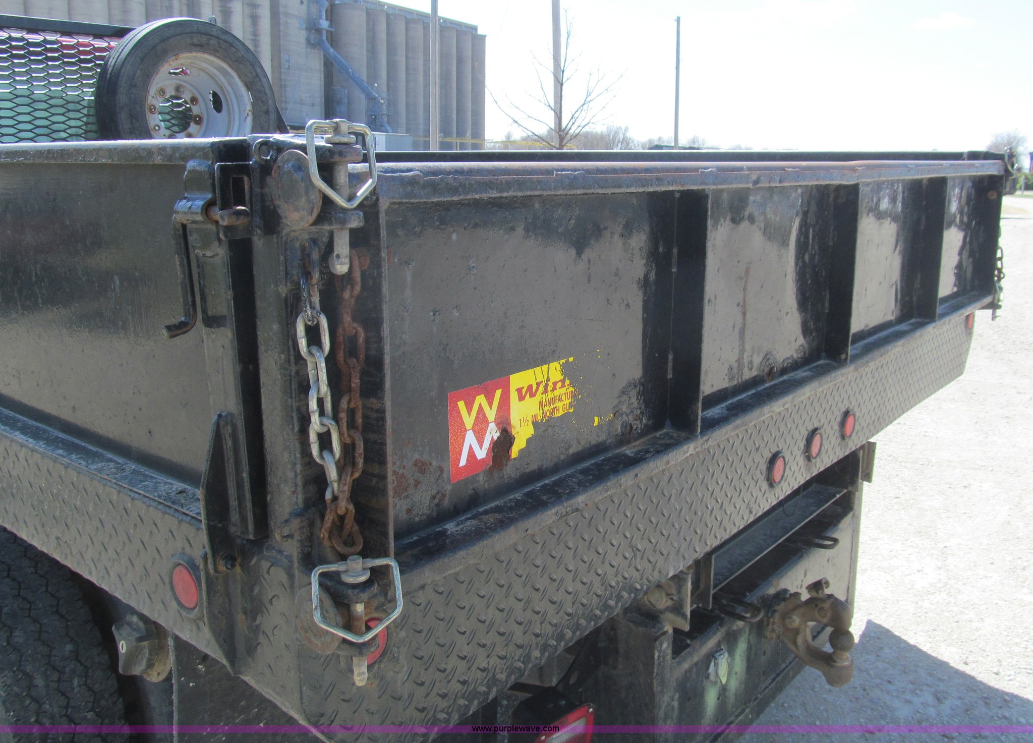 Purple Wave is selling a used Construction Dump Truck in Kansas. This item is a 2003 Ford F550 XLT dump bed truck with the following: 113,203 actual miles, 6.0L V8 OHV 32V turbo diesel engine, Six speed manual transmission, Four wheel drive, AC and heat, Tilt, Cruise, AM/FM/CD/cassette, Power windows and mirrors, Trailer brake controls, In-cab bed controls, Winkle 11"L x 8'W dump bed, 15"H sideboards, Manual operated end gate, Single ram hoist, Headache rack, Front tow hooks, Running boards, Amber light bar, PTO, Trailer wiring, Pintle hitch, Aluminum wheels, 165" wheelbase, 225/70R19.5 tires, GVWR 17,500 lbs, FAWR 6,000 lbs, RAWR 13,500 lbs