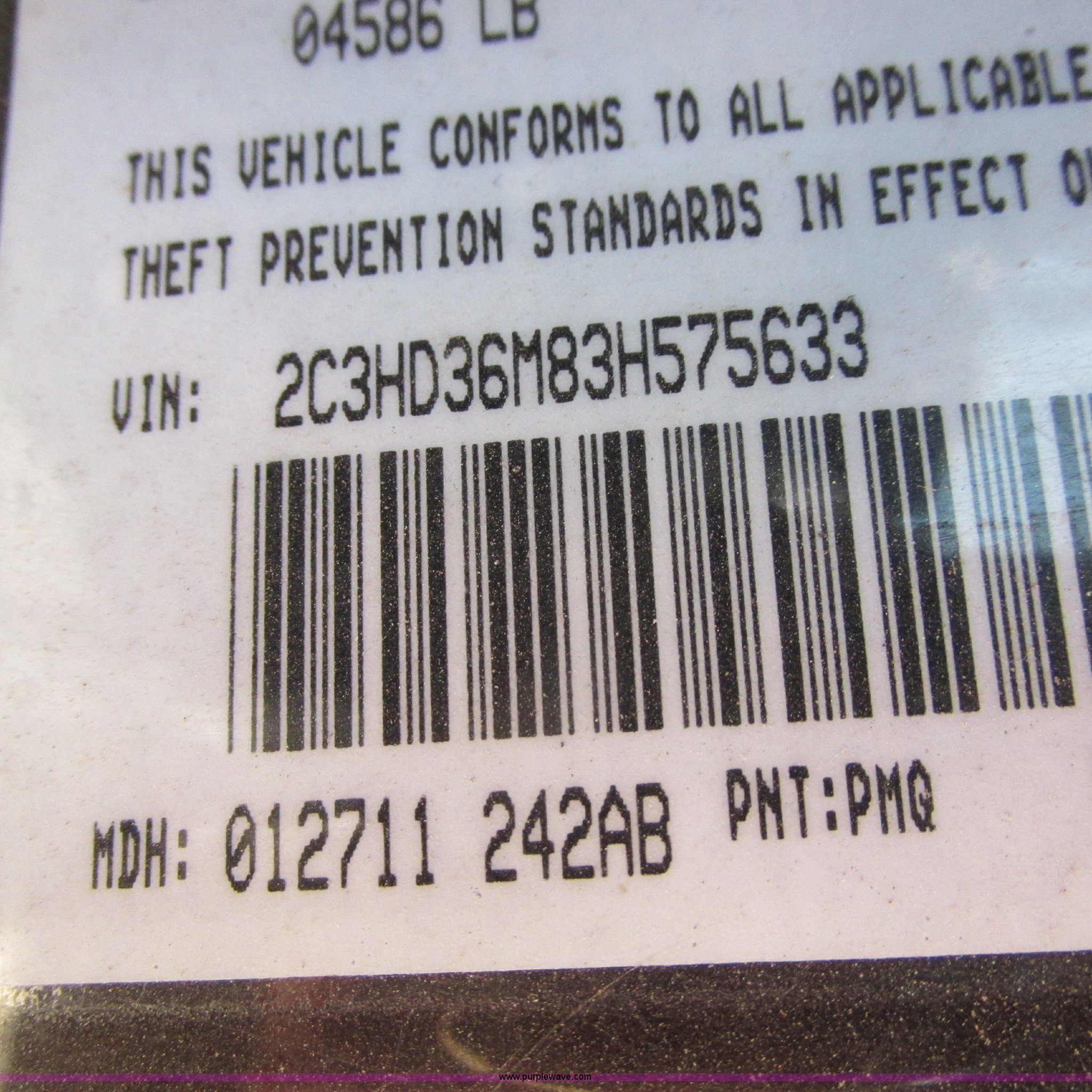 2003 Chrylser Concorde has sold in Wichita, Kansas for $1017.50. Item G8482 sold on April 29th, 2014.
