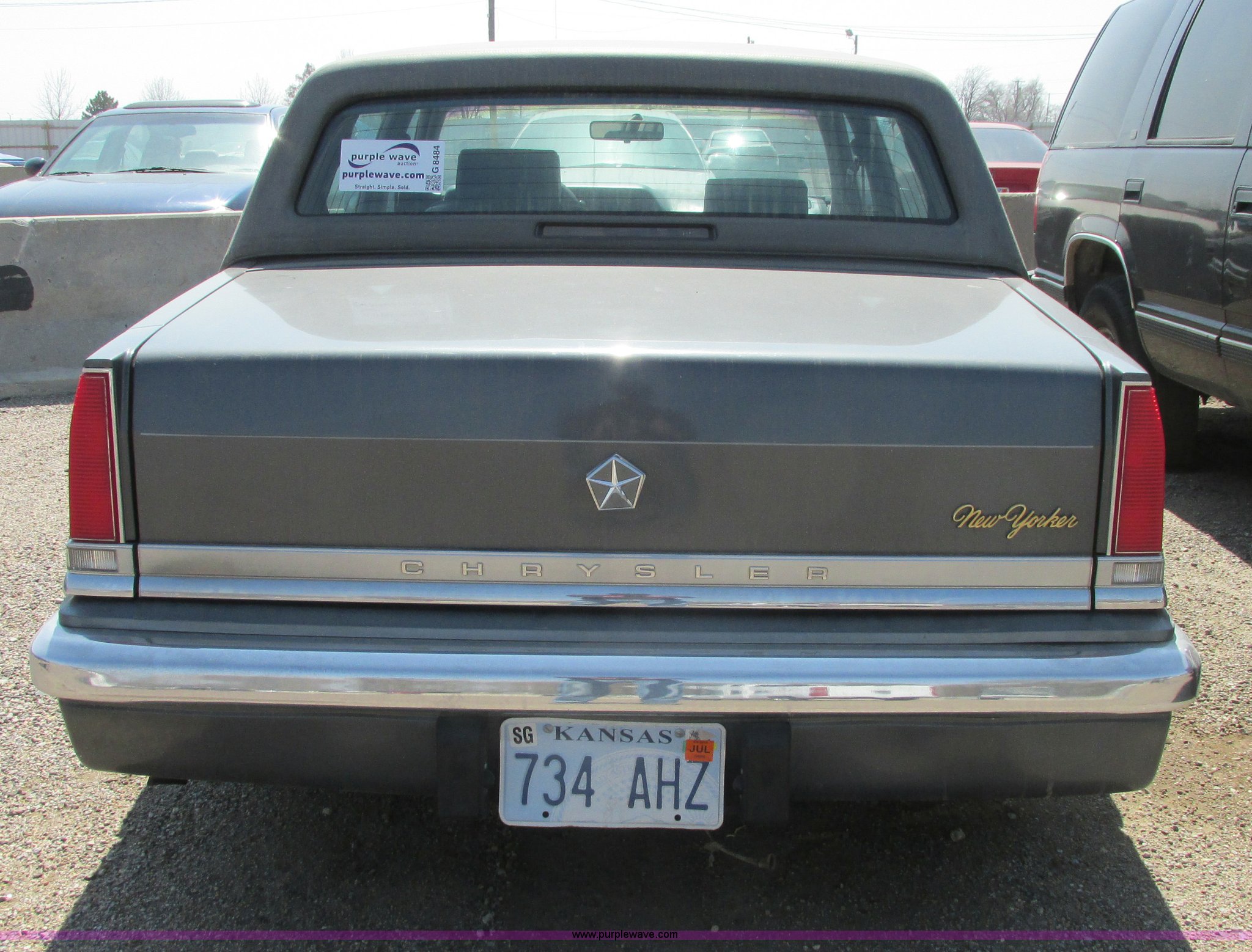 Purple Wave is selling a used Wrecked and Abandoned in Kansas. This item is a 1990 Chrylser New Yorker Fifth Avenue with the following: 144,043 miles on odometer, 3.3L V6 OHV 12V gas engine, Automatic transmission, Leather interior, P205/70R14 tires, Doors are locked, Exterior scratches and dents, Interior/exterior cosmetic damage, Case# 14C5884