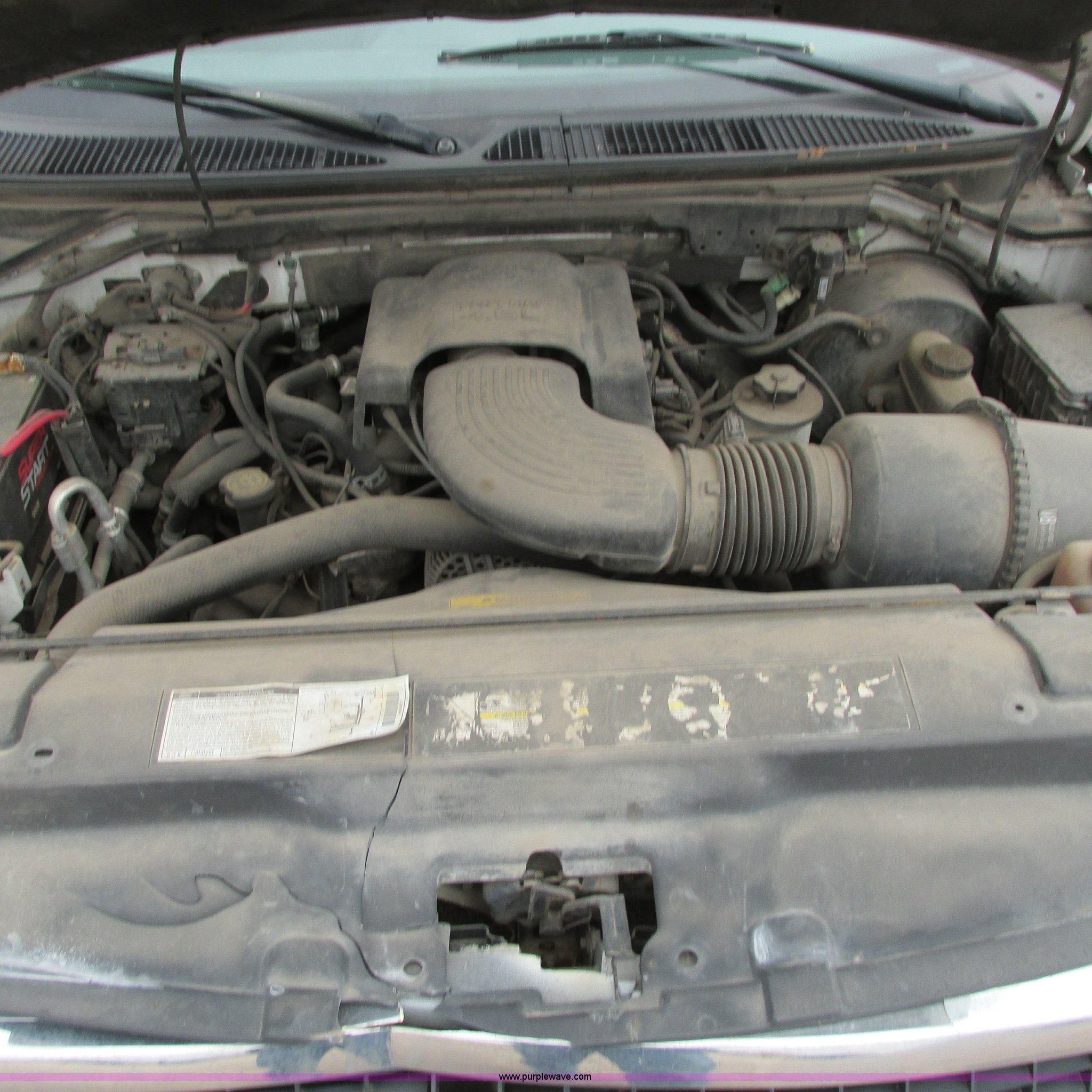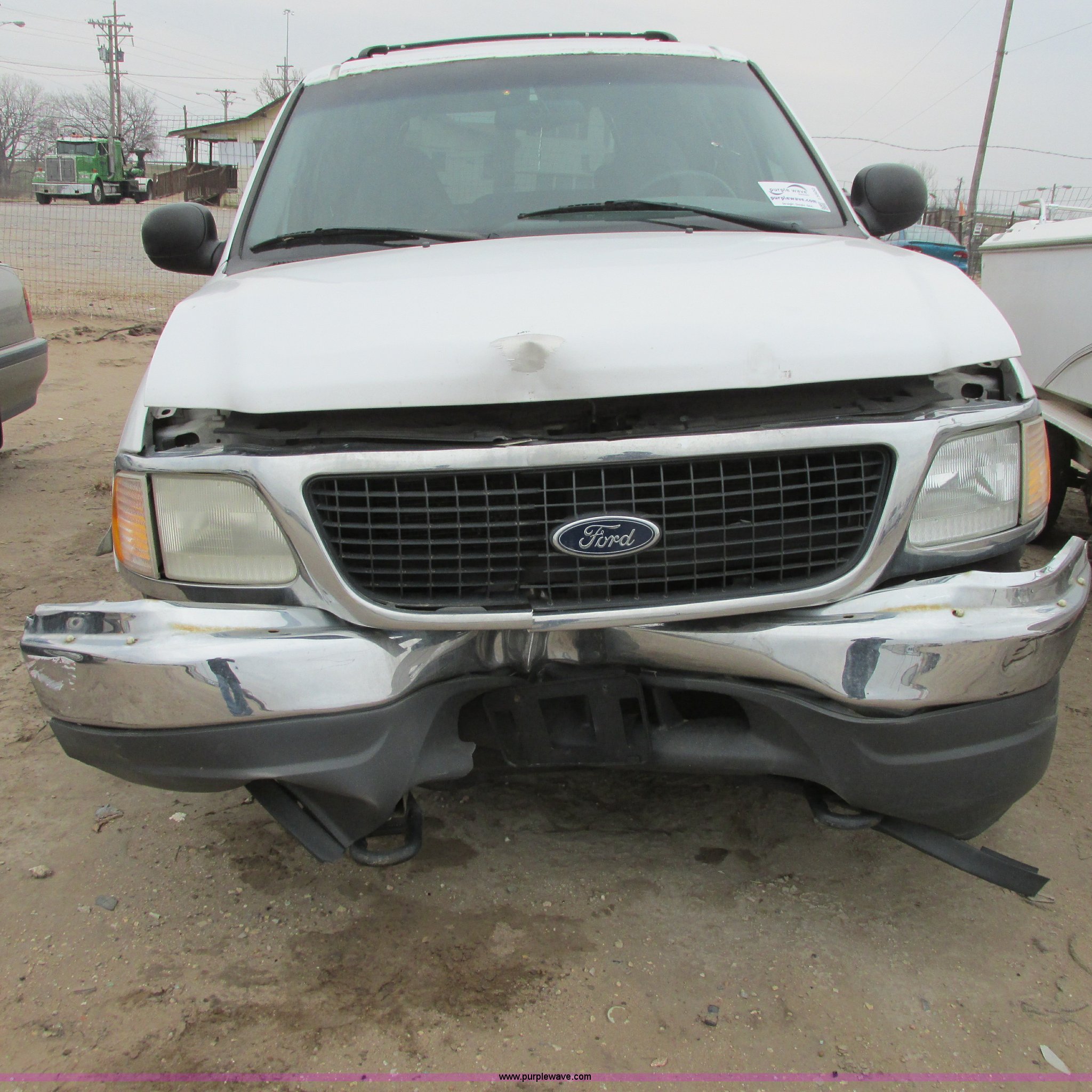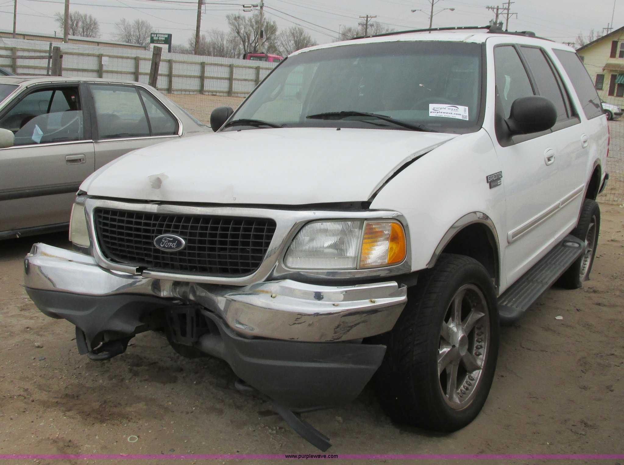 Purple Wave is selling a used Wrecked and Abandoned in Kansas. This item is a 2000 Ford Expedition XLT SUV with the following: Unknown miles on odometer, 4.6L V8 SOHC 16V gas engine, Automatic transmission, Four wheel drive, AC and heat, Tilt, Cruise, Power windows, locks, mirrors, and seats, Cloth interior, Keyless entry pad, Receiver hitch, P275/55R20 tires, (3) custom aluminum wheels, One wheel missing, Passenger rear glass missing, Interior/exterior cosmetic damage, Flat tires, Front end damage, Case# 14C7685