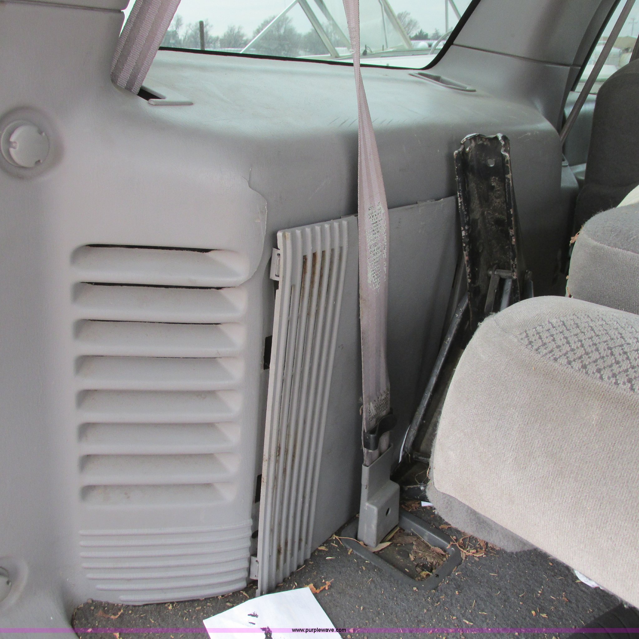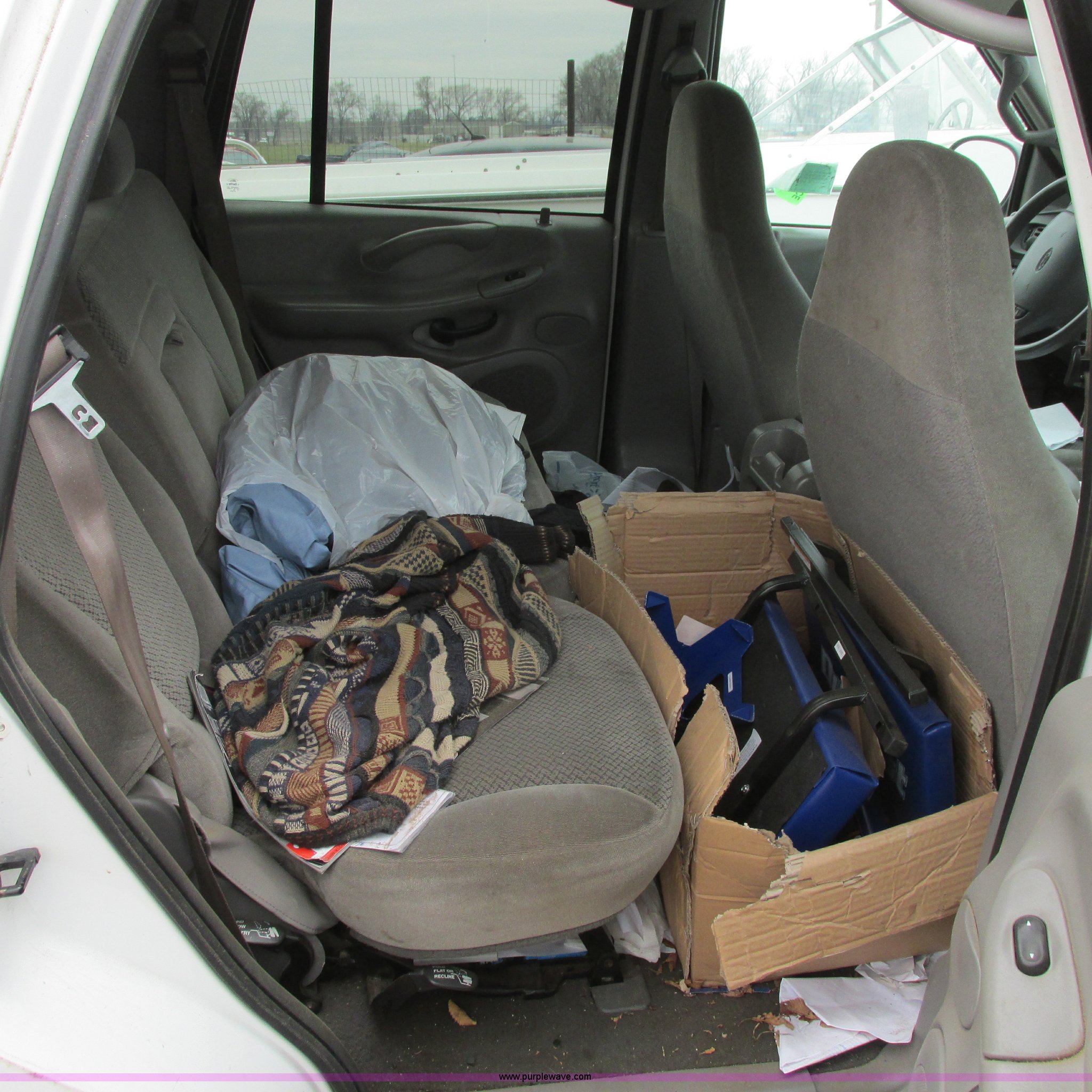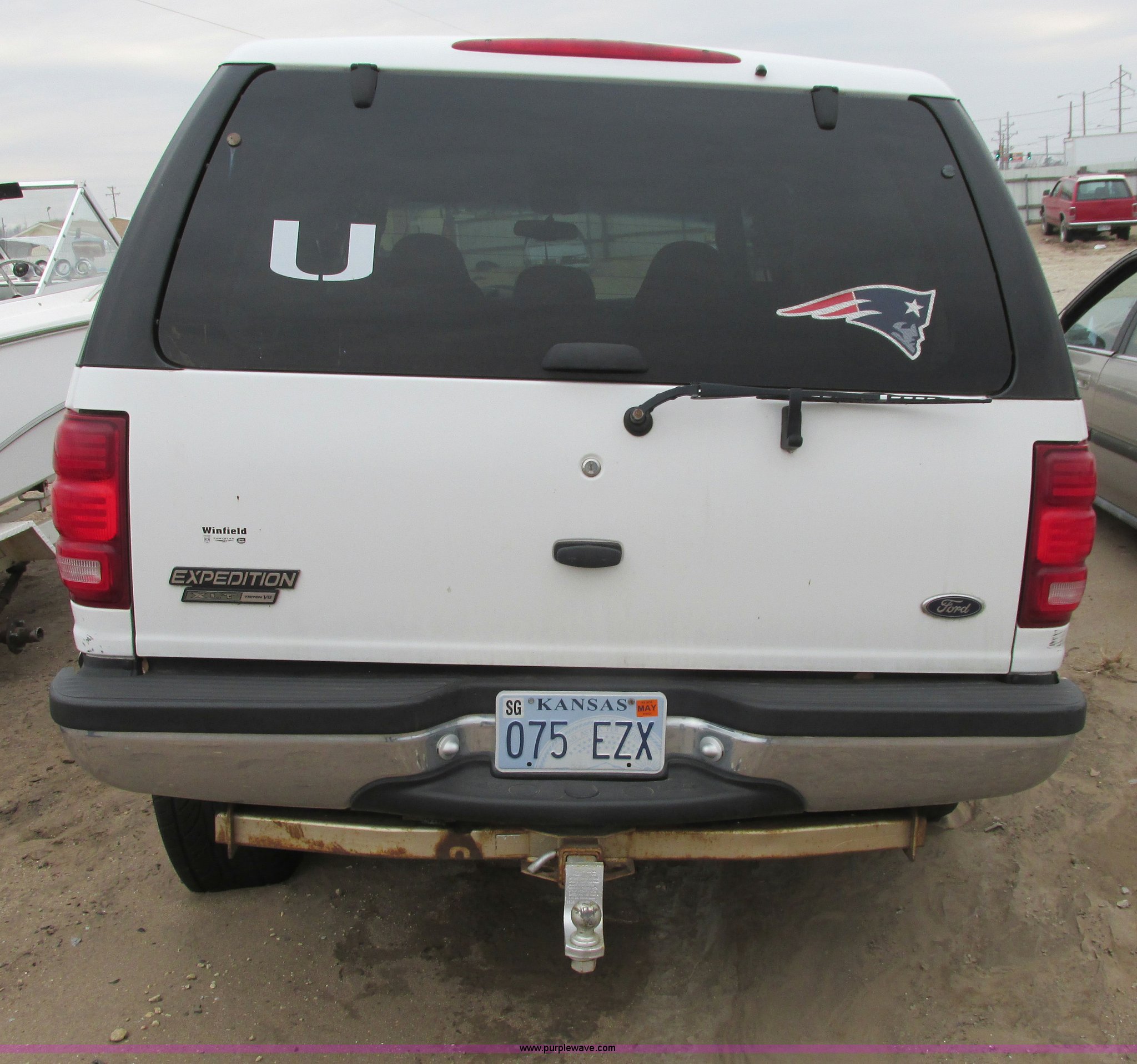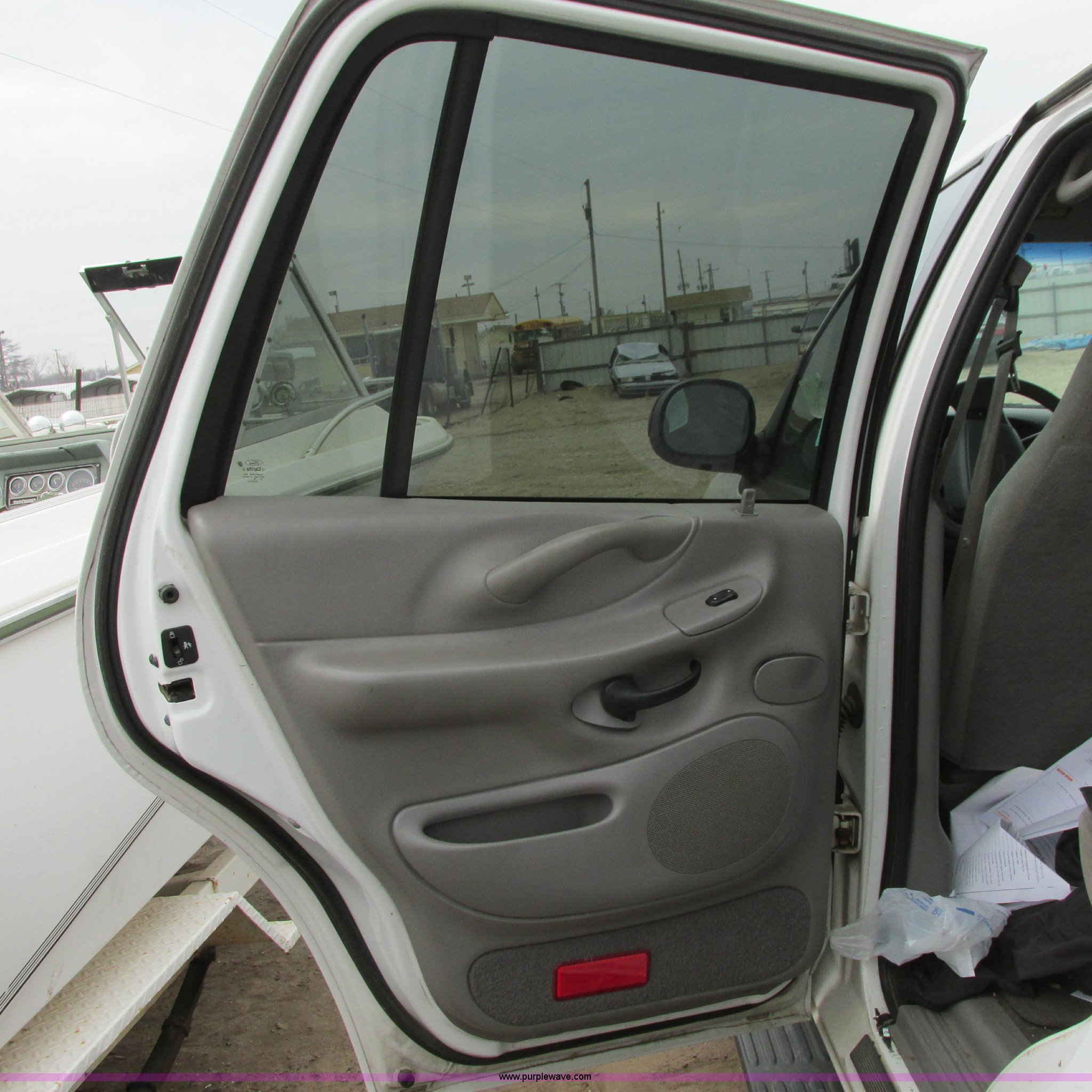 Purple Wave is selling a used Wrecked and Abandoned in Kansas. This item is a 2000 Ford Expedition XLT SUV with the following: Unknown miles on odometer, 4.6L V8 SOHC 16V gas engine, Automatic transmission, Four wheel drive, AC and heat, Tilt, Cruise, Power windows, locks, mirrors, and seats, Cloth interior, Keyless entry pad, Receiver hitch, P275/55R20 tires, (3) custom aluminum wheels, One wheel missing, Passenger rear glass missing, Interior/exterior cosmetic damage, Flat tires, Front end damage, Case# 14C7685