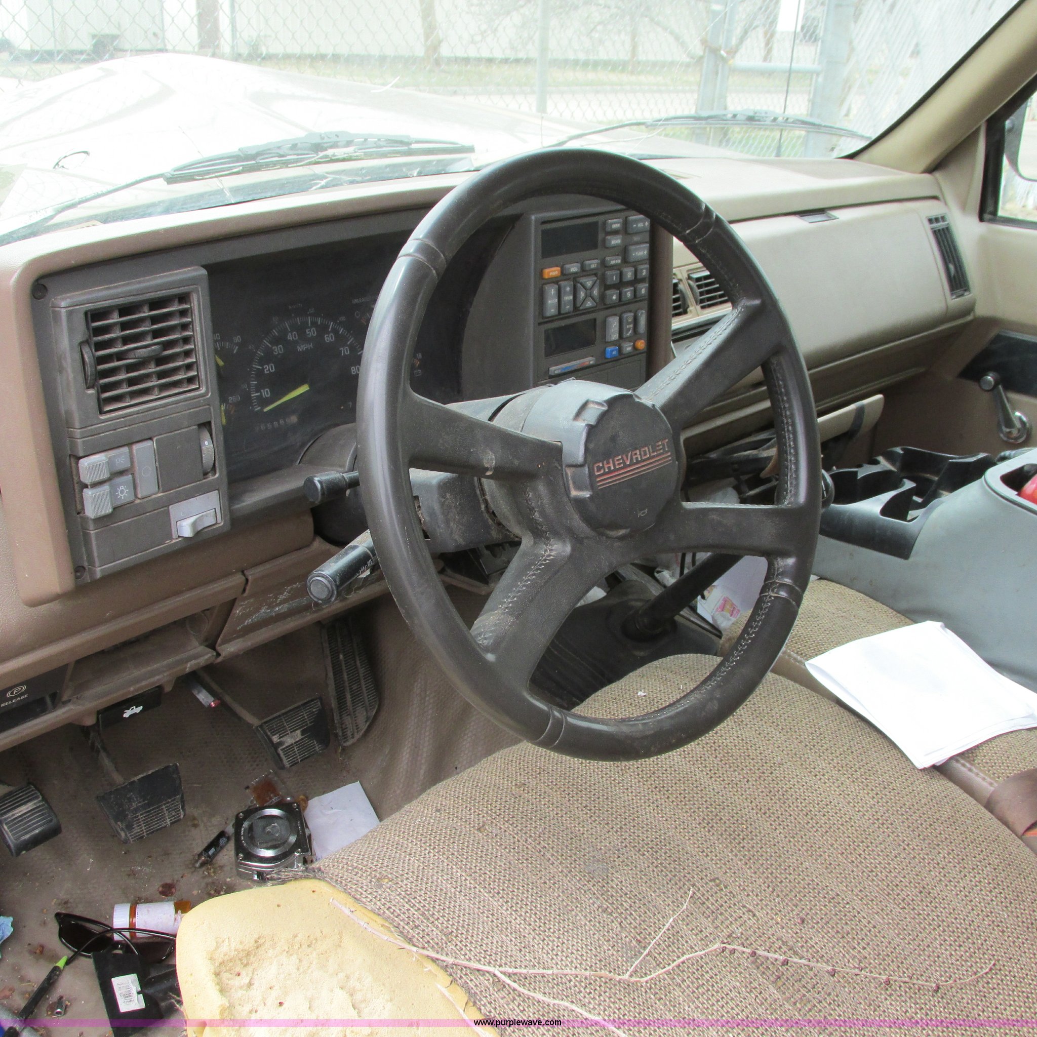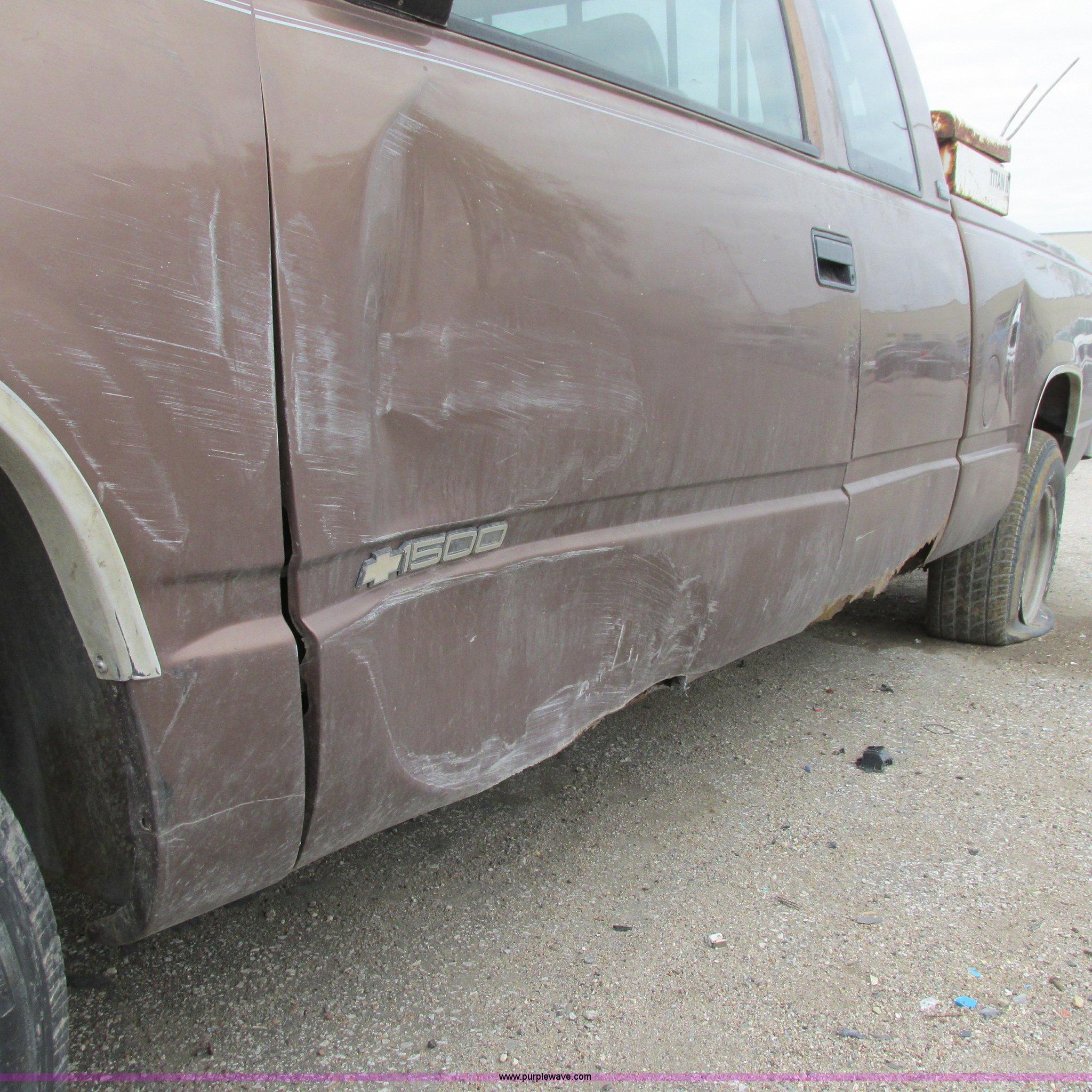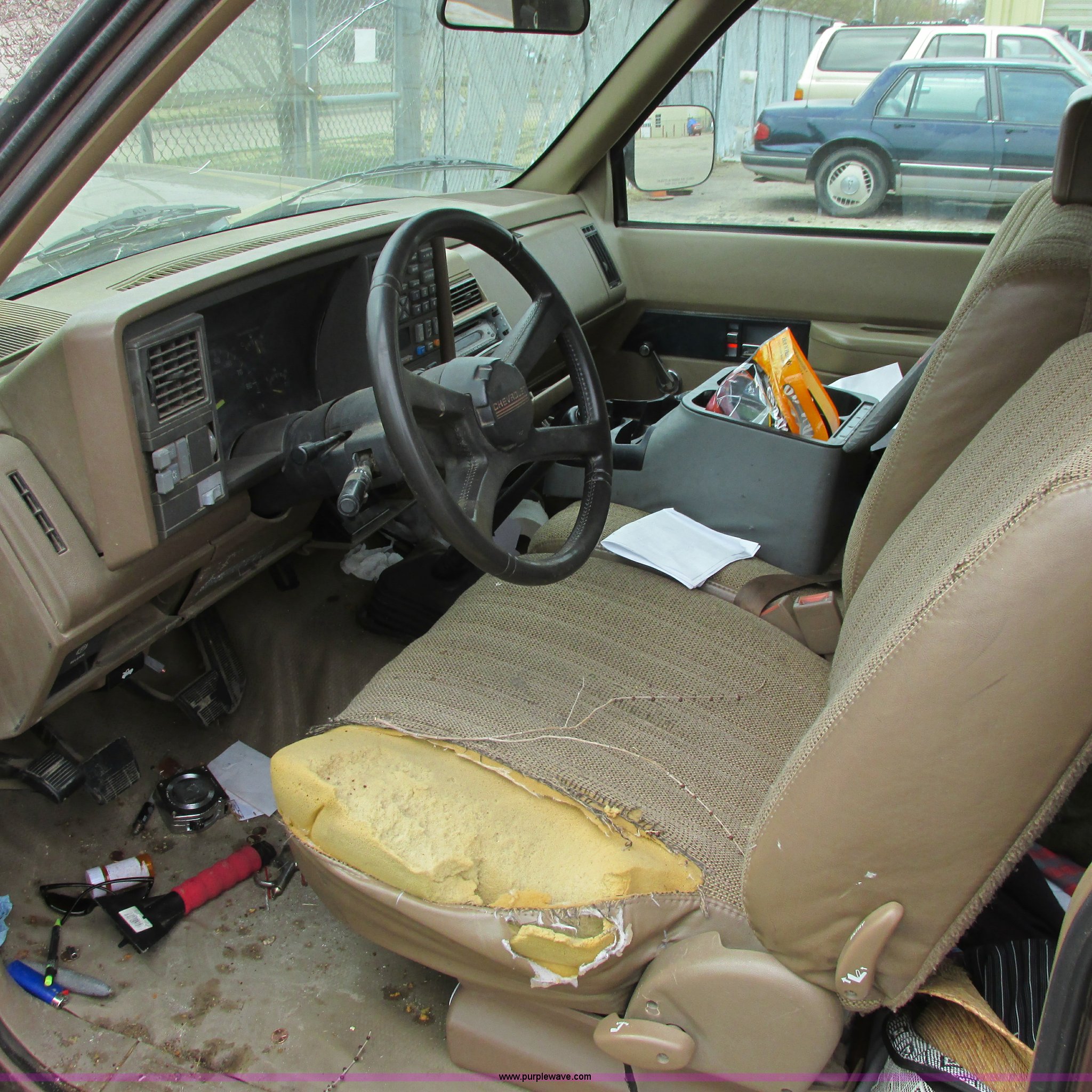Purple Wave is selling a used Wrecked and Abandoned in Kansas. This item is a 1994 Chevy 1500 Cheyenne with the following: 265,869 miles on odometer, 4.3L V6 OHV 12V gas engine, 5 speed manual transmission, AM/FM/CD, Trailer wiring, 255/70R15 tires, Keys included, Cracked windshield, Exterior rust damage, Front end damage, Rear end damage, Passenger rear tire and wheel damage, Interior damage, Exterior body damage, Interior/exterior cosmetic damage, Case# 14C009776