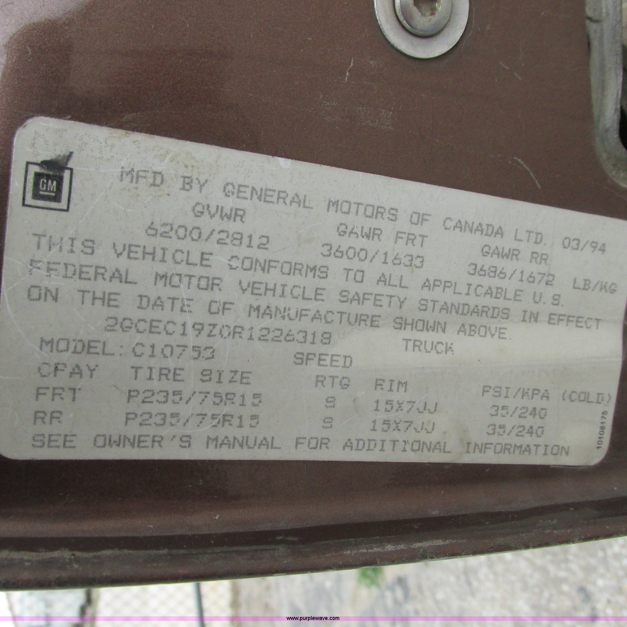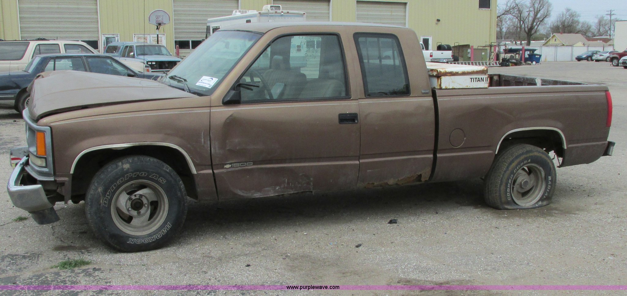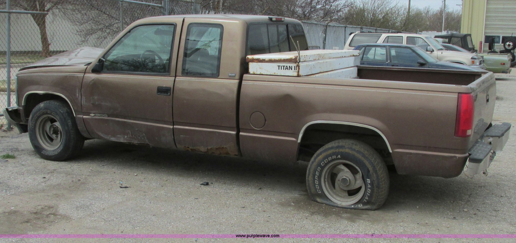 Purple Wave is selling a used Wrecked and Abandoned in Kansas. This item is a 1994 Chevy 1500 Cheyenne with the following: 265,869 miles on odometer, 4.3L V6 OHV 12V gas engine, 5 speed manual transmission, AM/FM/CD, Trailer wiring, 255/70R15 tires, Keys included, Cracked windshield, Exterior rust damage, Front end damage, Rear end damage, Passenger rear tire and wheel damage, Interior damage, Exterior body damage, Interior/exterior cosmetic damage, Case# 14C009776