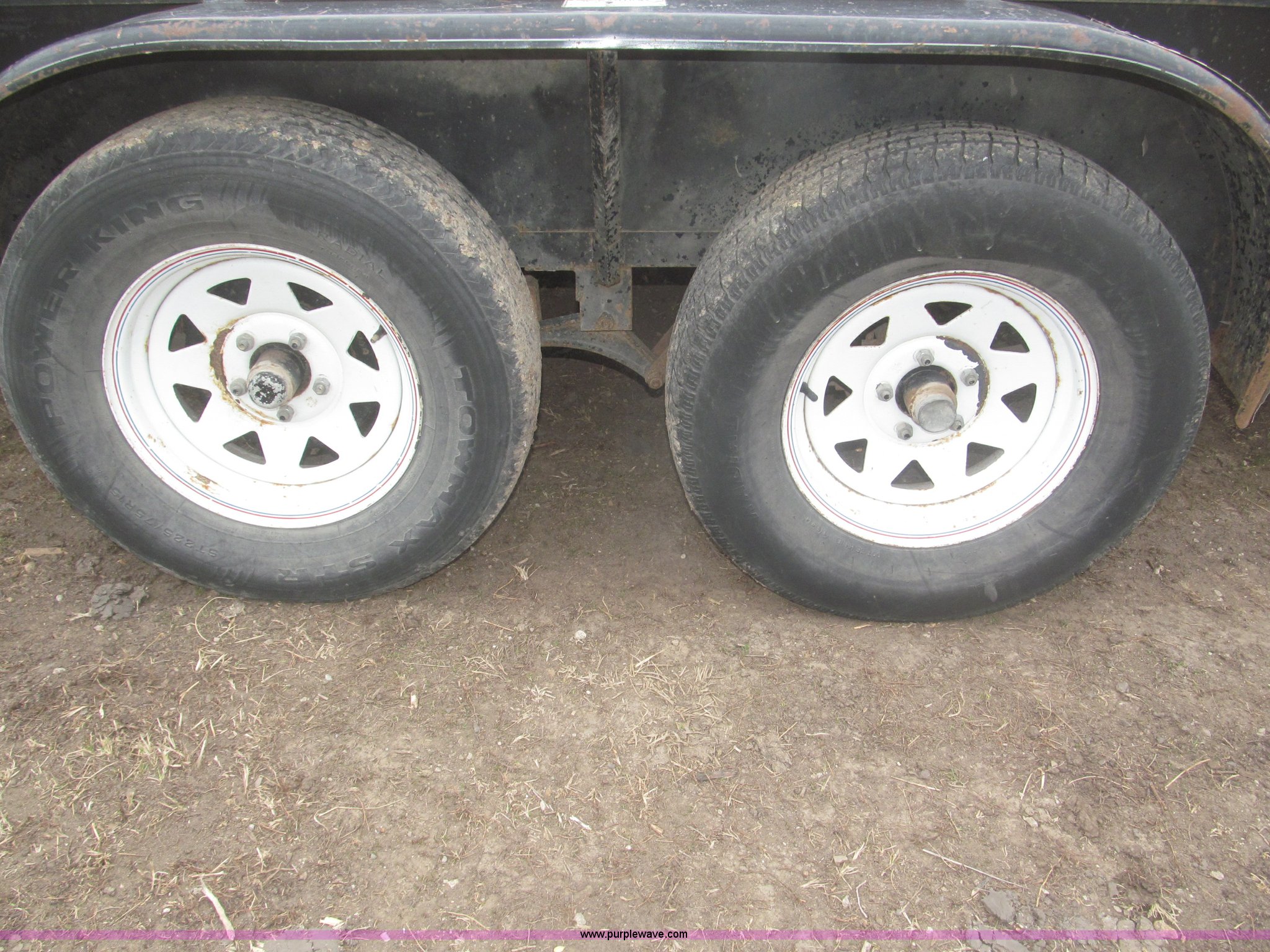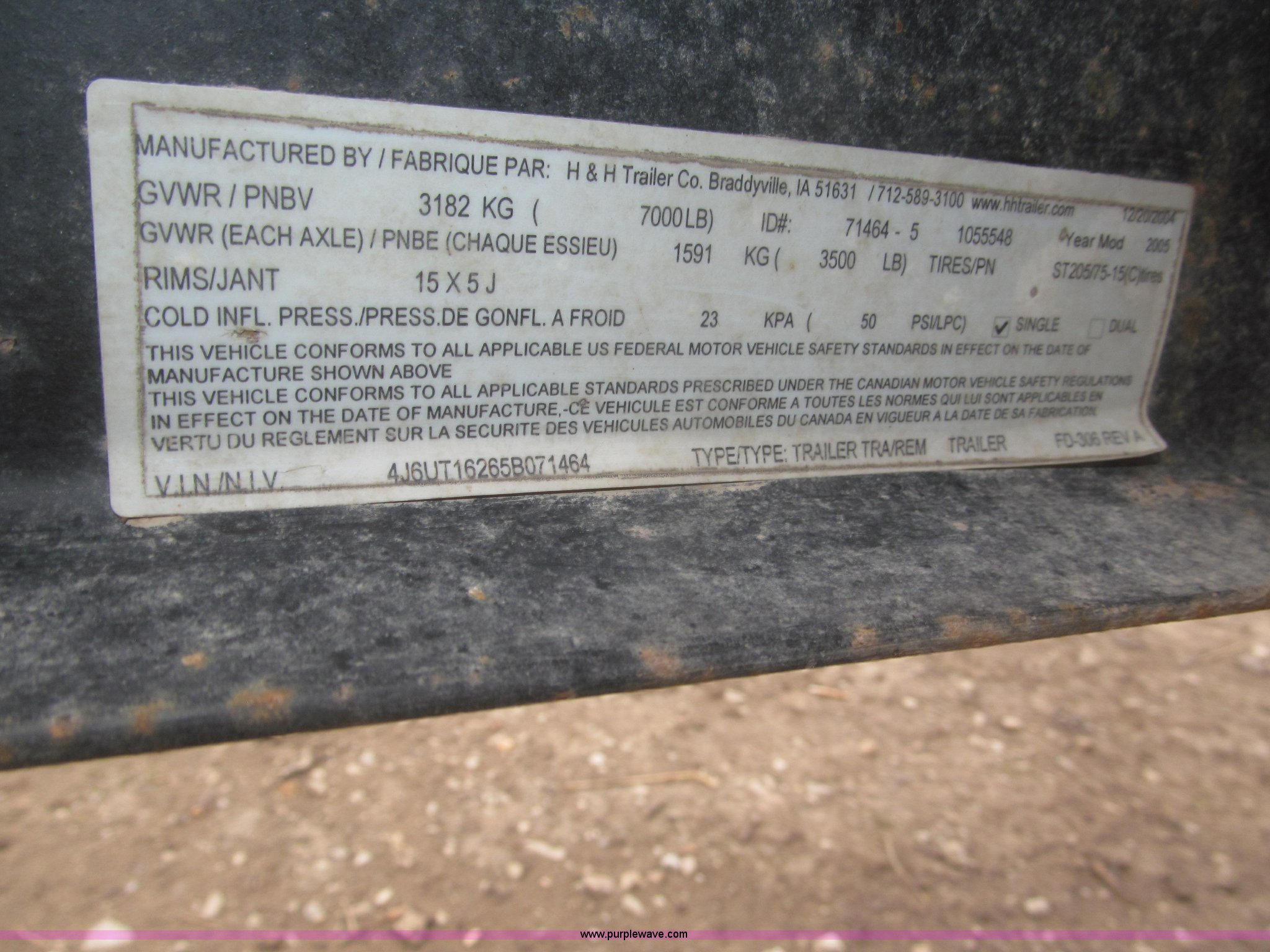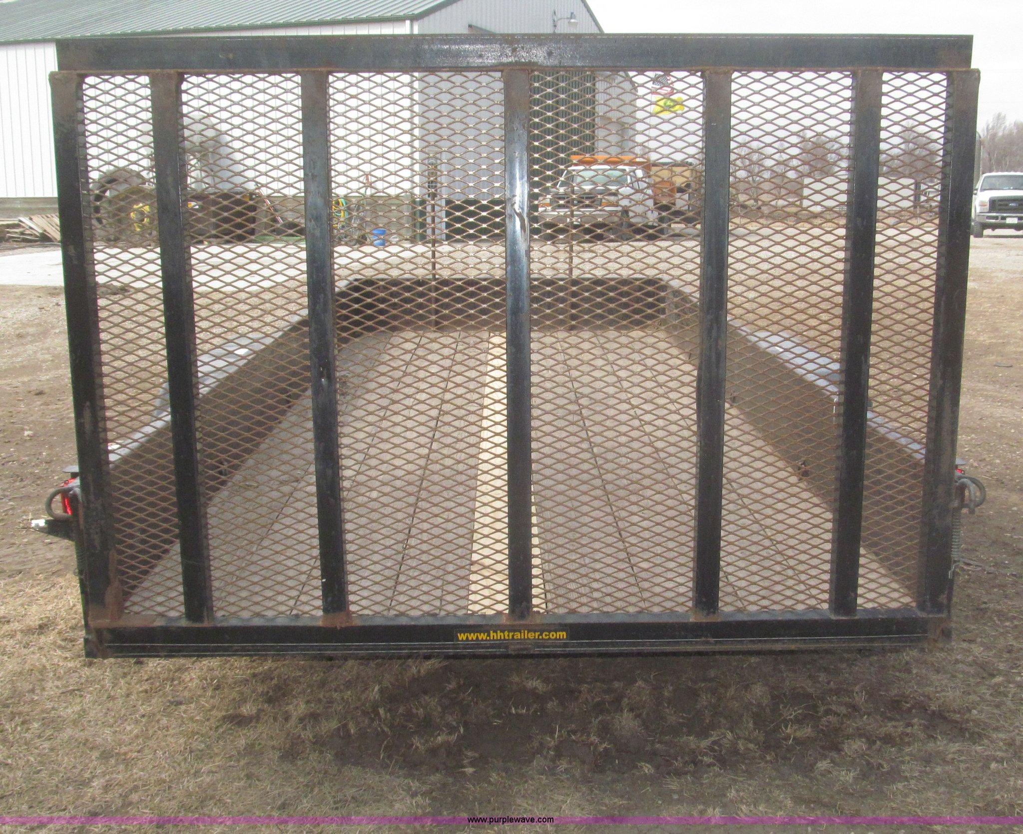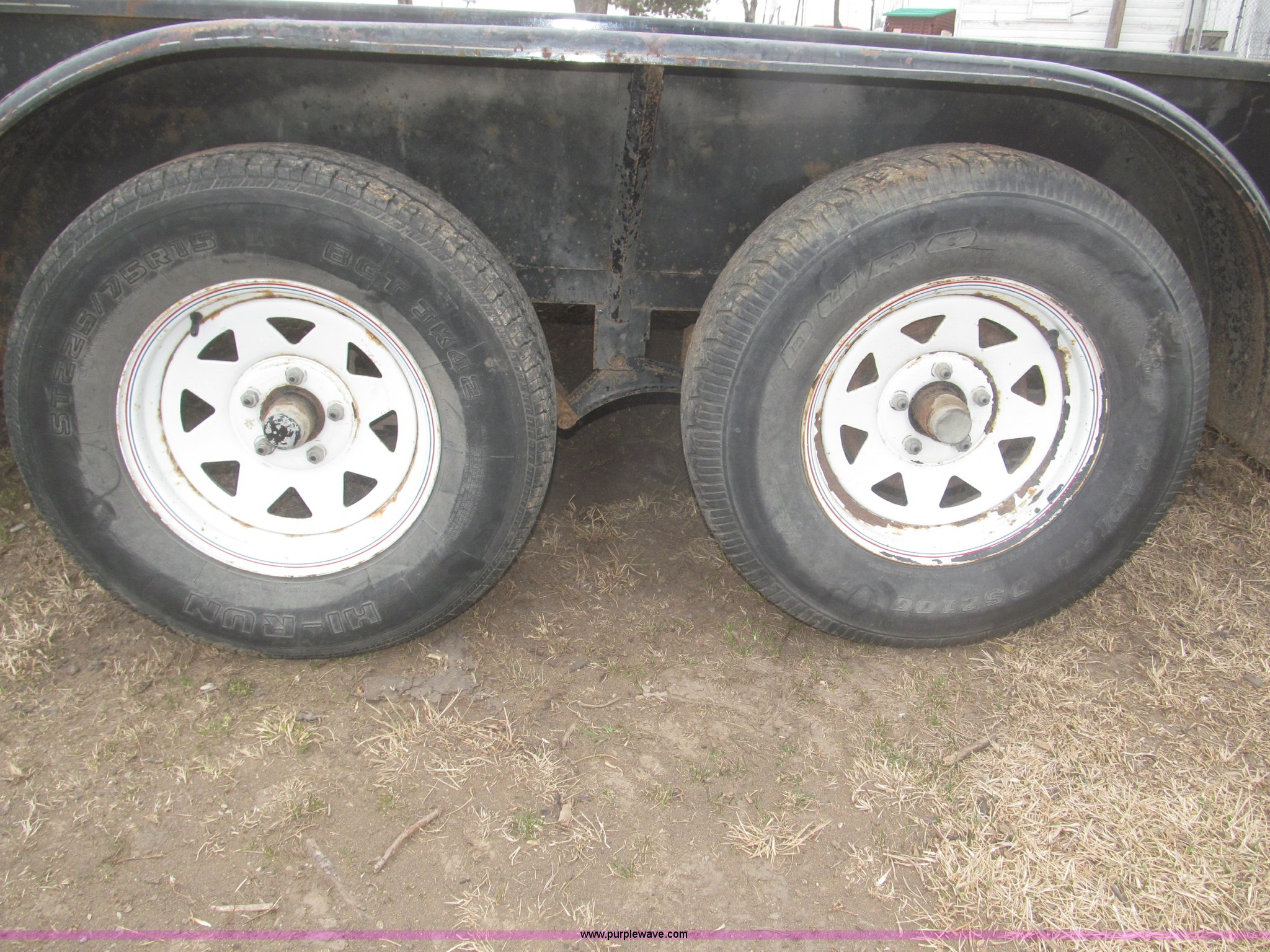 Purple Wave is selling a used Car or Utility Trailer in Nebraska. This item is a 2005 H&H tandem axle trailer with the following: 16'L, 194"L x 75.5"W I.D. deck, 13.5"H sideboards, Wood deck, 48"L x 74"W expanded metal fold down ramp, 36"L x 7/8" front vertical hex rods, Side mounted D-ring tie downs, Safety chains, Bulldog jack stand, 2 5/16" ball hitch, ST225/75R15 tires, GVWR 7,000 lbs, GAWR 3,500 lbs per axle