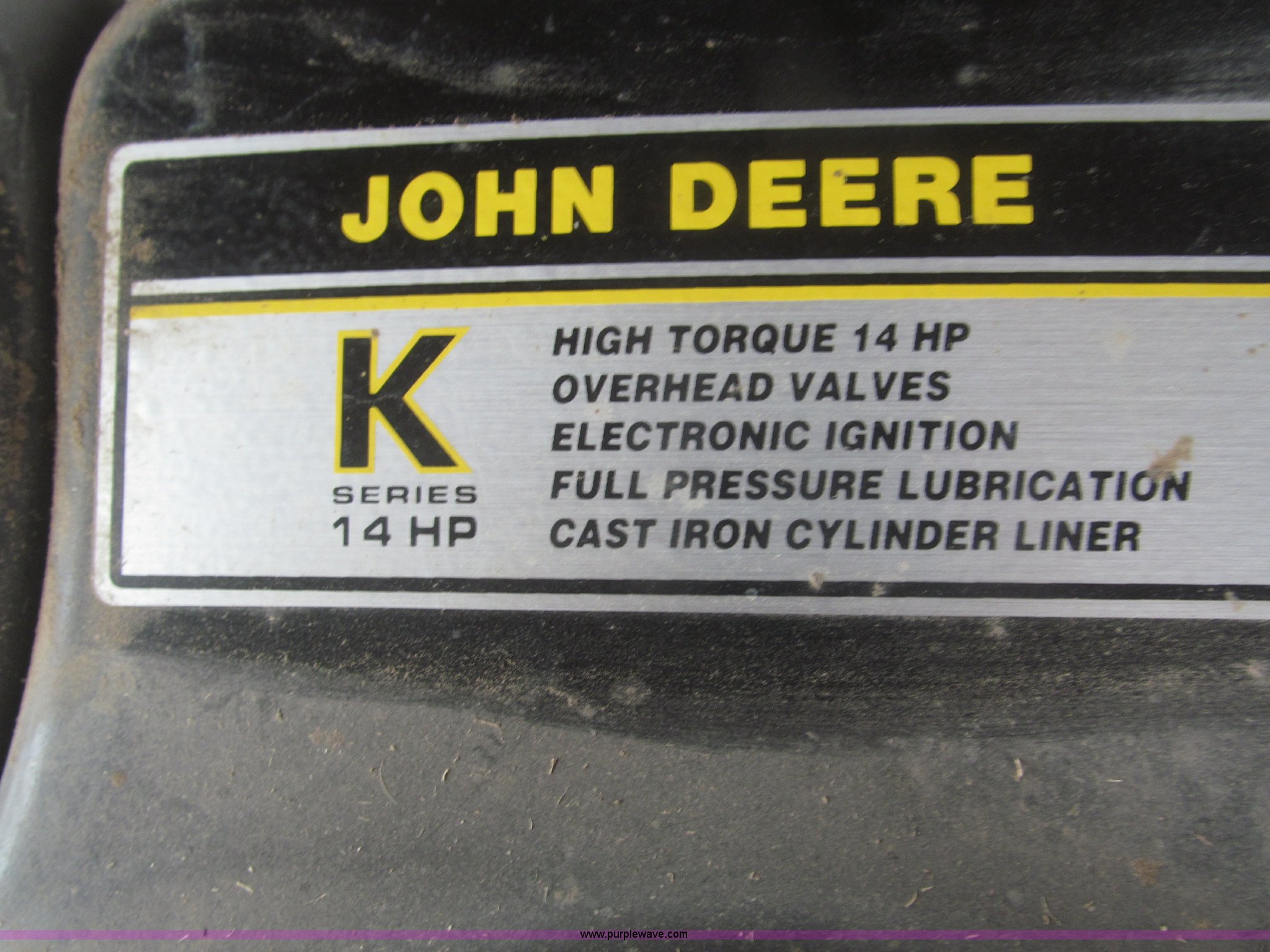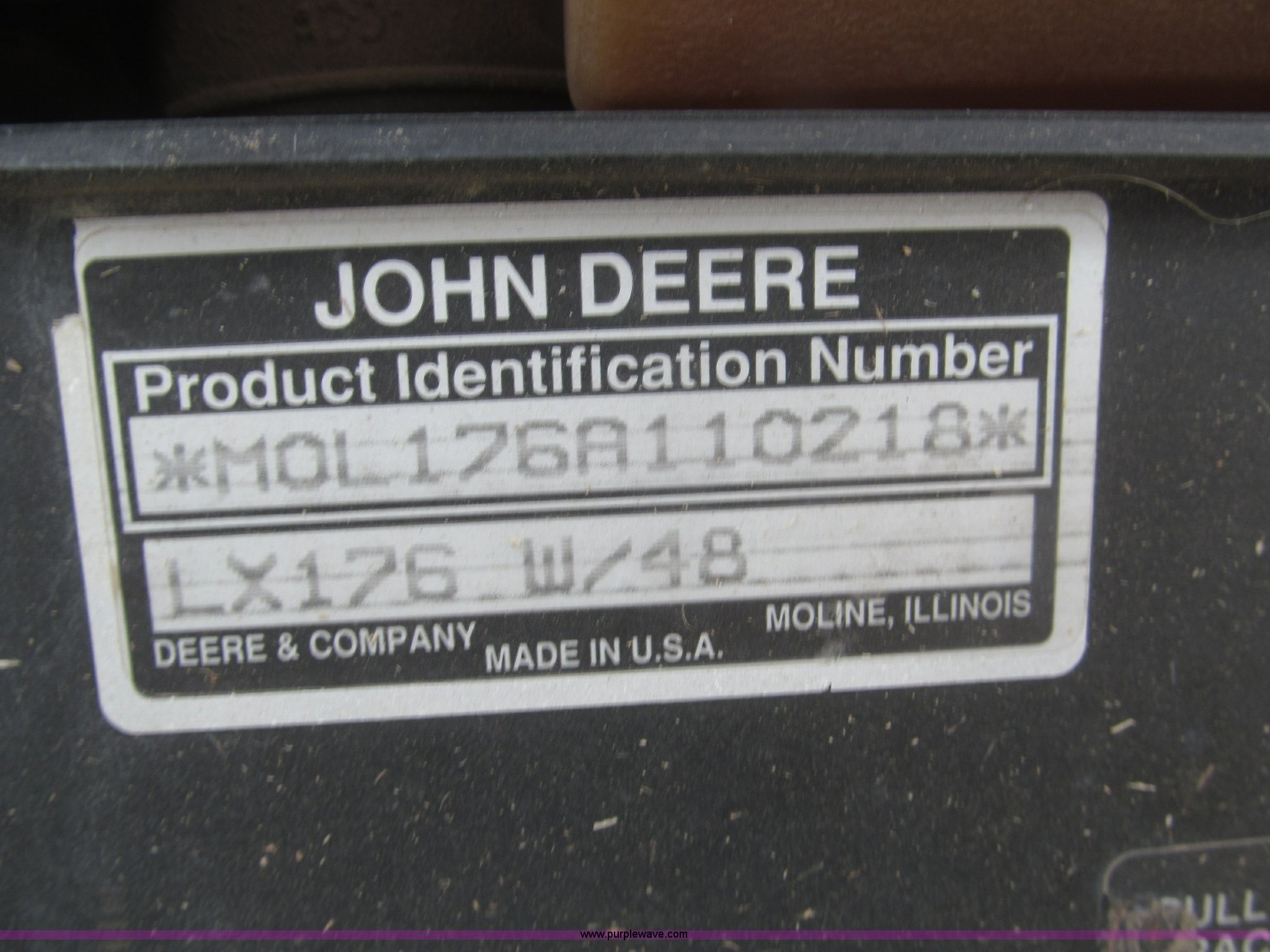 Purple Wave is selling a used Lawn Mower in Nebraska. This item is a John Deere LX176 riding lawn mower with the following: 48" cutting capacity, Kawasaki OHV gas engine, 14HP, Serial FC420VB35101, Three blade deck, Rear hitch, 15 x 6.00-6NHS front tires, 20 x 10.00-8 NHS rear tires, Right rear tire plugged, Hood broken, Seat torn, Serial M0L176A110218