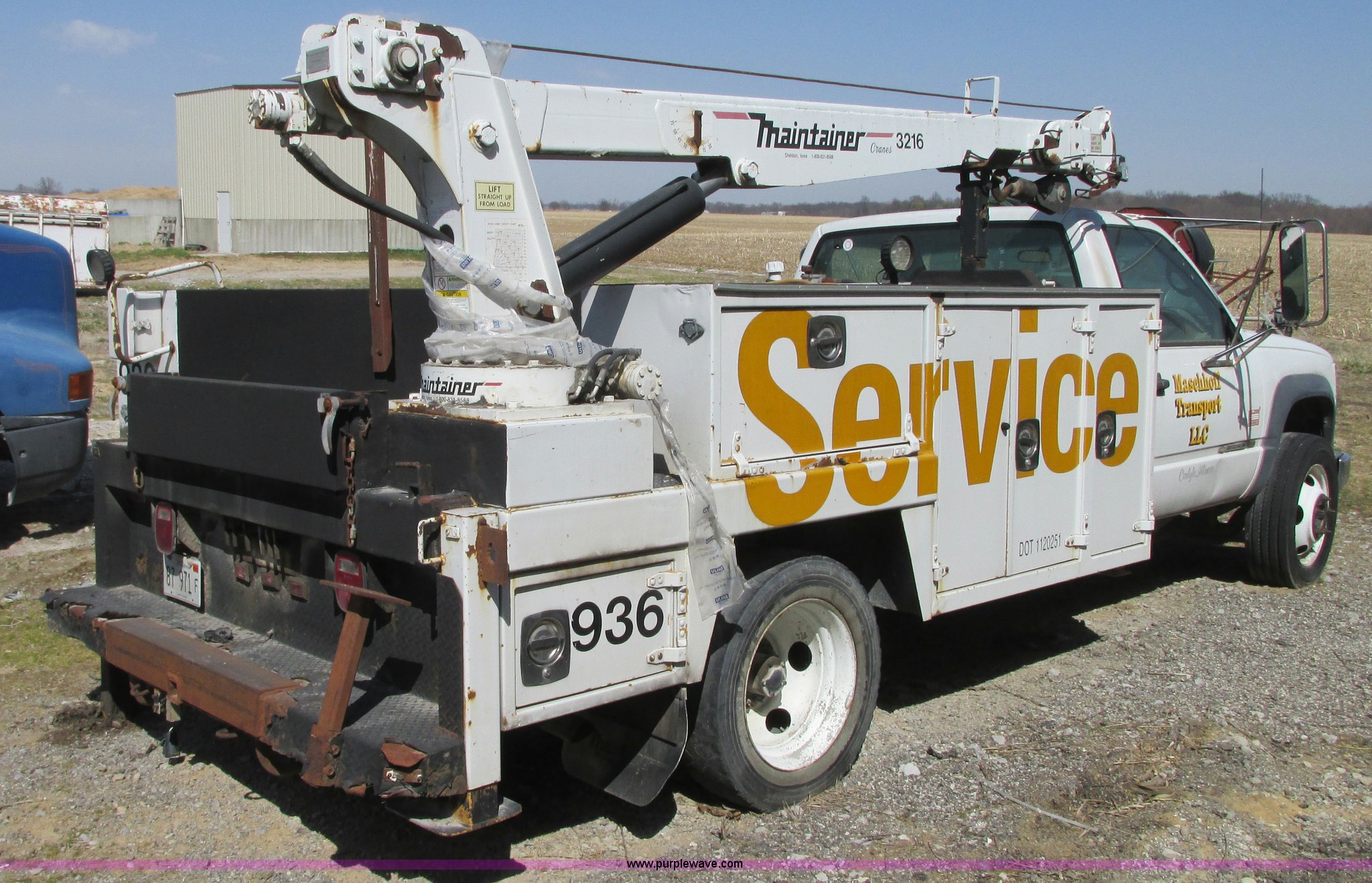 Purple Wave is selling a used Service Truck in Illinois. This item is a 1997 Chevrolet Cheyenne 3500HD service truck with the following: 201,280 miles on odometer, 6.5L V8 OHV 16V turbo diesel engine, Five speed manual transmission, AC and heat, AM/FM, Manual windows and locks, Vinyl interior, Maintainer 11' utility bed, 9'4" x 4' interior bed, (7) tool bins, Fuel and lube tank, Spray-in bed liner, Heavy duty step bumper, Maintainer 3216 crane, Serial 1508-0602-3216ST,, Receiver hitch, Trailer wiring, 225/70R19.5 tires, Interior/exterior cosmetic damage, Front end grill damaged, Unknown issue with fuel delivery system, Will not start