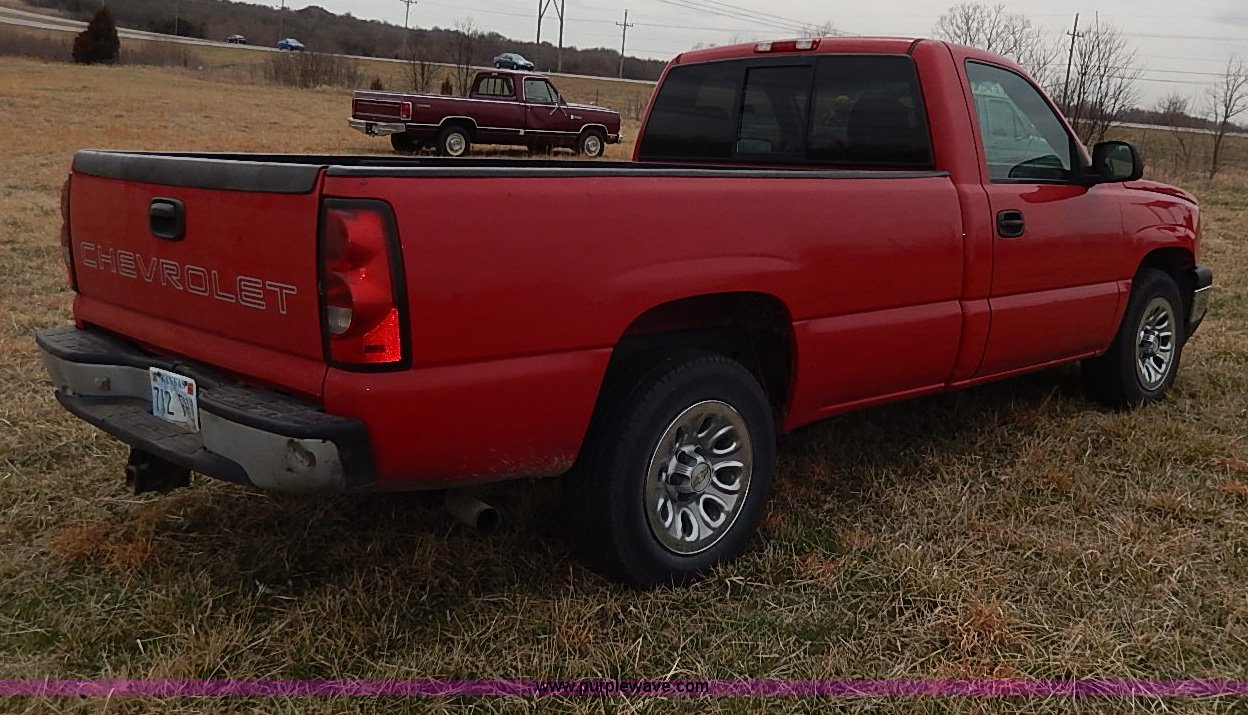 Purple Wave is selling a used 1/2 Ton Pickup or Van in Kansas. This item is a 2006 Chevrolet Silverado 1500 pickup truck with the following: 183,157 miles on odometer, 4.8L V8 OHV 16V gas engine, Automatic transmission, 50,000 miles on replaced transmission, AC and heat, Cruise, AM/FM, Manual windows and locks, Cloth interior, Sliding rear window, Long bed, Bed liner, Front tow hooks, Receiver hitch, Trailer wiring, 245/70R17 tires, Dents and scratches, Paint chipping, Chipped windshield