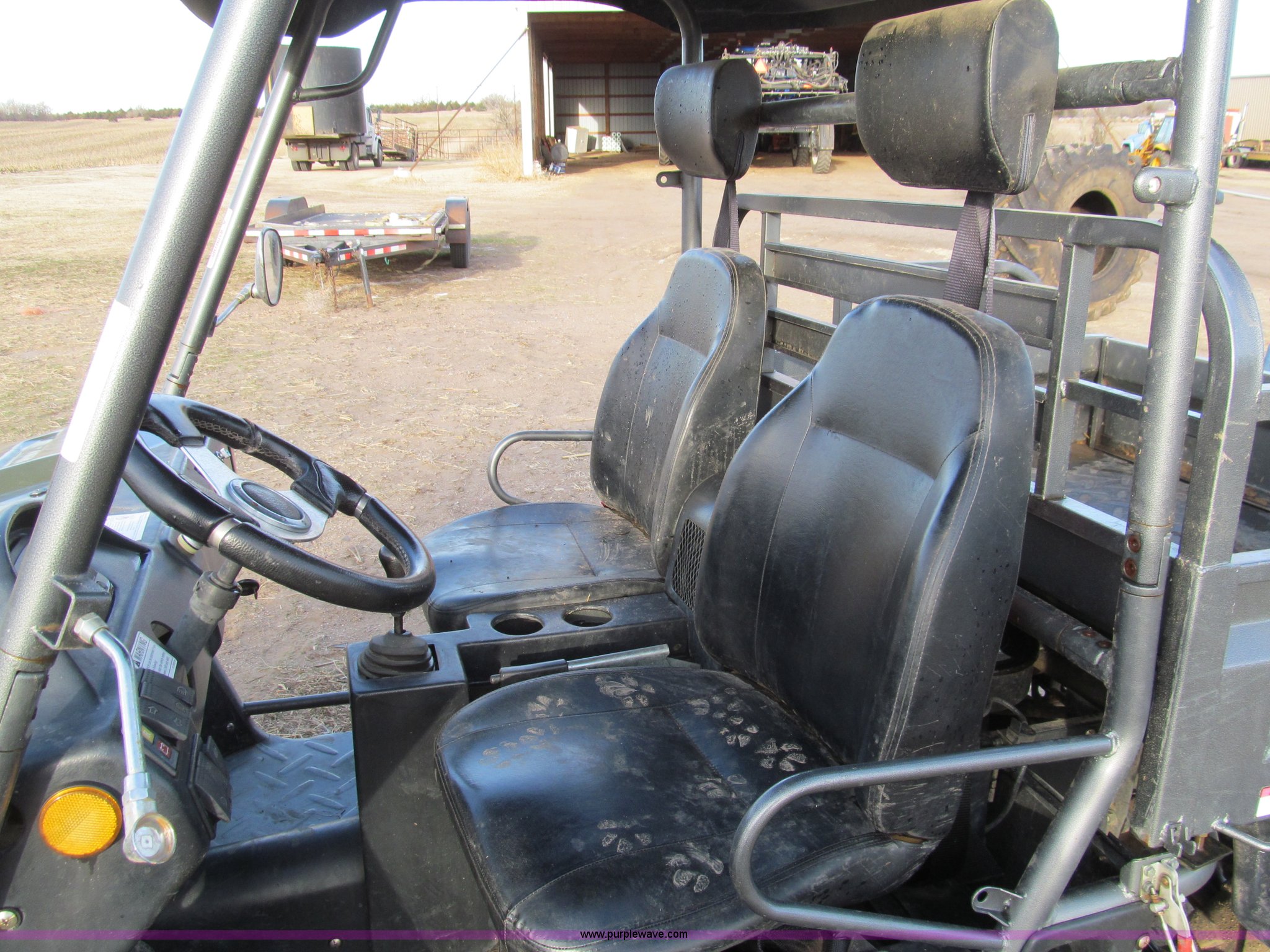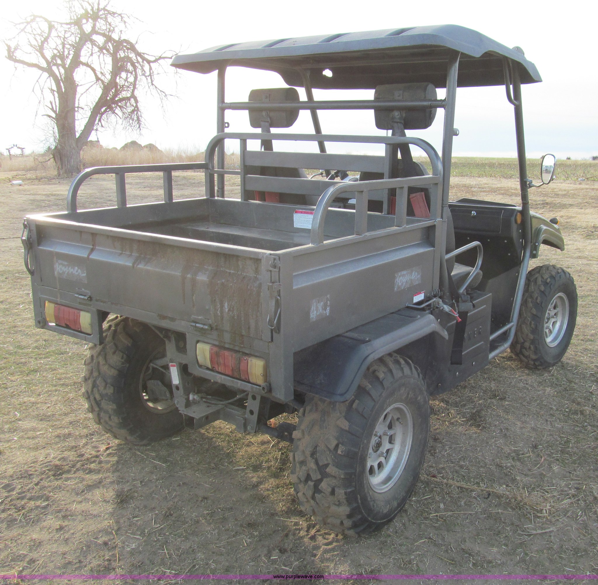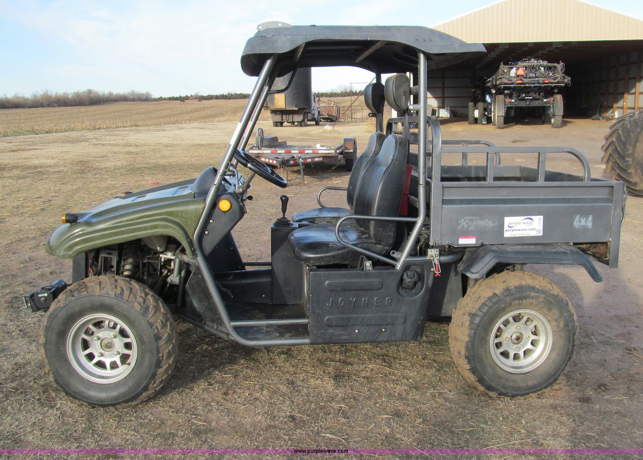 Purple Wave is selling a used Utility Vehicle in Kansas. This item is a 2008 Joyner JNSZ650UV utility vehicle with the following: 2,173 miles on odometer, Two cylinder gas engine, 26 HP, Four speed manual transmission, Four wheel drive, ATV3500 electric winch, Roll cage, 40"L x 55"W bed, Manual tilt, Pin hitch, 27 x 8-12 tires, Non-operational brake lights