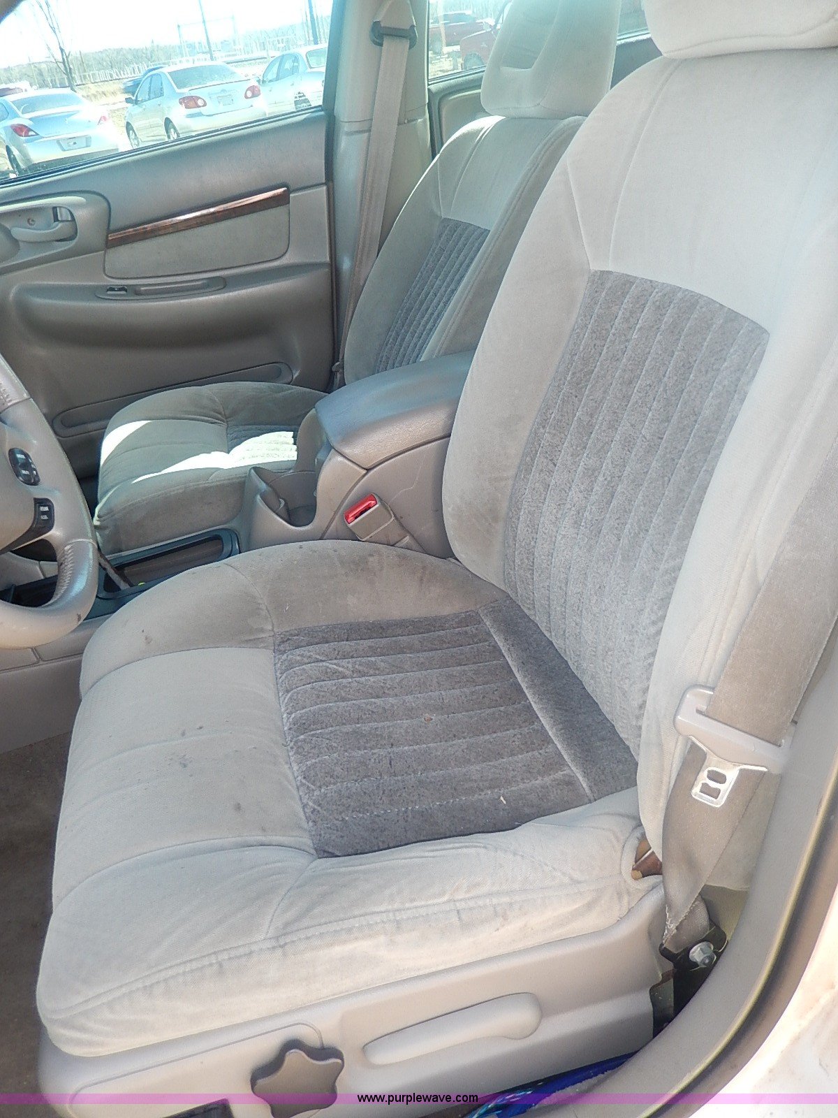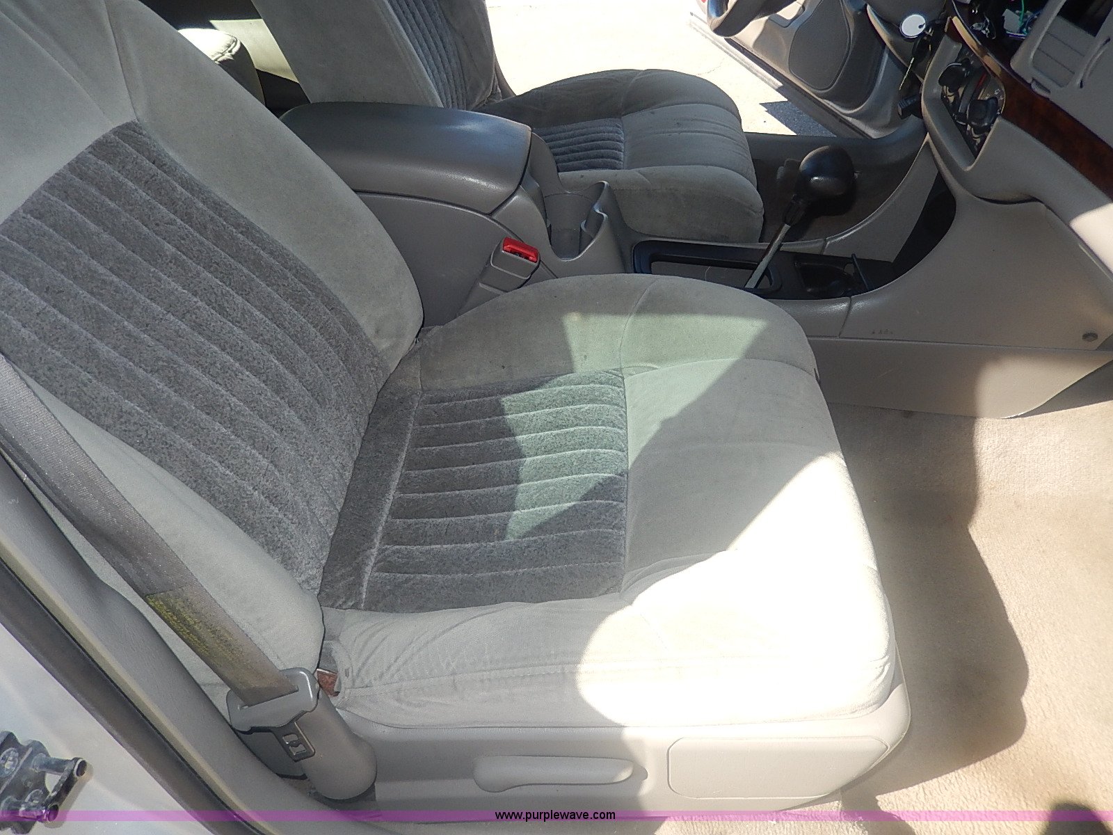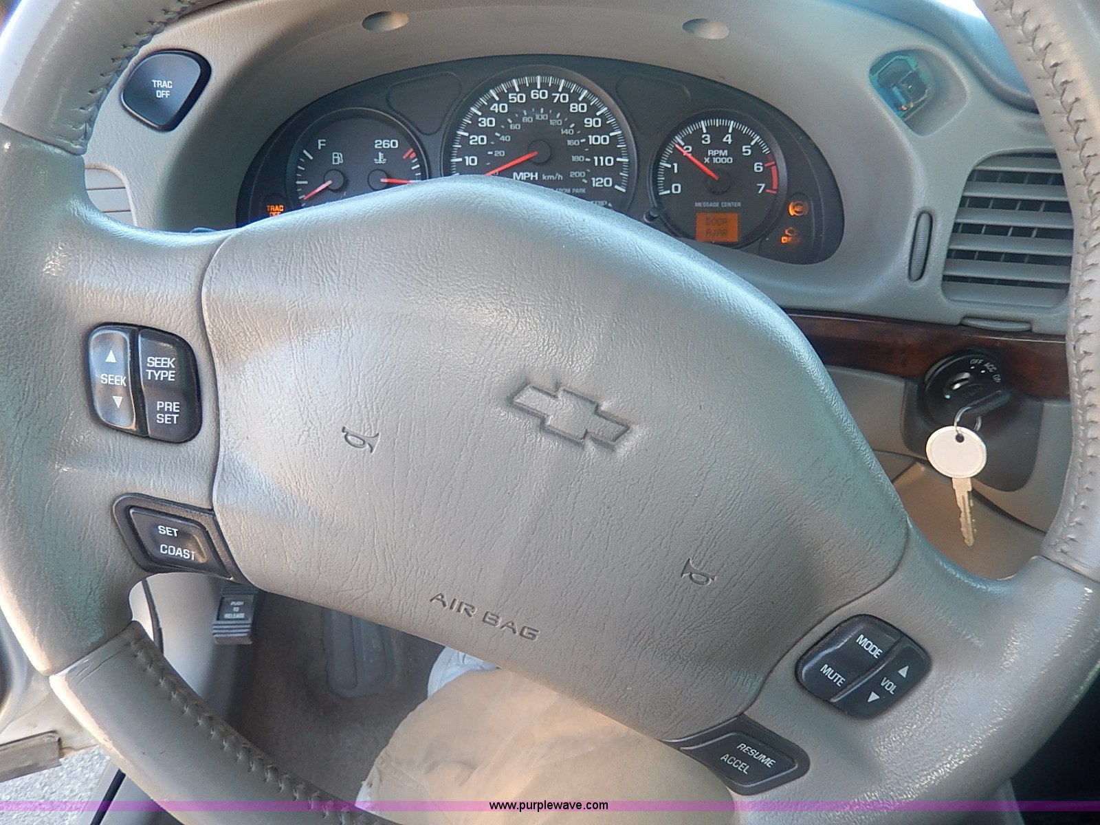 Purple Wave is selling a used Passenger Vehicle in Kansas. This item is a 2000 Chevrolet Impala LS with the following: 174,719 miles on odometer, 3.8L V6 OHV 12V gas engine, Automatic transmission, AC and heat, Tilt, Cruise, Power windows, locks, mirrors, and seats, Cloth interior, Steering wheel radio controls, Temperature and direction in rear view mirror, Joe Martin wheels, 245/30ZR22 tires, Trunk cosmetic damage, Front tire has cut in sidewall, Check engine light is on, ABS light is on, Radio missing
