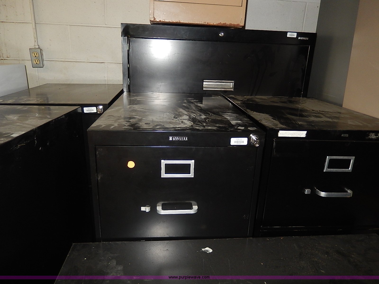 Purple Wave is selling a used Office Supplies and Equip. in Kansas. This item is a Assorted storage and filing cabinets with the following: (2) storage, 3' x 18" x 78", (7) filing, (5) four drawer, Three drawer, Two drawer