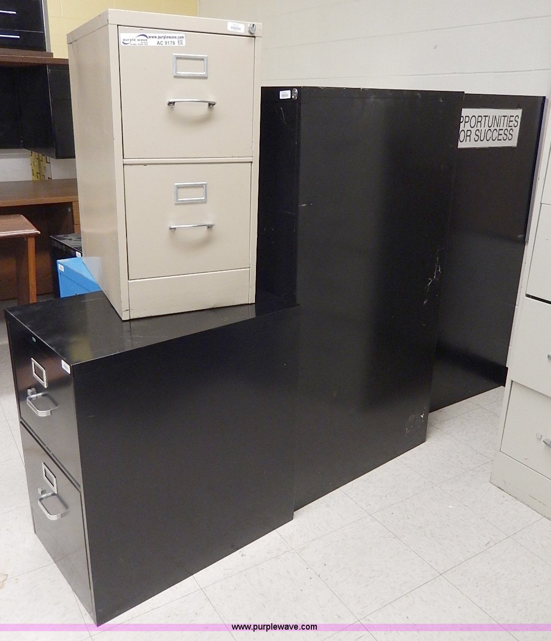 Purple Wave is selling a used Office Supplies and Equip. in Kansas. This item is a (9) assorted metal filing cabinets with the following: (5) four drawer, (4) two drawer