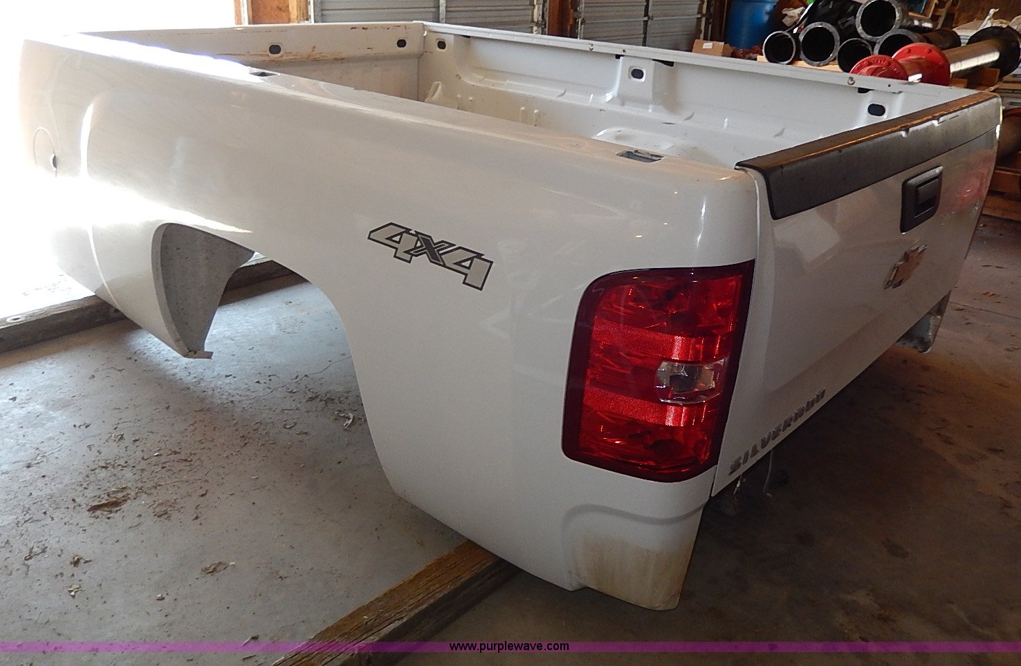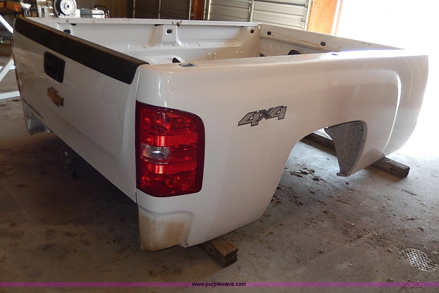 Purple Wave is selling a used Automotive Parts or Acces. in Kansas. This item is a 2009 Chevrolet 2500 pickup truck bed with the following: Four wheel drive emblem, Bumper, Hookups and pig tails included, Taillights