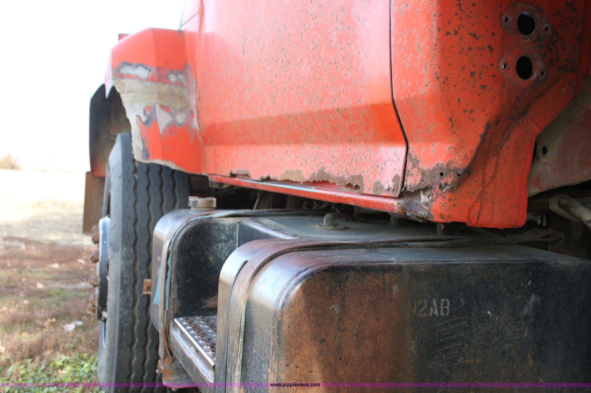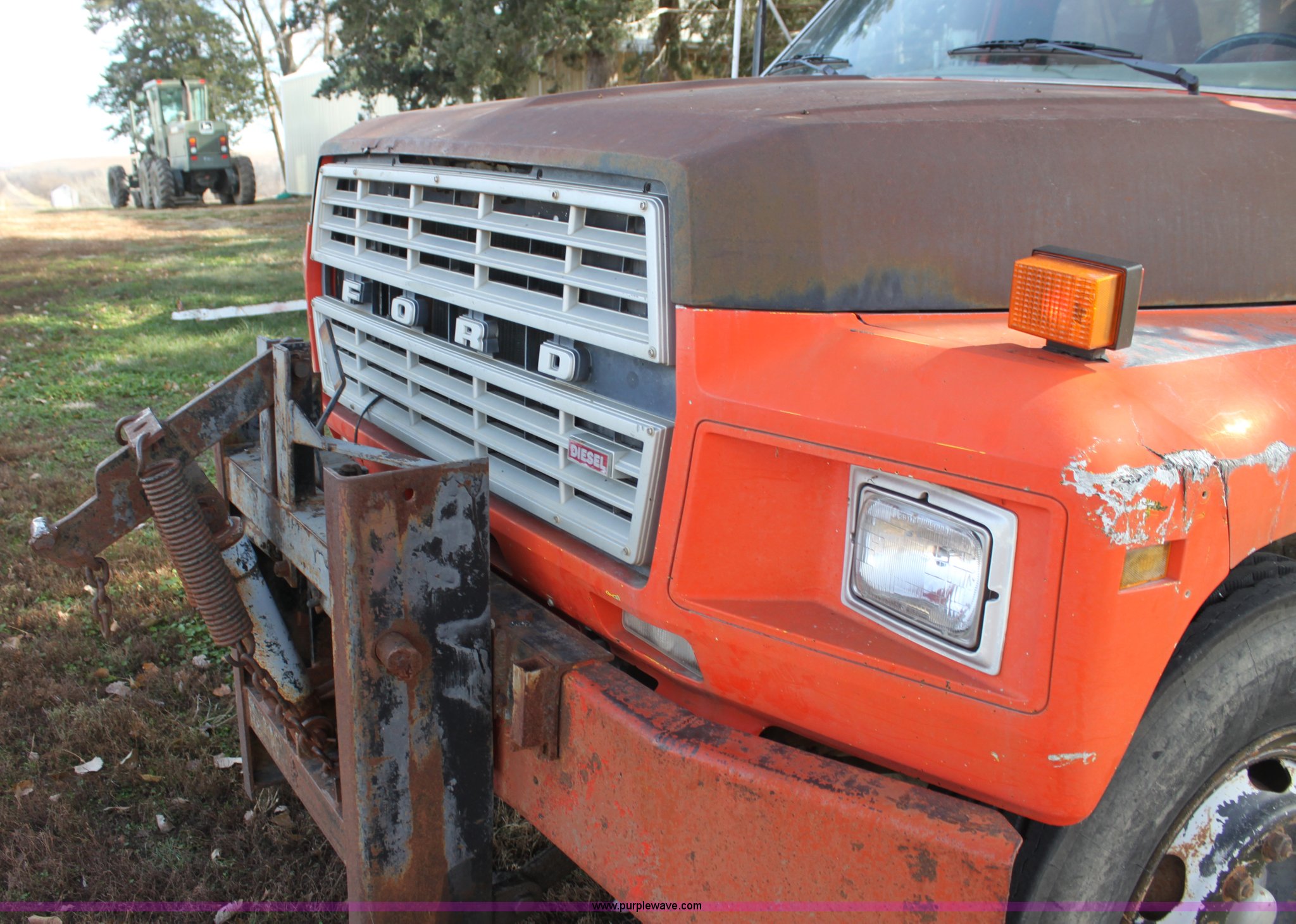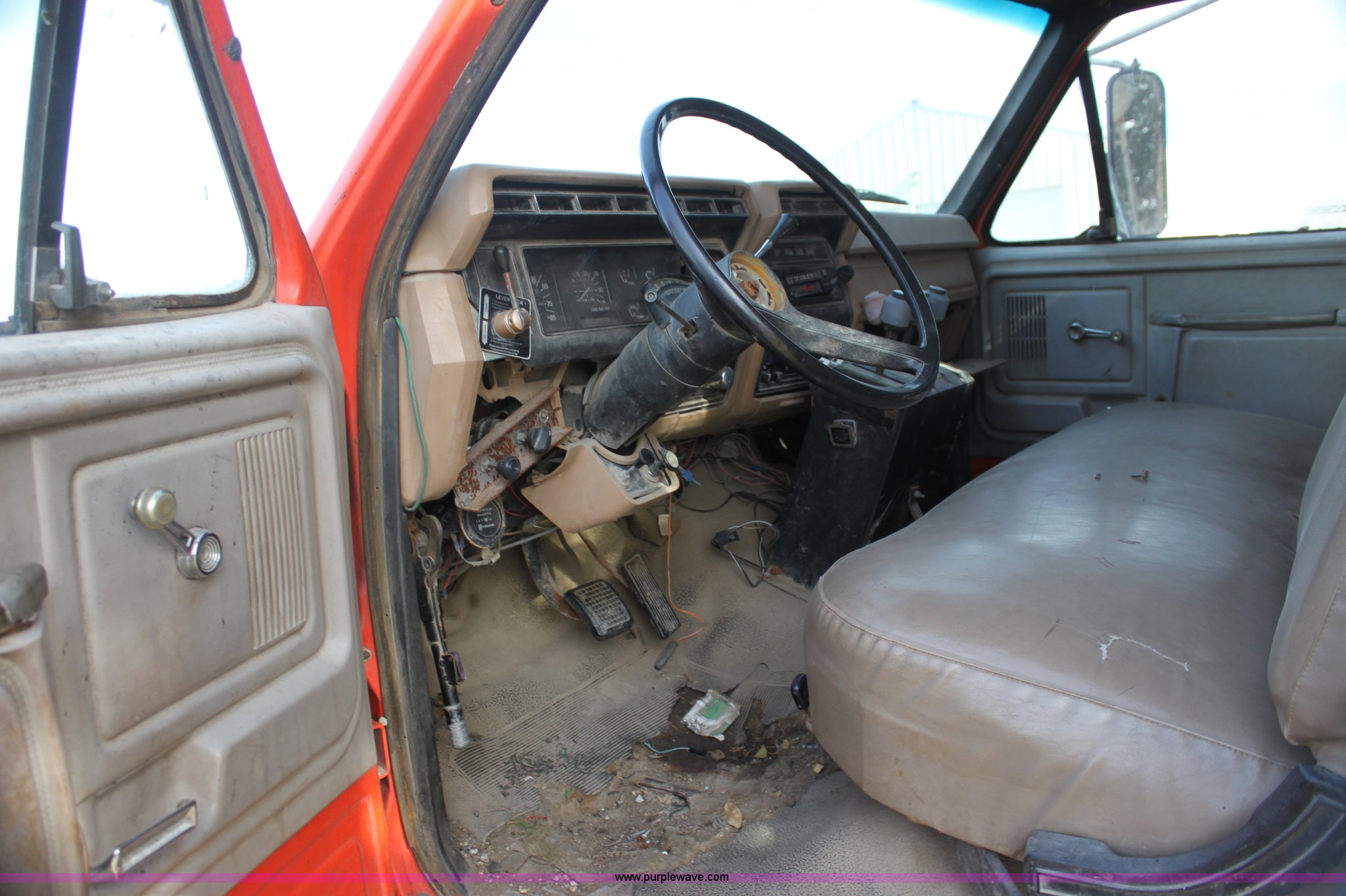 Purple Wave is selling a used Construction Dump Truck in Kansas. This item is a 1983 Ford F700 dump truck with the following: 96,358 miles on odometer, Not actual mileage, 4,673 hours on meter, Detroit Diesel 8.2L V8 diesel engine, Automatic transmission, 9'L x 94"W bed, Manual end gate, Single ram hoist, Pintle hitch, PTO, Spring suspension, Hydraulic brakes, 10.00R20 tires, Interior/exterior cosmetic damage, No battery, Operational when removed from service six months ago, Rodent damage to wiring, current operational condition unknown