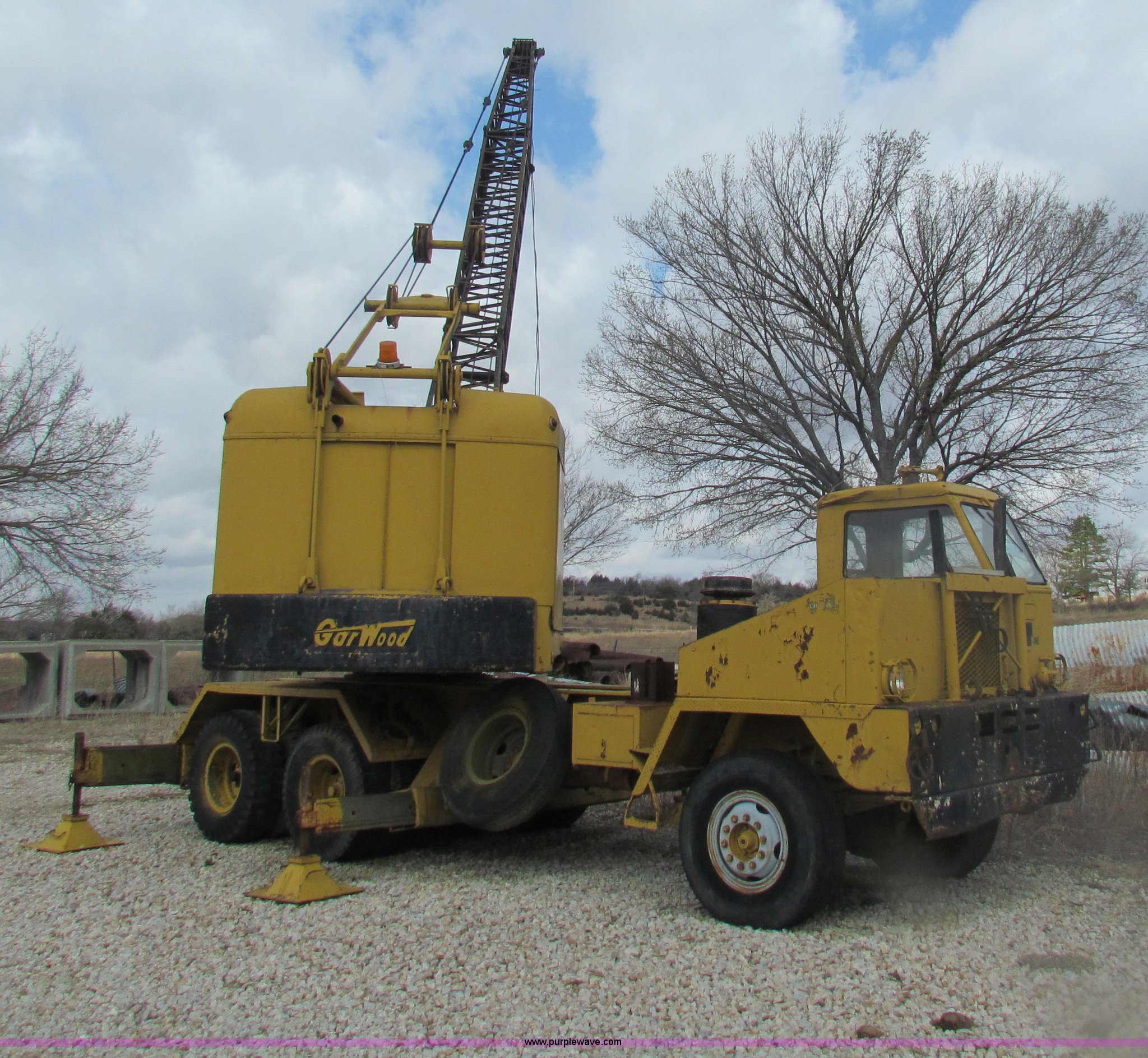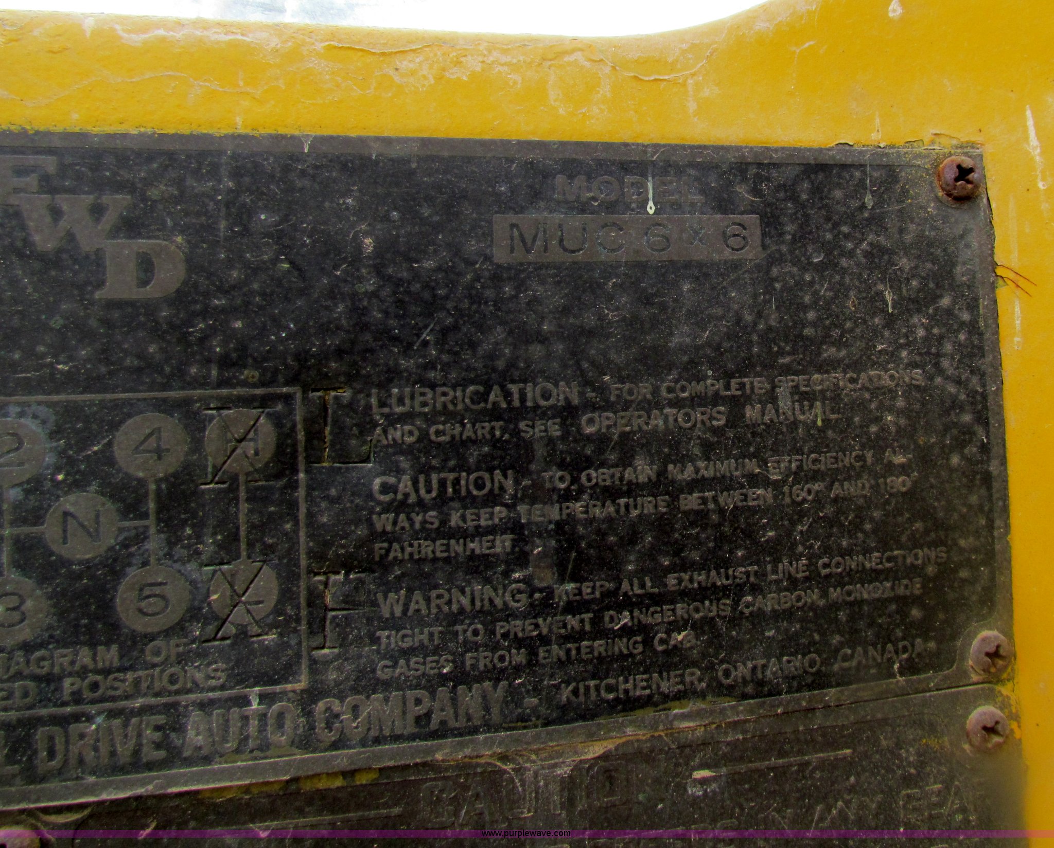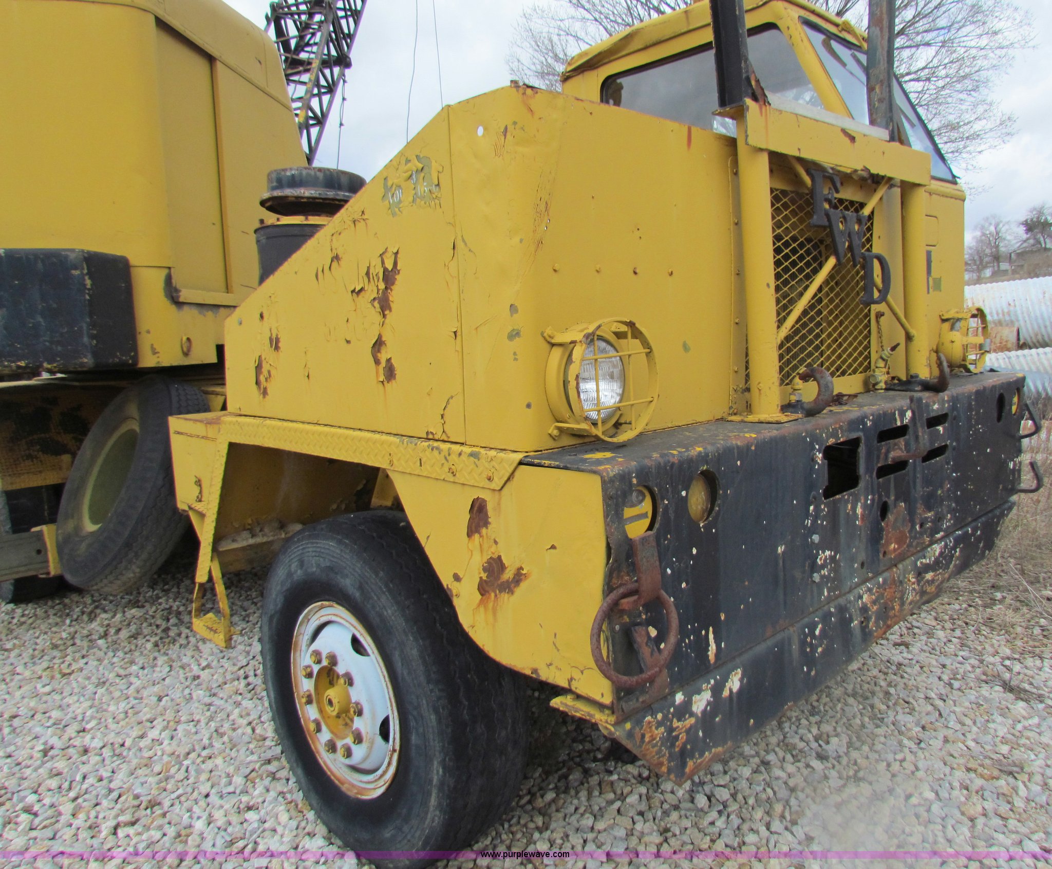 Purple Wave is selling a used Truck Crane in Kansas. This item is a FWD MUC6X6 truck with Garwood 20 ton crane with the following: 5,976 hours on meter, Six cylinder diesel engine, Five speed manual transmission, Six wheel drive, 14/80R20 front tires, 12.00/20 rear tires, Brakes inoperable, Chassis# 118103