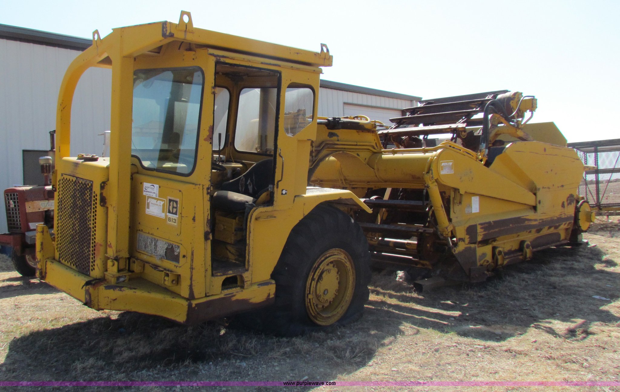 Purple Wave is selling a used Elevating Scraper in Kansas. This item is a 1973 Caterpillar 613 scraper with the following: 671 hours on meter, Caterpillar 3160 diesel engine, Non-operational, Manual transmission, 4F-2R gears, 11 cubic yard capacity, 23.5-25 tires, Missing one tire and wheel, Serial 72M2308