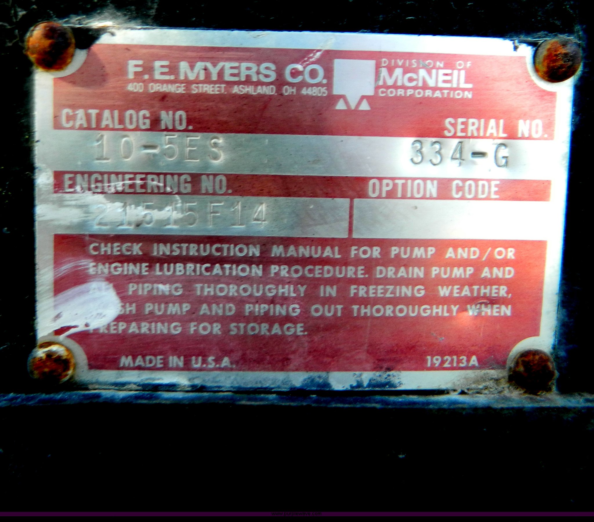 1985 Myers sprayer. Briggs & Stratton 8 HP gas engine Engine is bad, 500 gallon tank, Pump, Body mount, Cat# 611015409E4, Removed from one ton chassis, Serial 36185. Osborne County Weed Department. 114 County Rd. Osborne, KS 67473