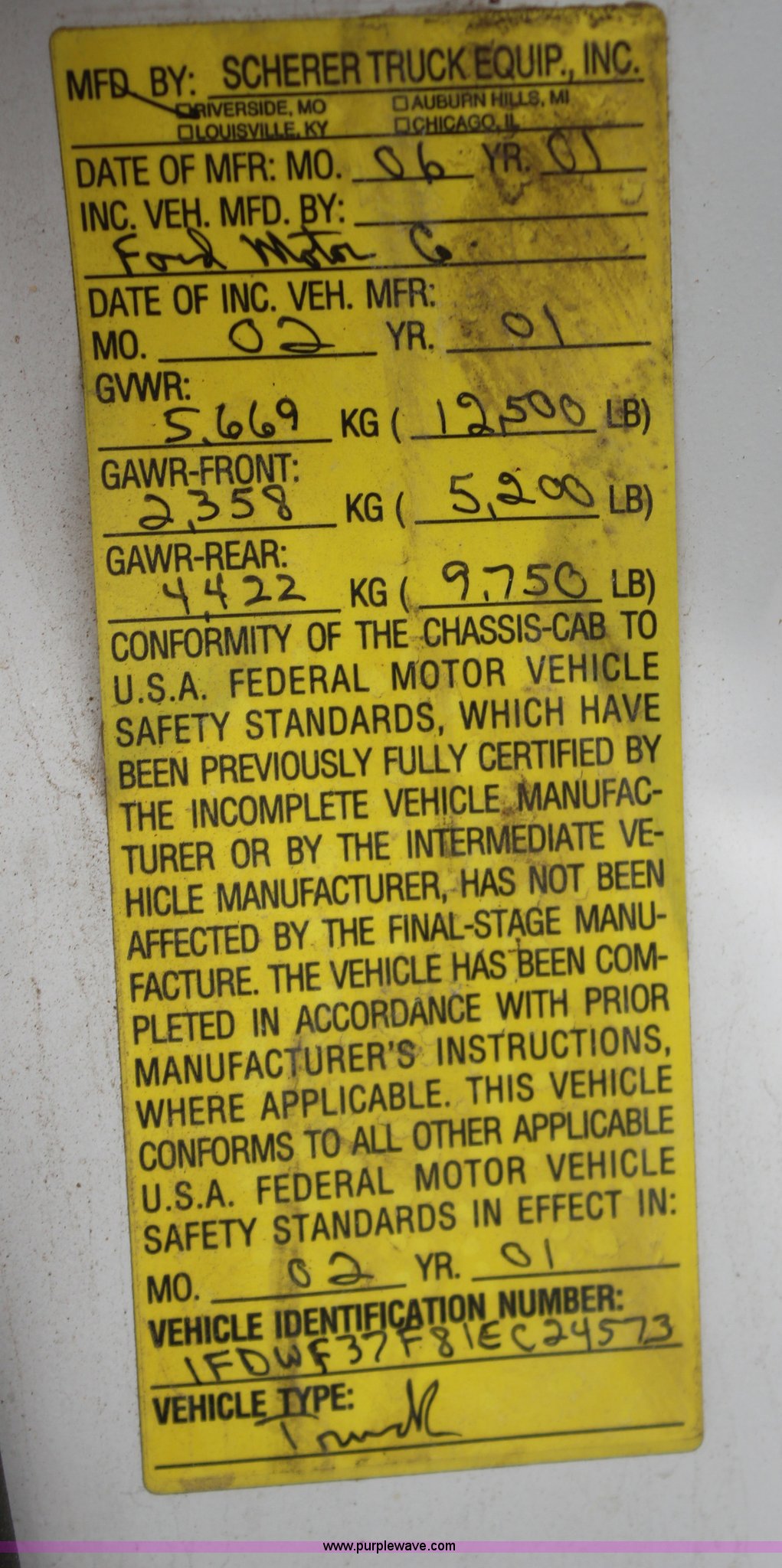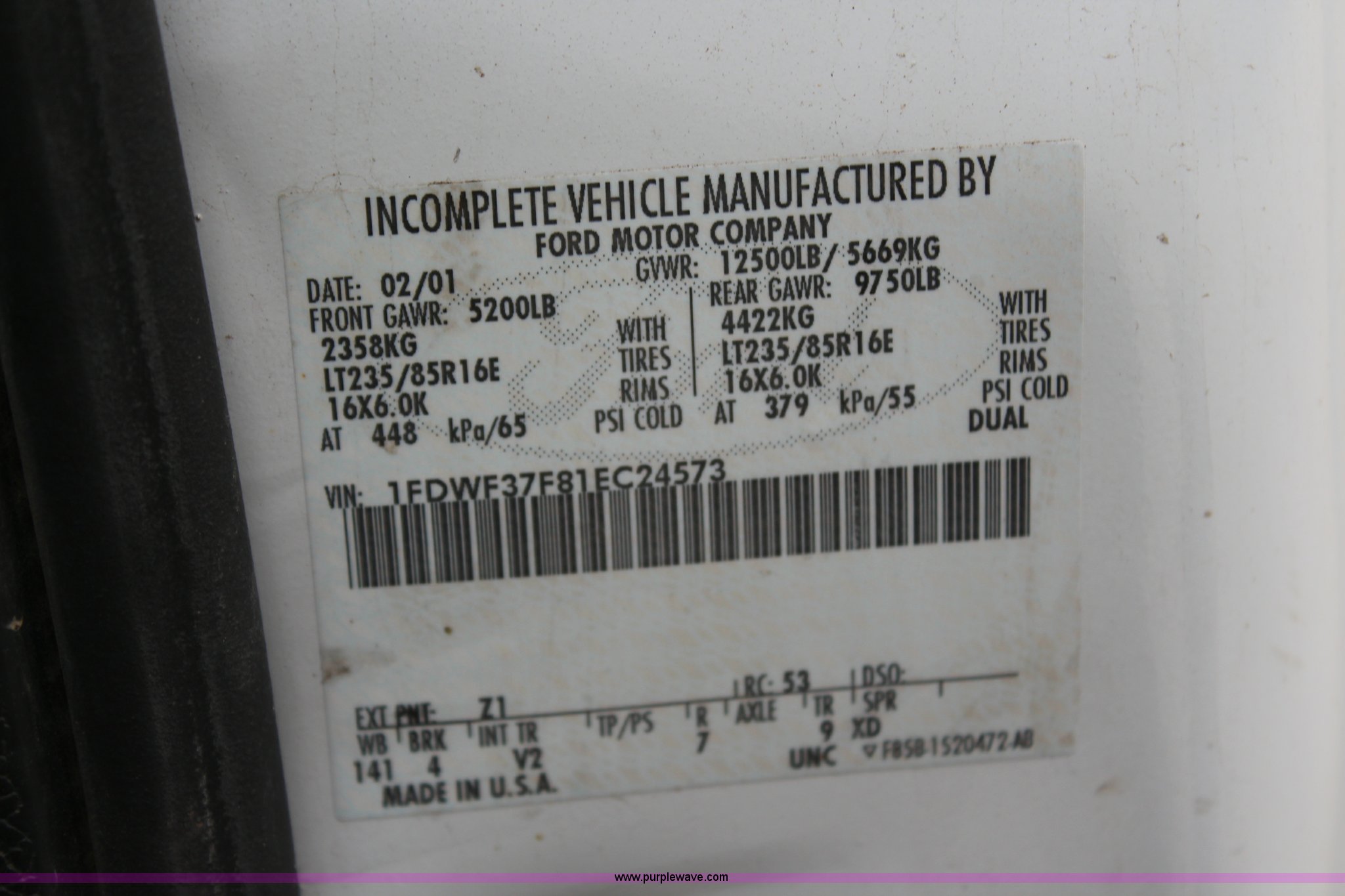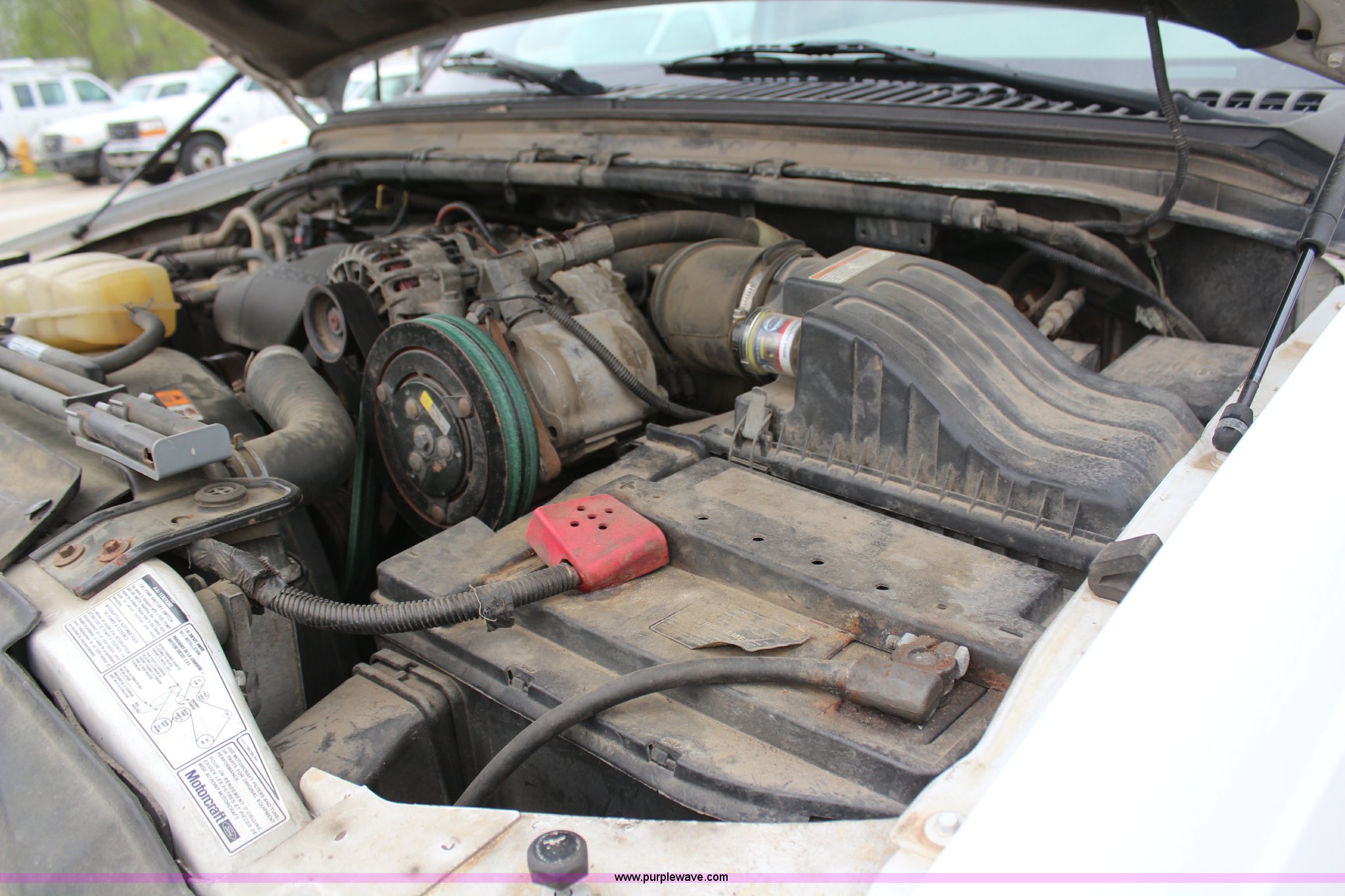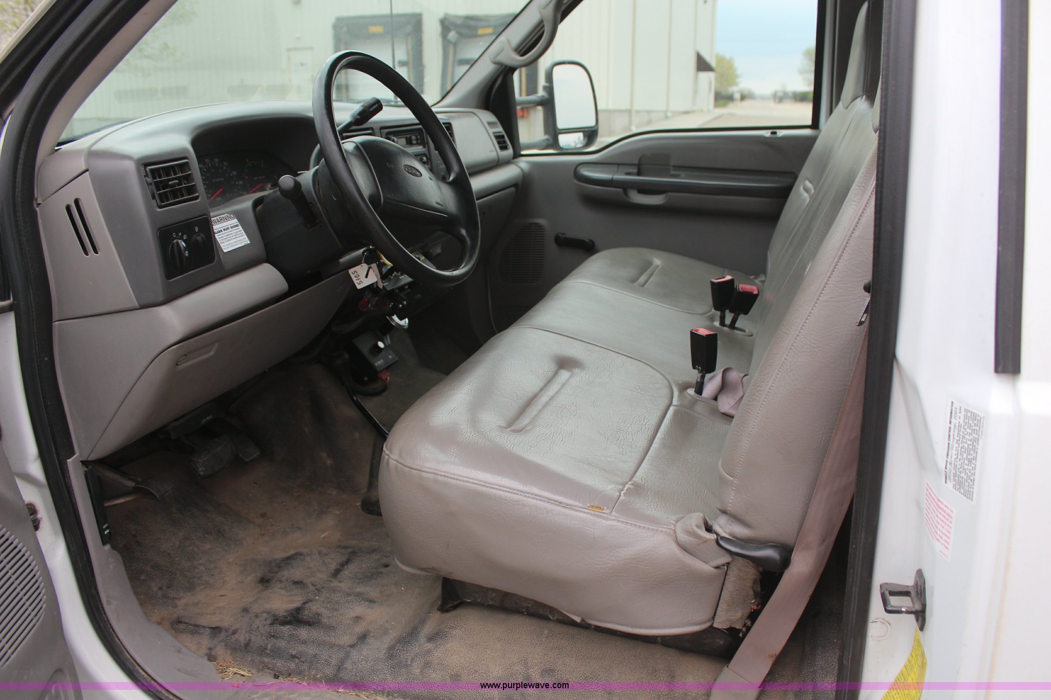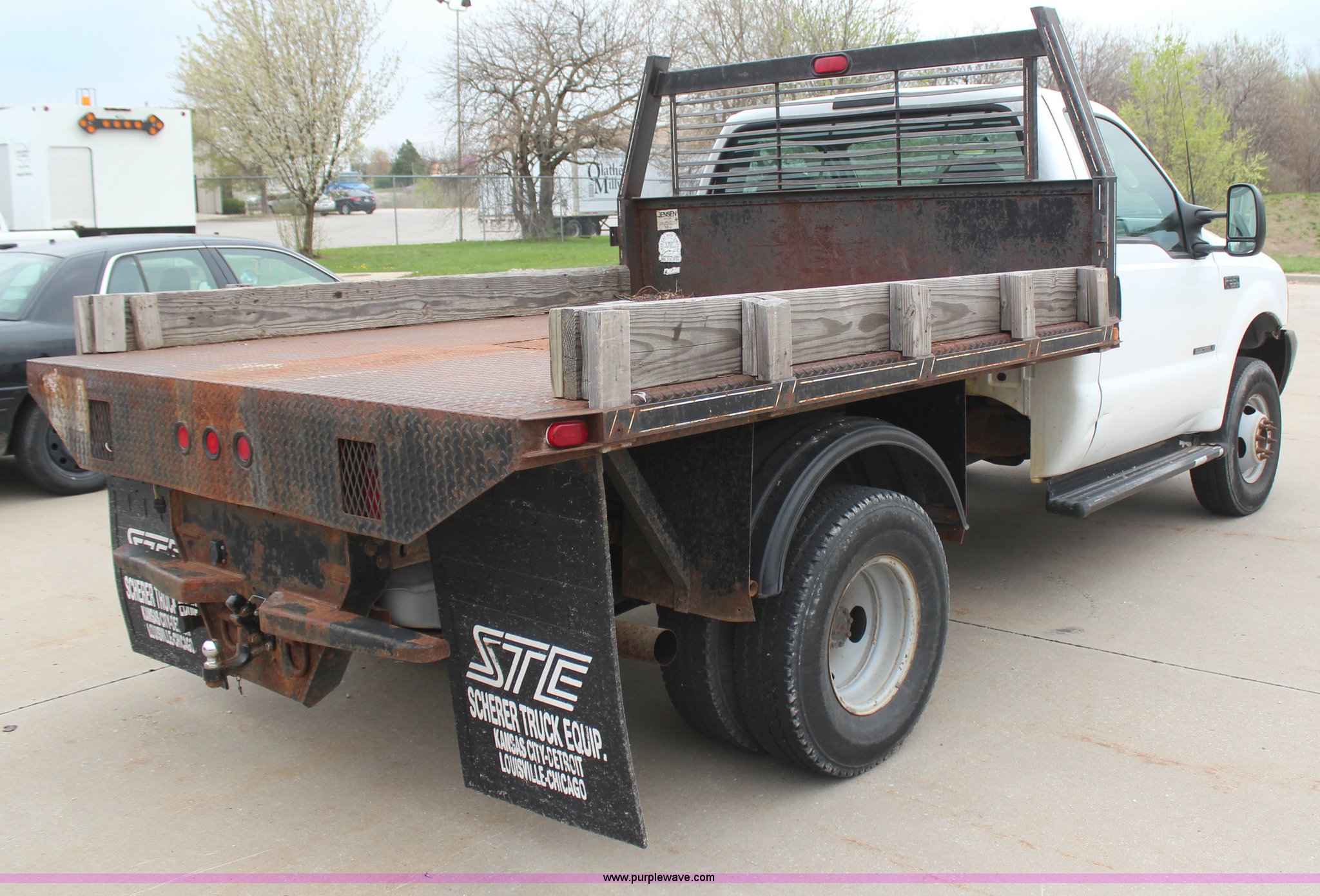 Purple Wave is selling a used 3/4 or 1 Ton Pickup or Van in Kansas. This item is a 2001 Ford F350 Super Duty XL flatbed truck with the following: 74,456 miles on odometer, 3,354 hours on meter, 7.3L V8 OHV 16V turbo diesel engine, Automatic transmission, Four wheel drive, AC and heat, AM/FM, Manual windows and locks, Vinyl interior, 9'L x 8'W flatbed, Pintle hitch, Rear hydraulics, Under hood hydraulic pump, Meyer plow bracket with controls, No snow plow, 235/85R16 tires, Driver's seat torn, Unit# JCW5105