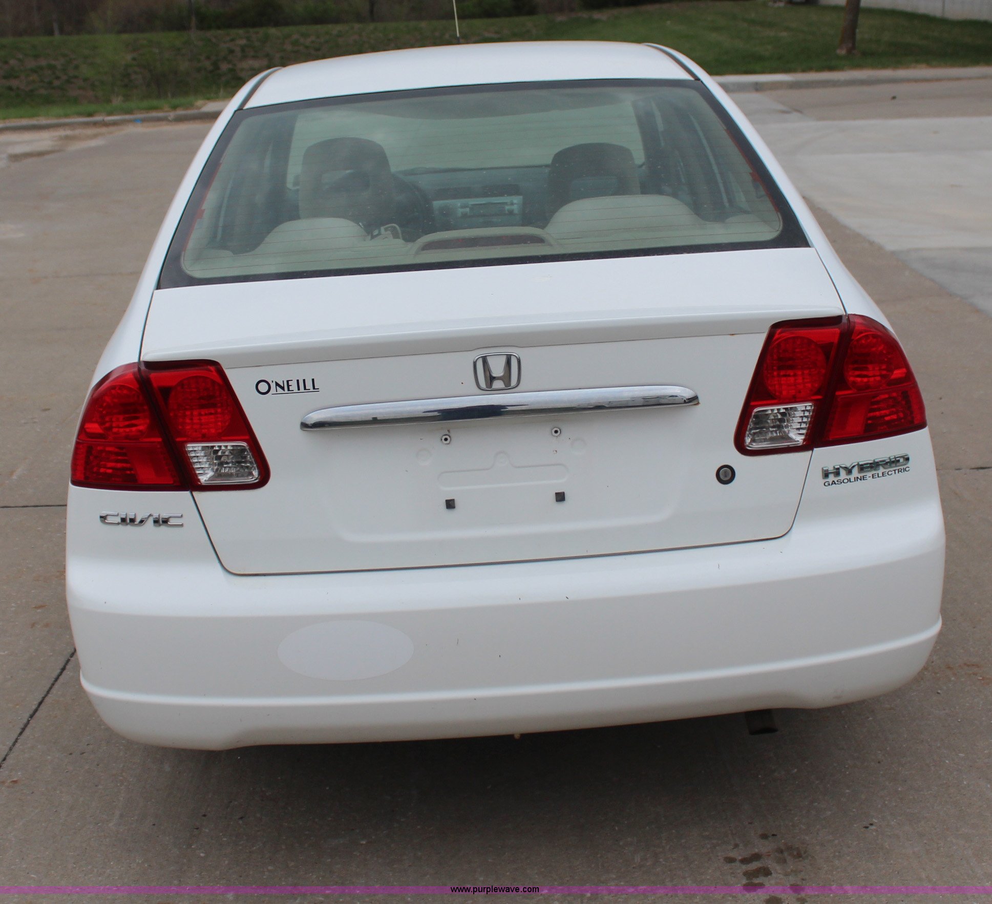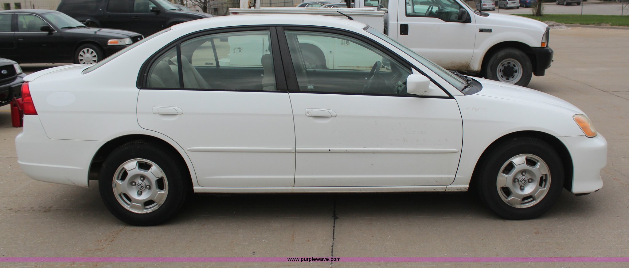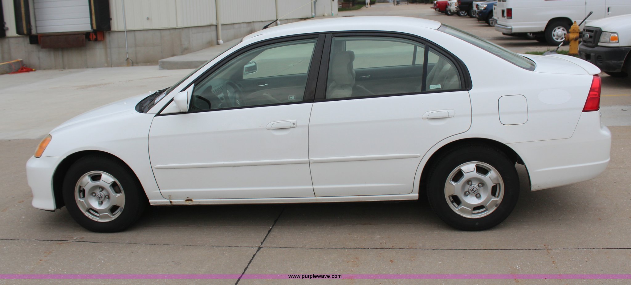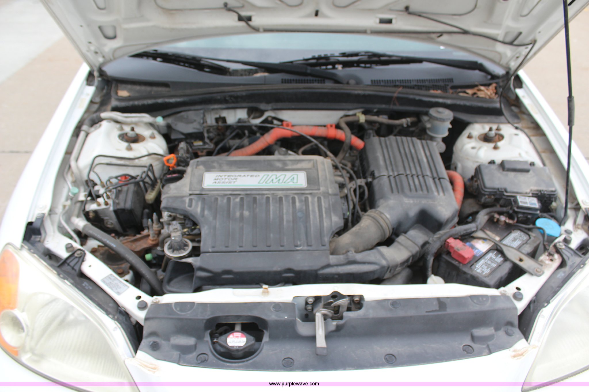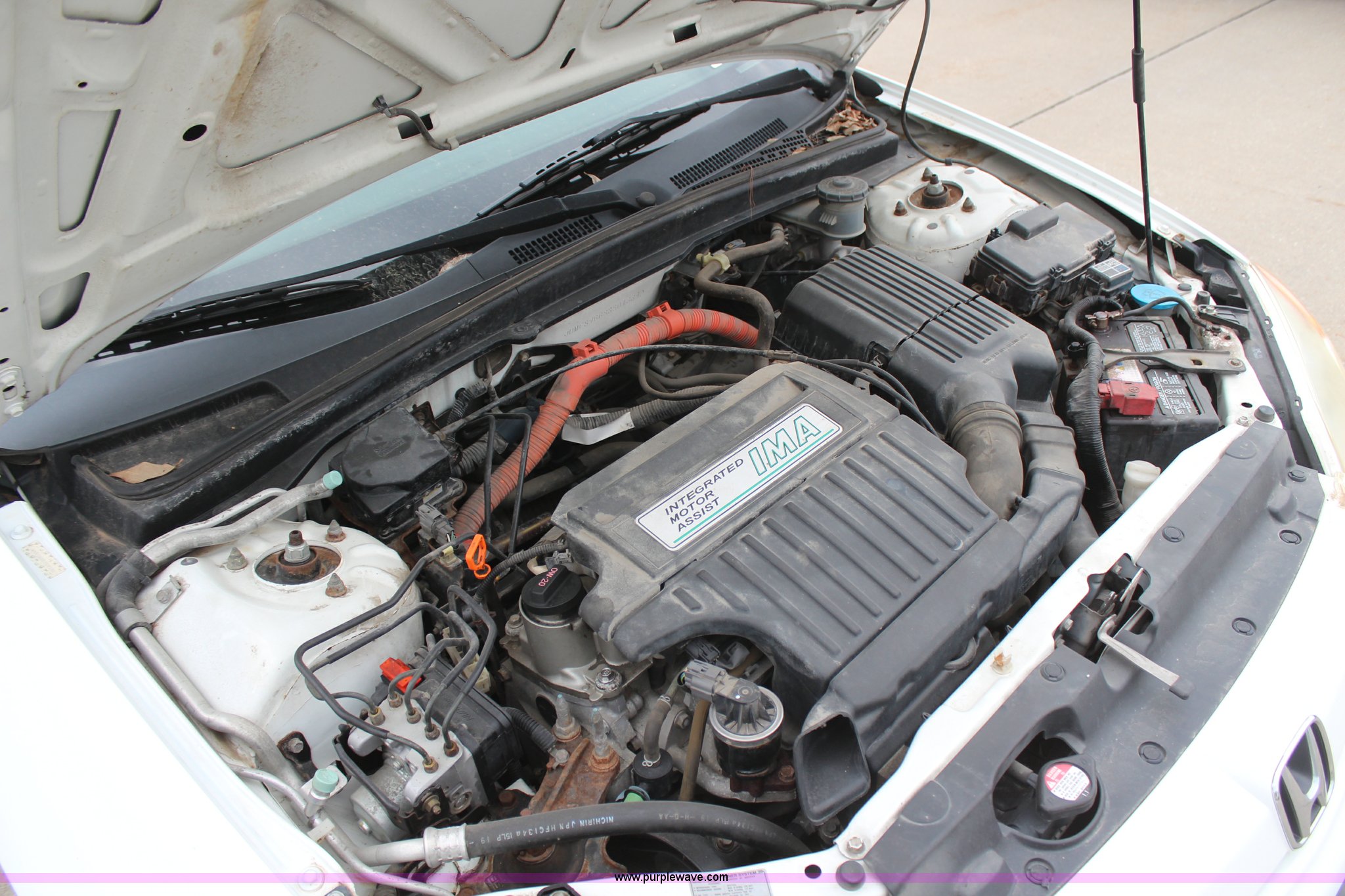 Purple Wave is selling a used Passenger Vehicle in Kansas. This item is a 2003 Honda Civic Hybrid with the following: 82,661 miles on odometer, 1.3L L4 SOHC 8V hybrid engine, Automatic transmission, Transmission slipping, AC and heat, Tilt, Cruise, AM/FM/CD, Power windows, locks, and mirrors, Cloth interior, 185/70R14 tires, Unit# DHE1908
