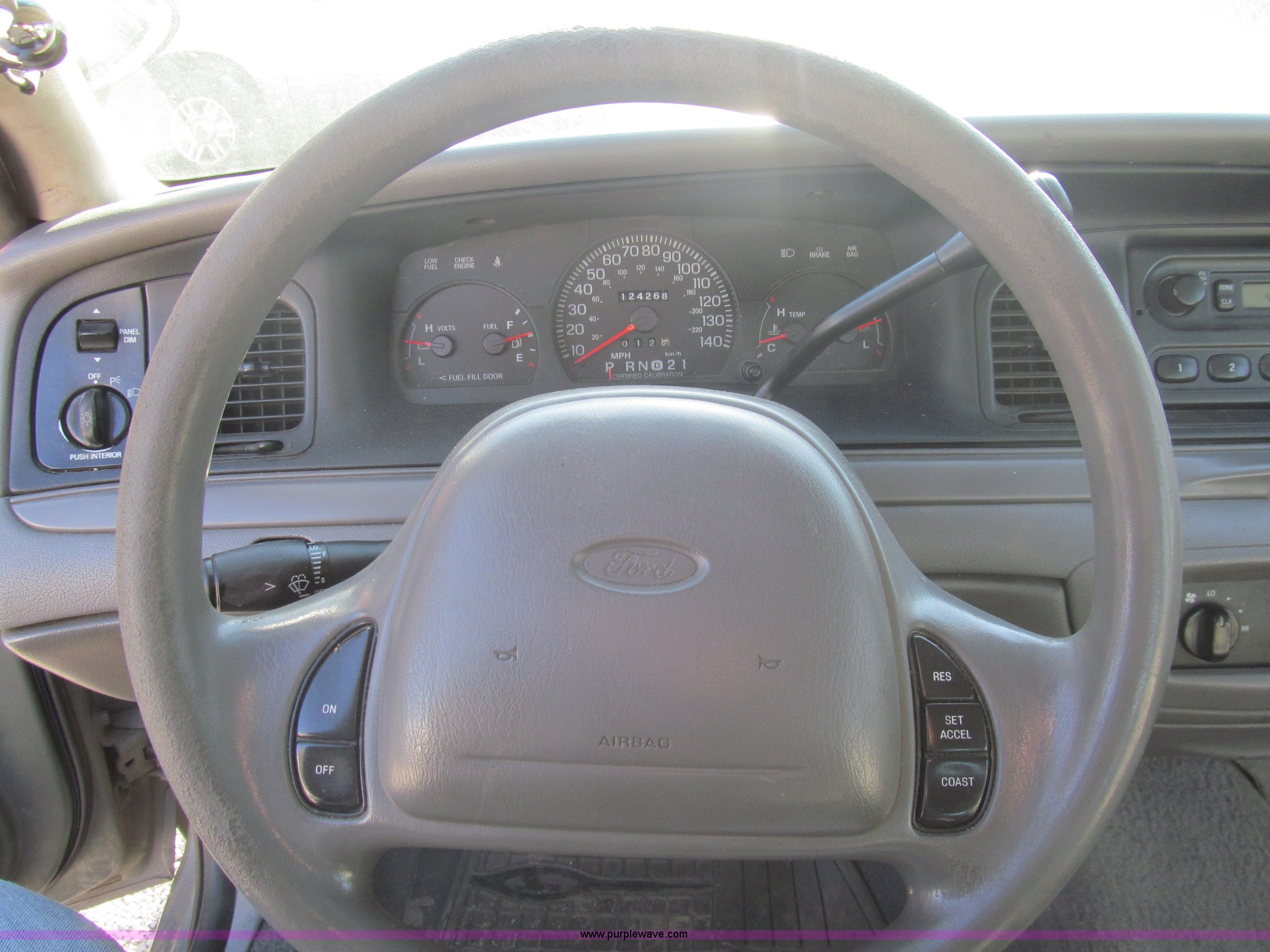 Purple Wave is selling a used Passenger Vehicle in Kansas. This item is a 2000 Ford Crown Victoria Police Interceptor with the following: 124,268 actual miles, 4.6L V8 SOHC 16V gas engine, Automatic transmission, AC and heat, Tilt, Cruise, AM/FM, Power windows, locks, mirrors, and seats, Spotlight, 225/60R16 tires, Heater core needs replaced